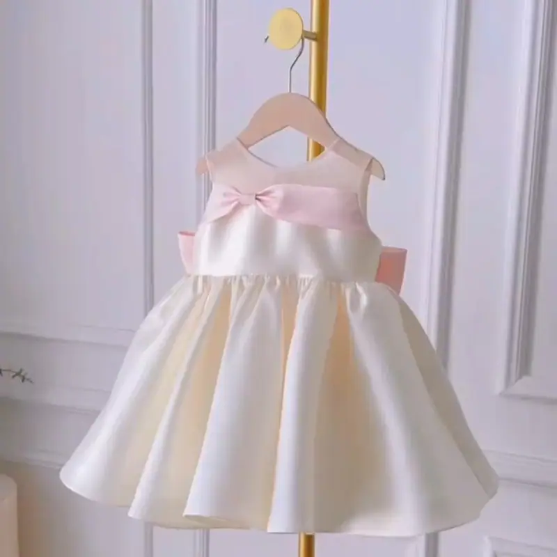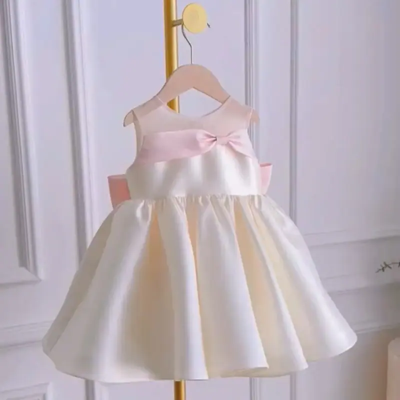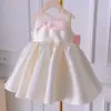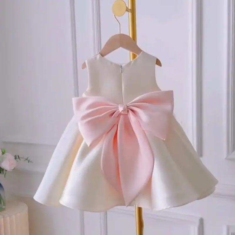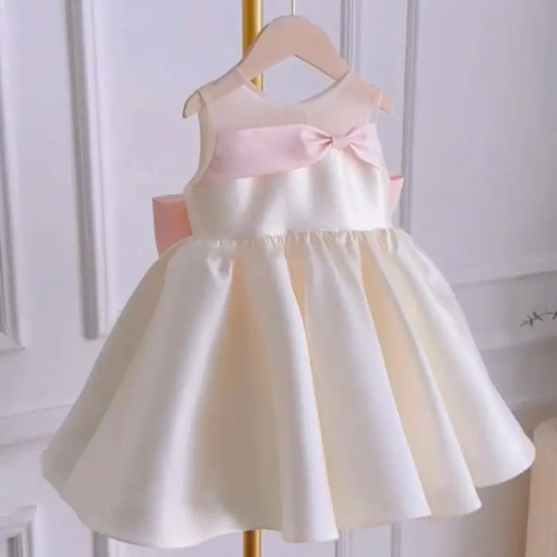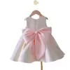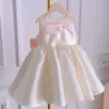 Vestido Formal Rosa Doce de Cetim para Meninas Bebê Outono Novo Crianças Um Ano de Idade Primeiro Aniversário A-line Vestido de Princesa