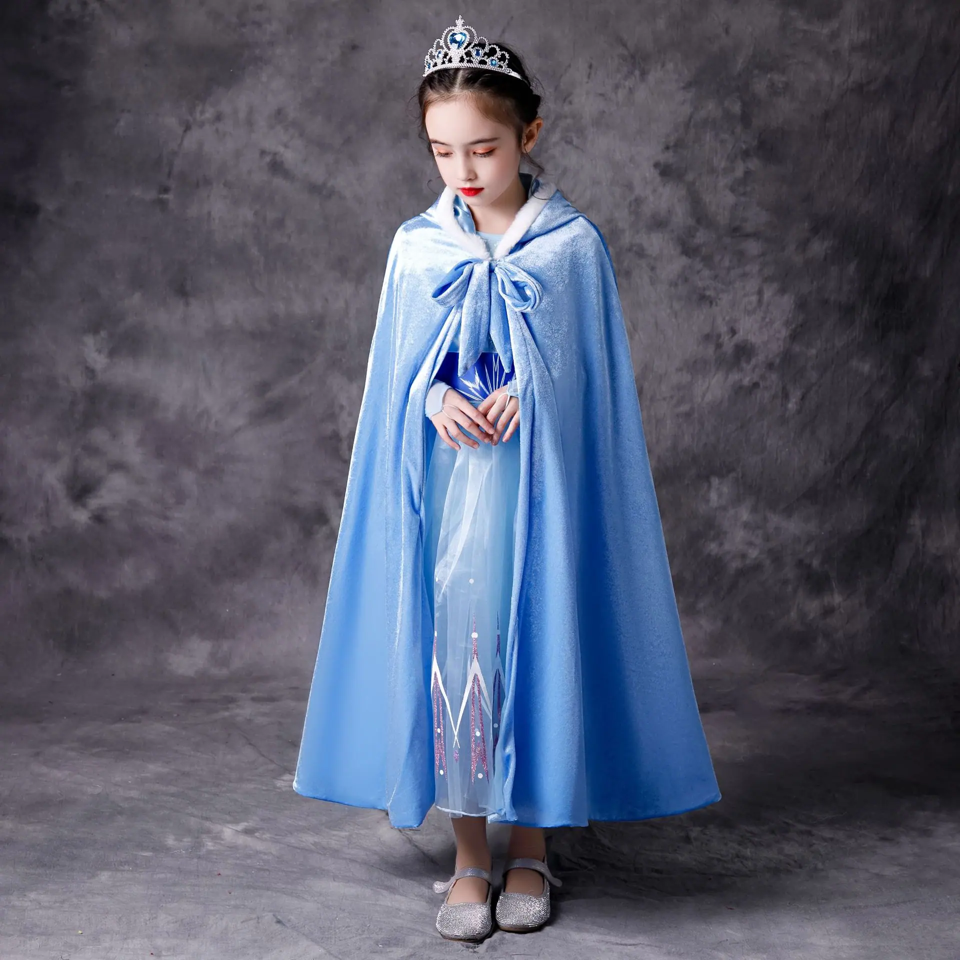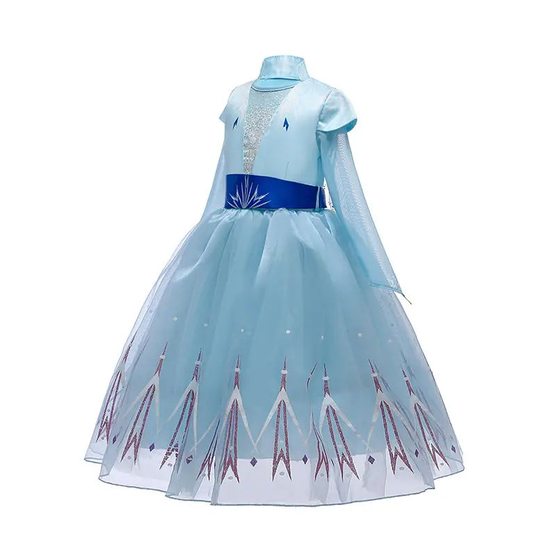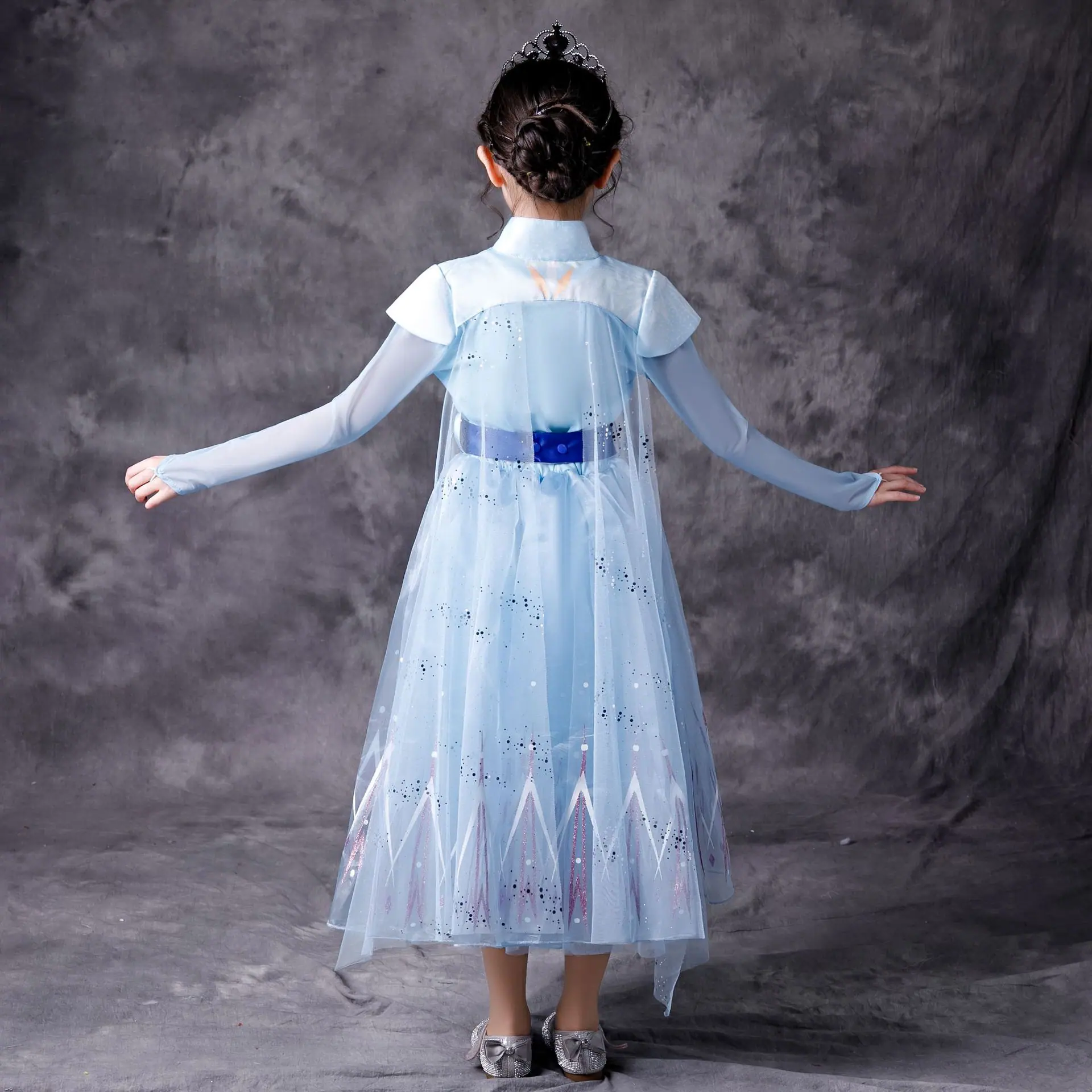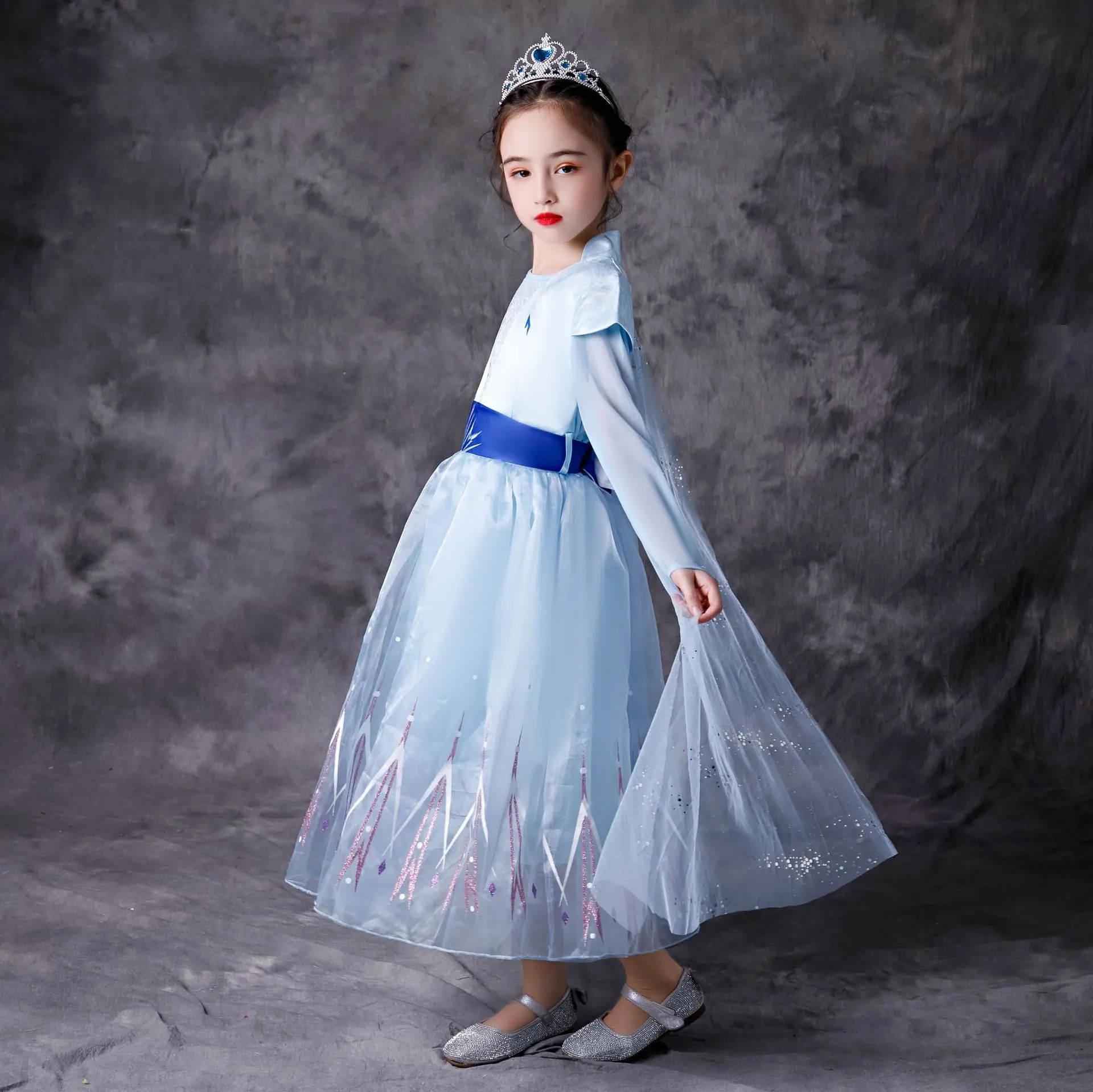 Roupas Infantis de Comércio Exterior Novas Vestido de Princesa Elsa Frozen de Malha Fantasia para Apresentação Vestido para Meninas Peça Única Envio Direto