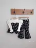 Conjunto de top baby doll com laço e estampa total estilo ins coreano + calças flare para menina bebê, moda versátil de duas peças, estilo primavera e outono