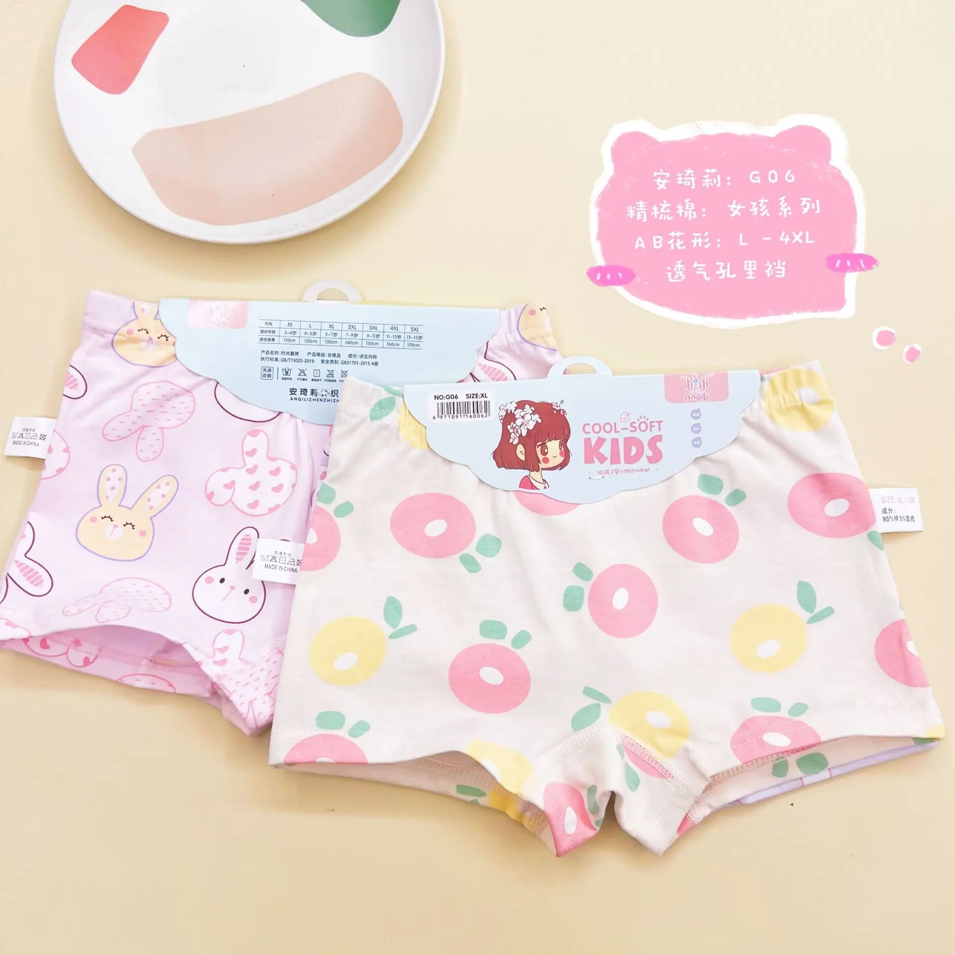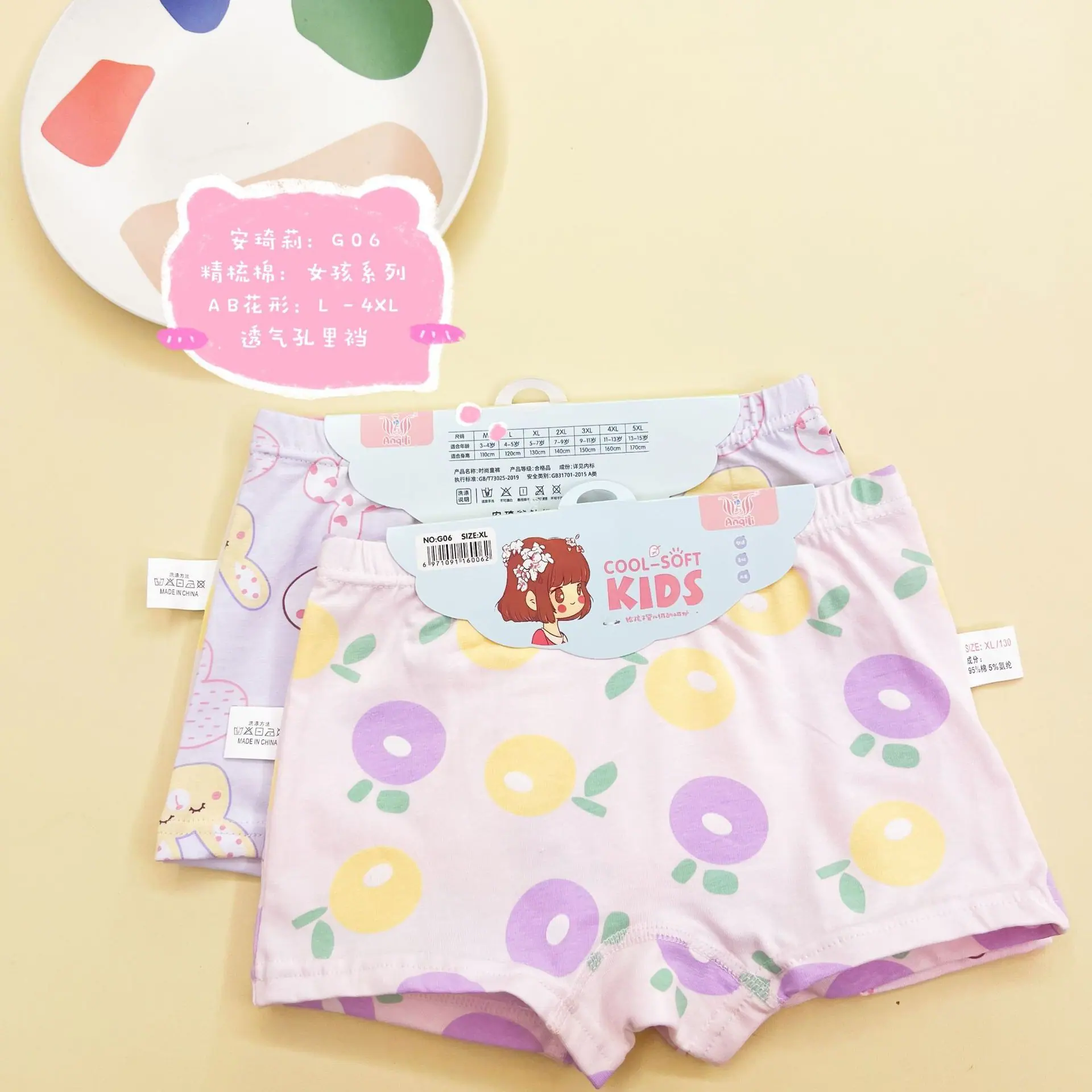 Calcinhas Infantis Fofas de Pernas Curtas Anqi Li Roupa Íntima Confortável para Meninas Shorts para Bebê Menina Boxers de Desenho Animado para Menina Atacado