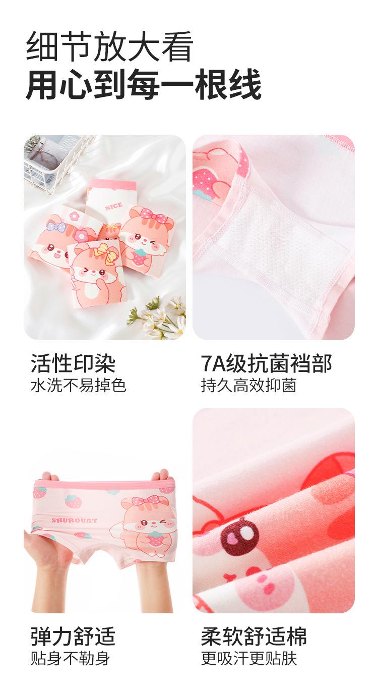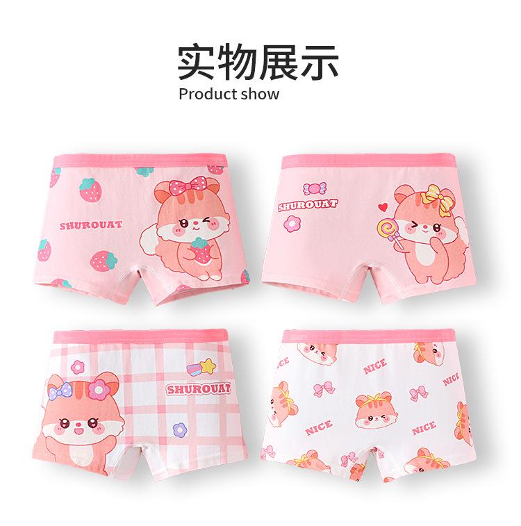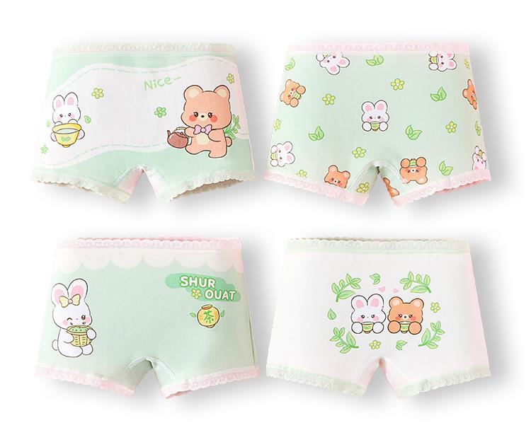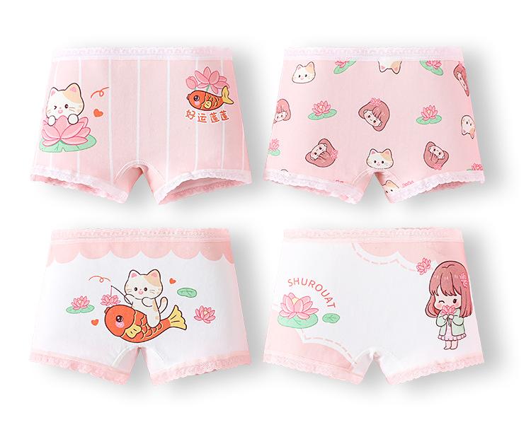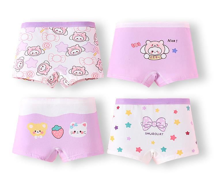 Roupa Íntima Infantil para Meninas 7A Antibacteriana Cuecas Boxer de Perna Reta Desenho Animado Respirável 100%