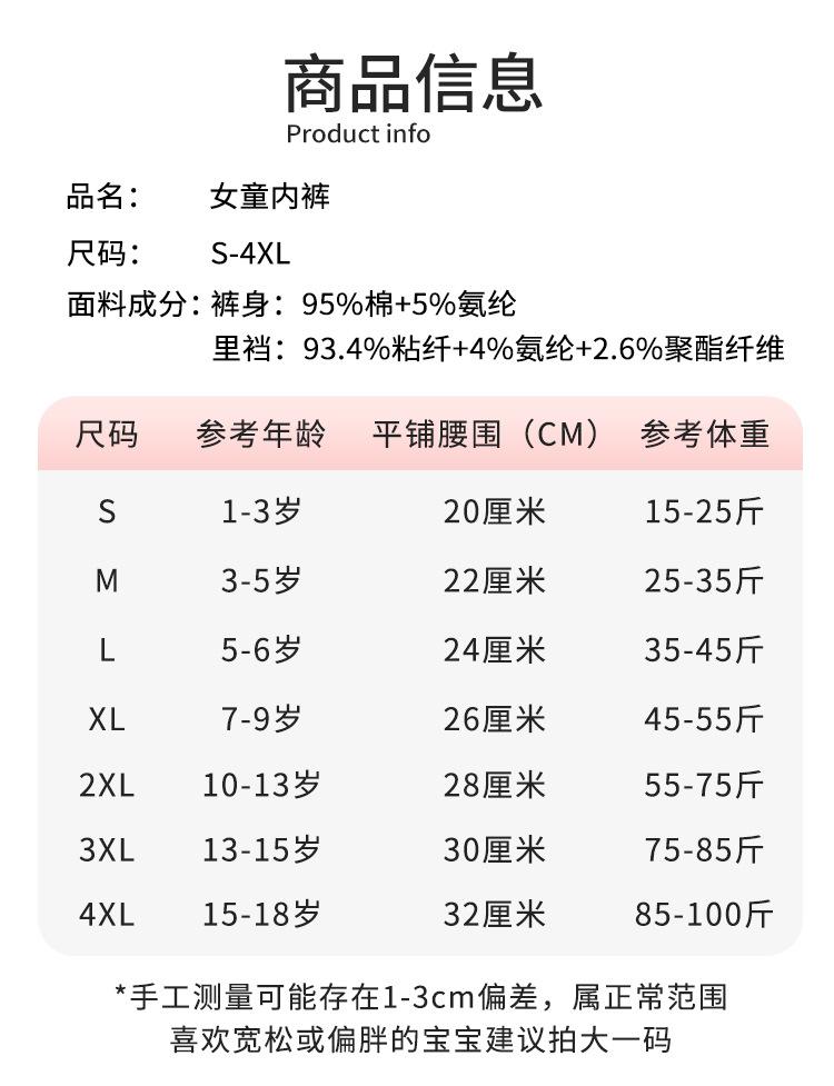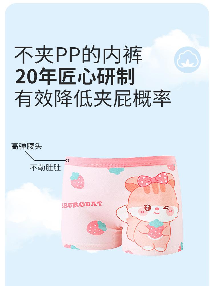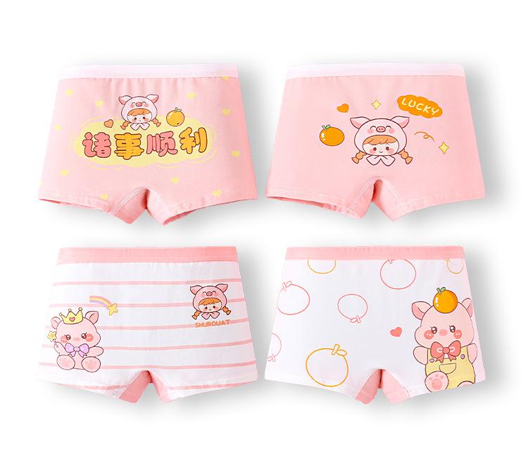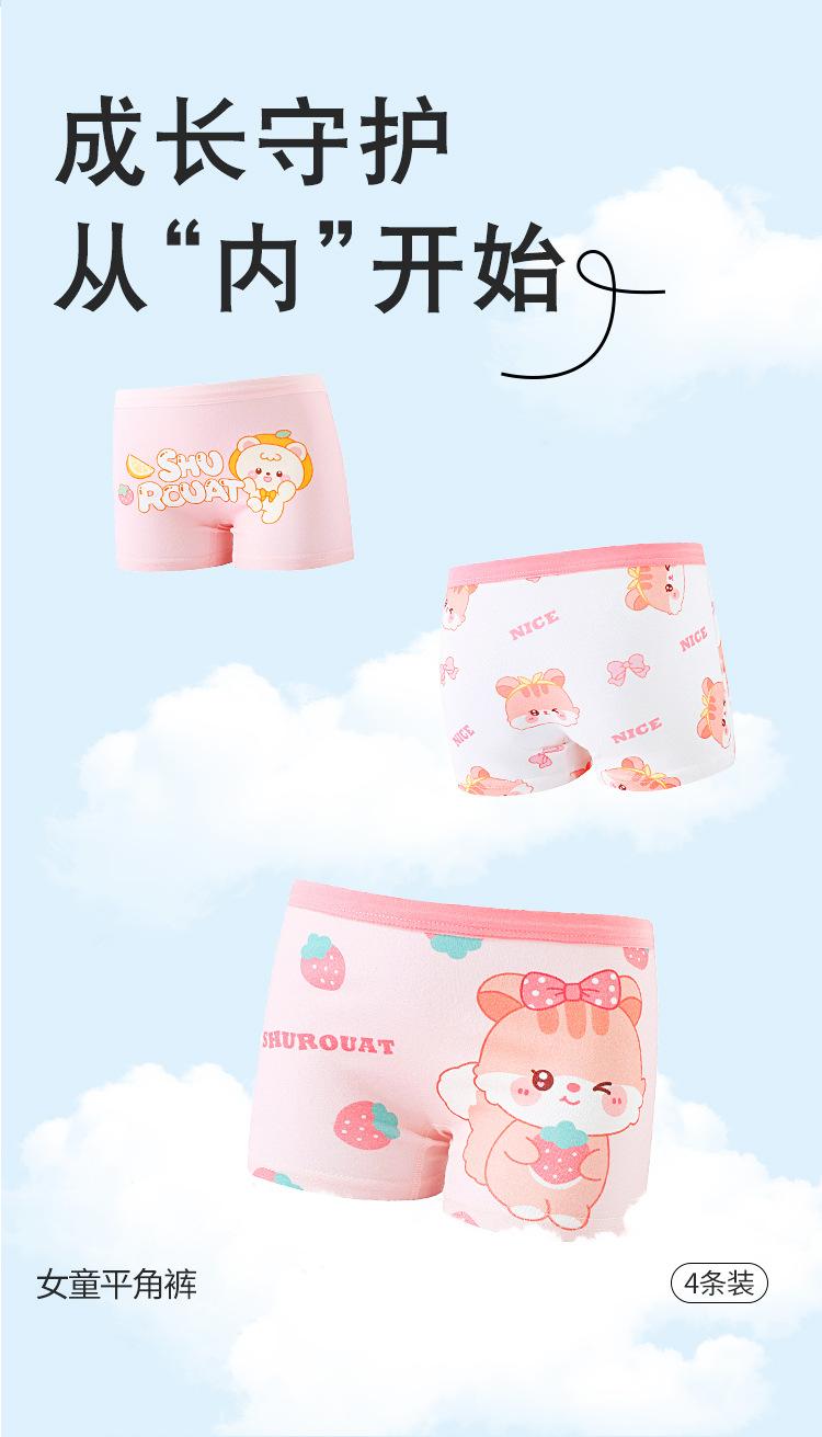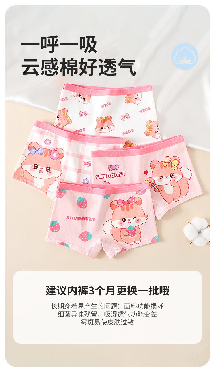 Roupa Íntima Infantil para Meninas 7A Antibacteriana Cuecas Boxer de Perna Reta Desenho Animado Respirável 100%