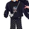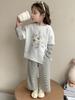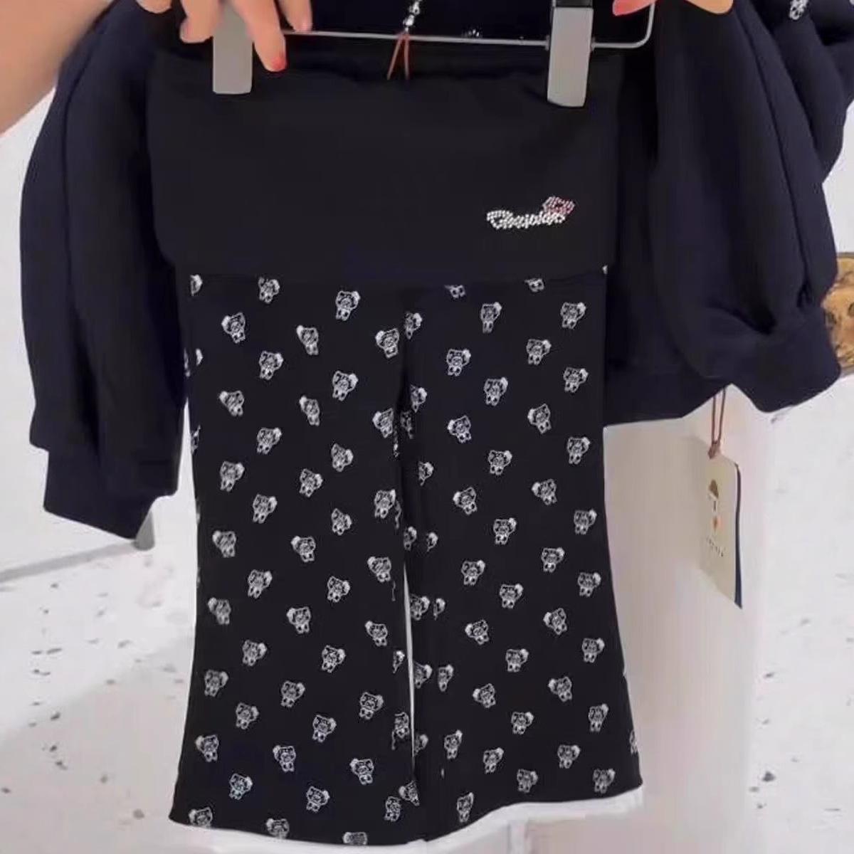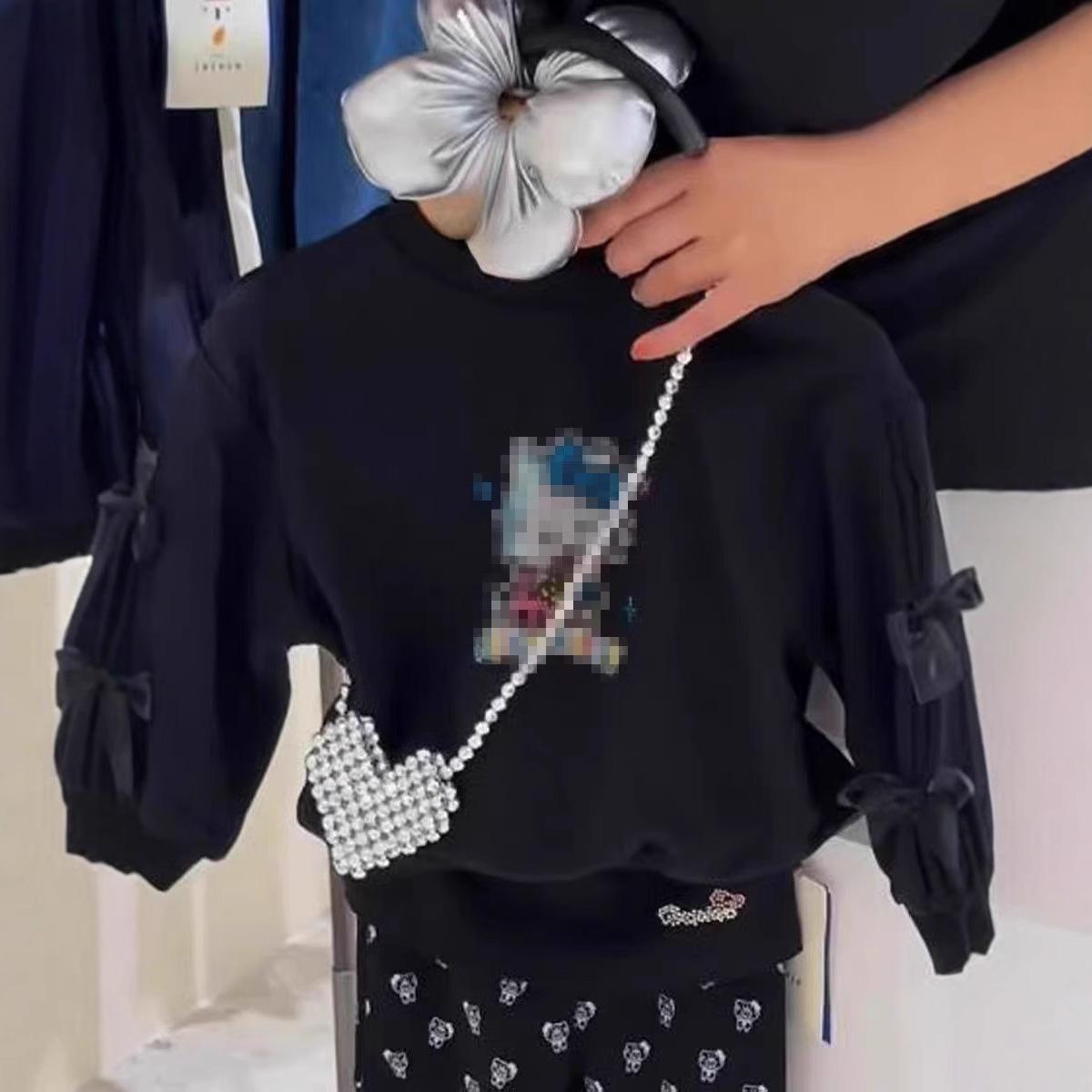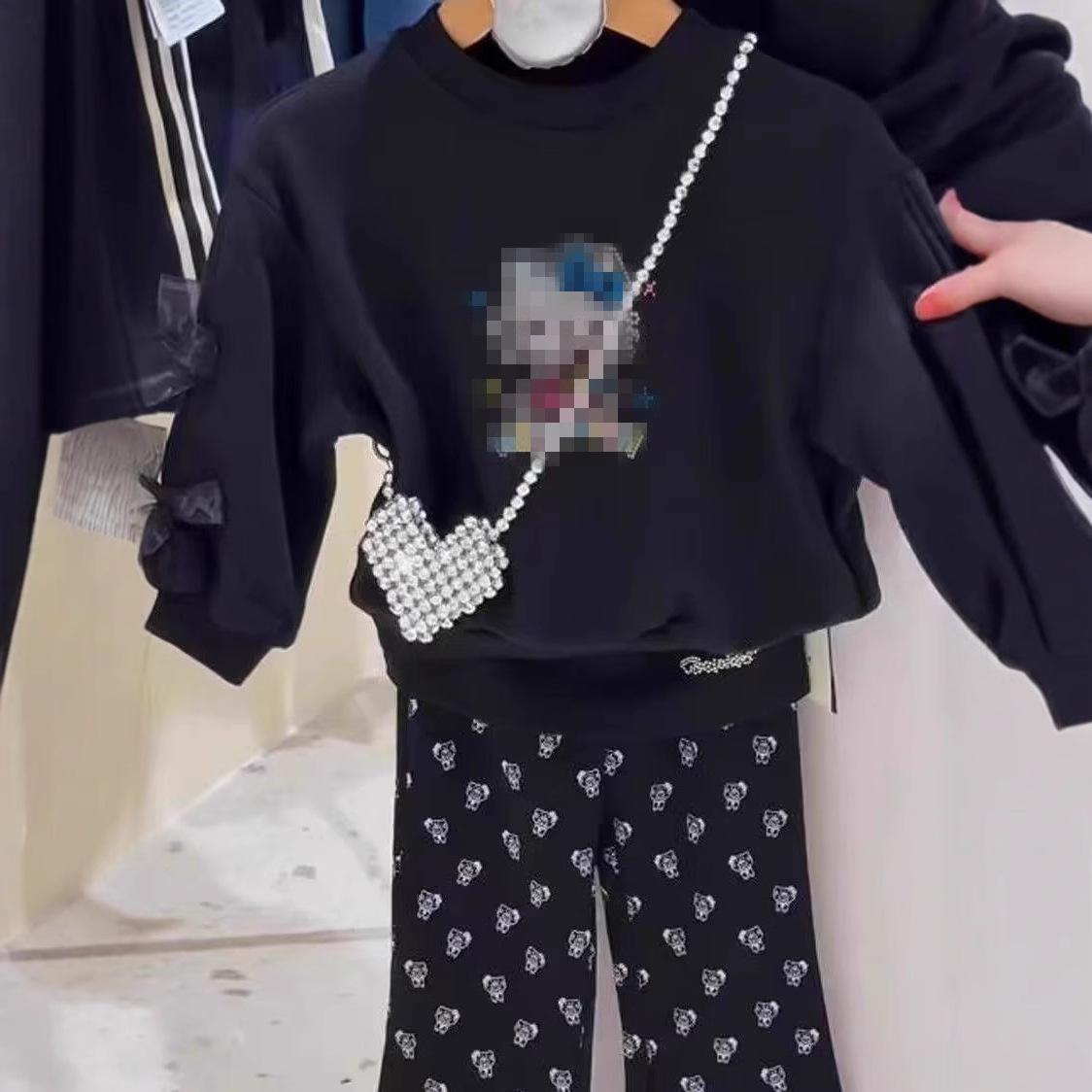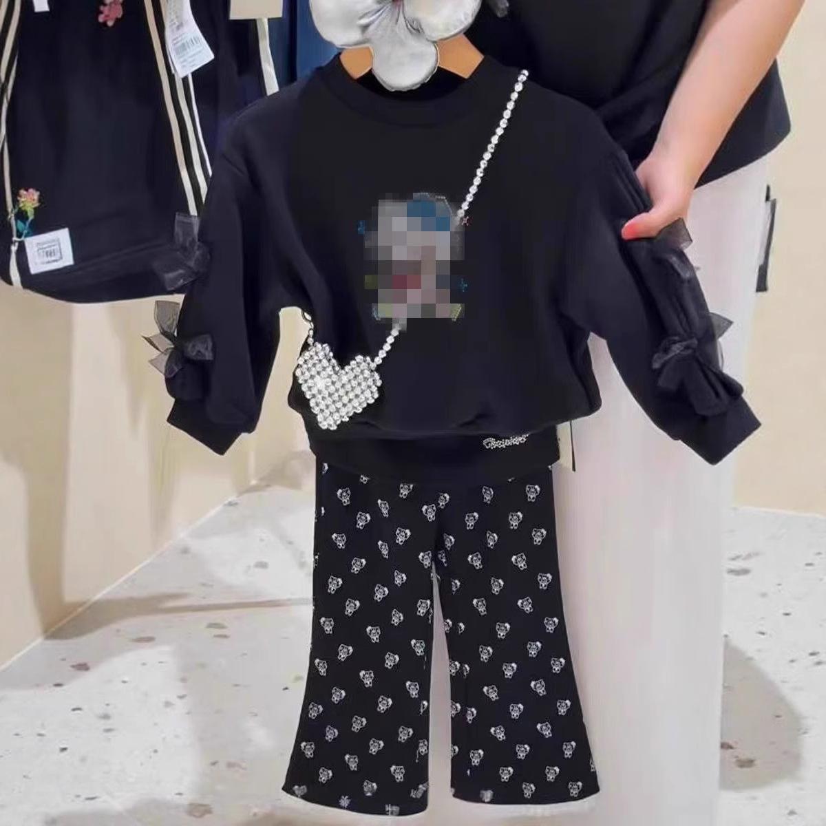 Conjunto de Duas Peças para Meninas Primavera e Outono Moda Bebê Infantil Marca Individual de Tendência Desenho Animado Laço Moletom Estampa Calças Flare