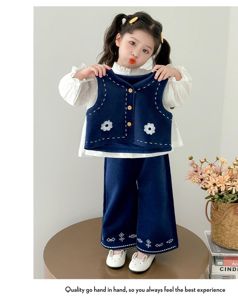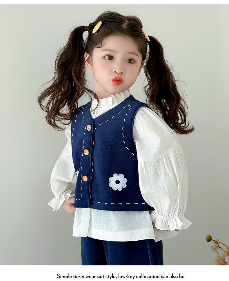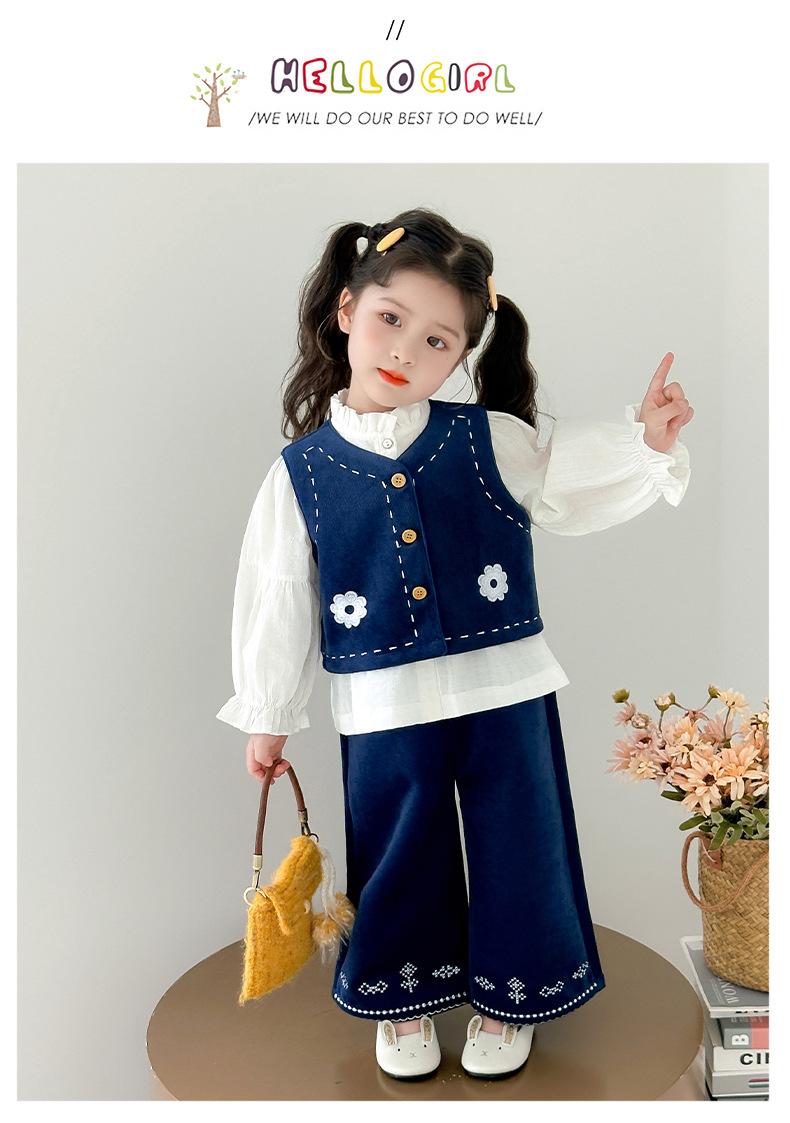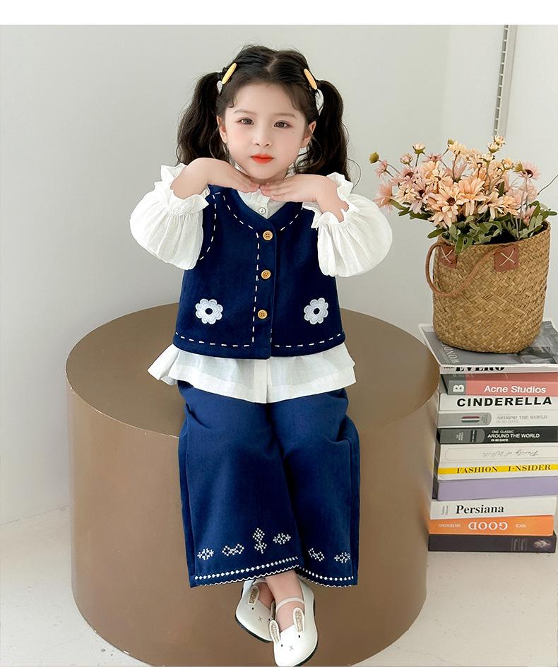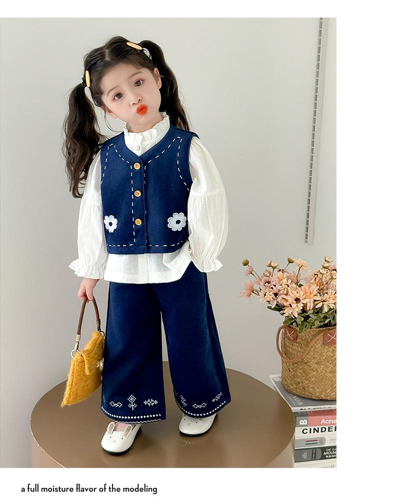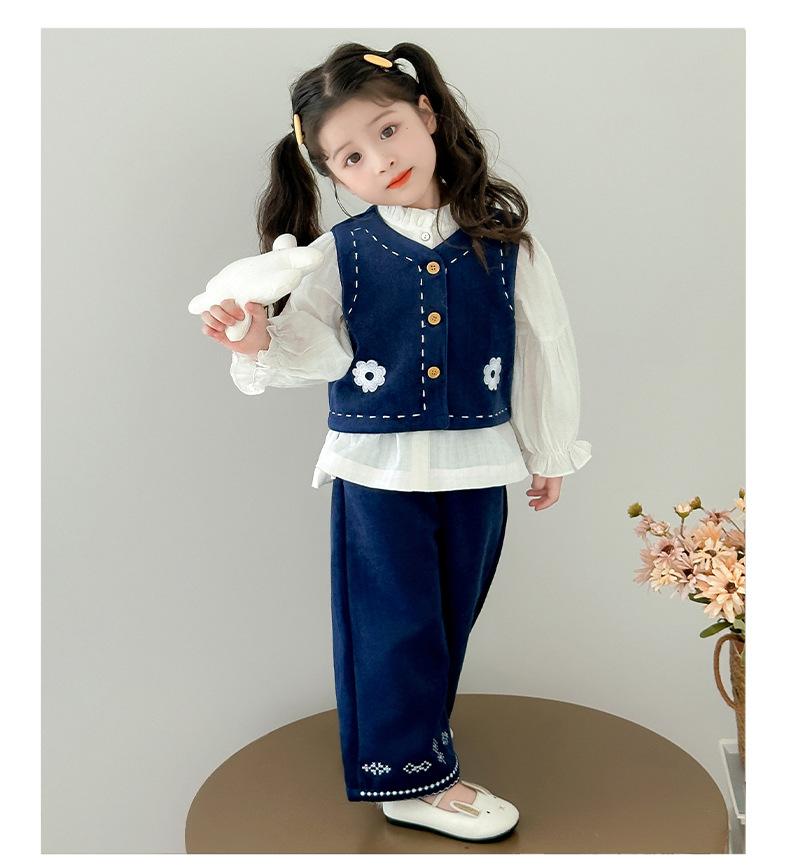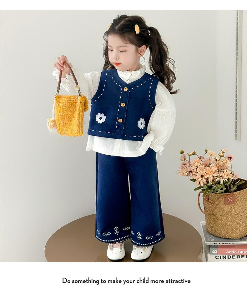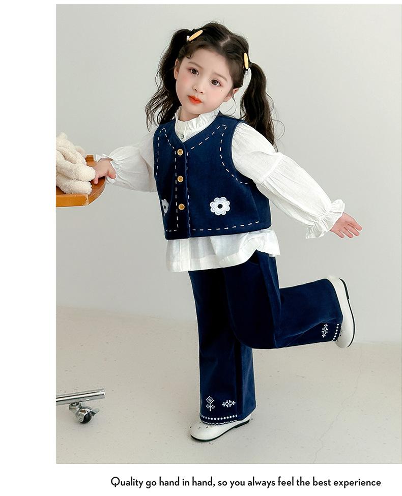 Compre Terno Coreano para Meninas Outono 2025 Novo Estilo Terno Infantil de Três Peças Colete Bebê Calça Camisa Roupas Infantis Pequenas e Médias no atacado no Joom.pro