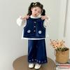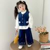 Terno Coreano para Meninas Outono 2025 Novo Estilo Terno Infantil de Três Peças Colete Bebê Calça Camisa Roupas Infantis Pequenas e Médias