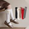 Meias de Cano Médio para Meninas Atacado Transfronteiriço Meias Infantis Cor Sólida Algodão Alta Elasticidade Primavera e Outono Estilo Coreano Meias de Cano Médio para Meninas com Laço