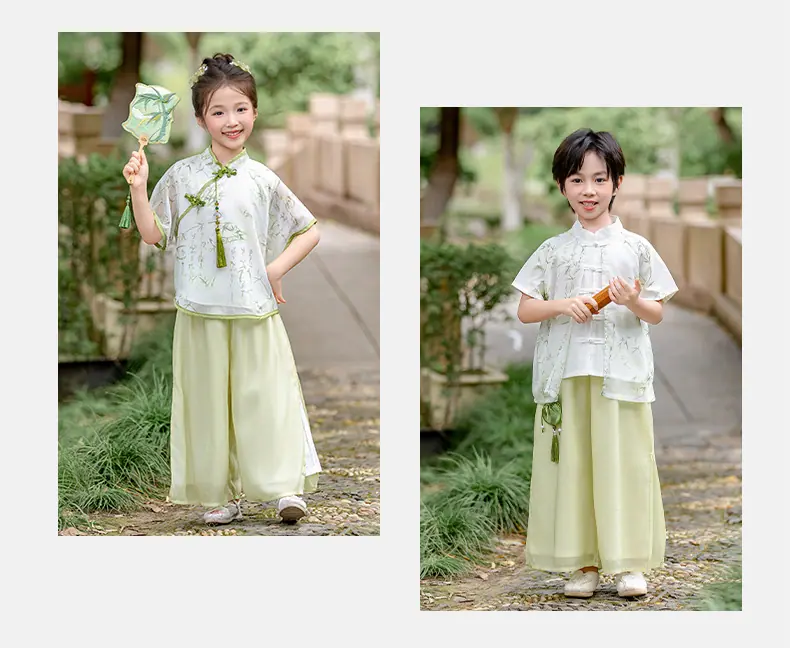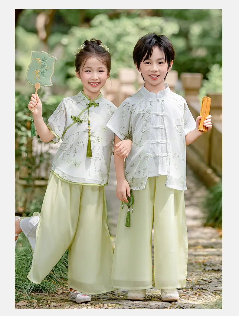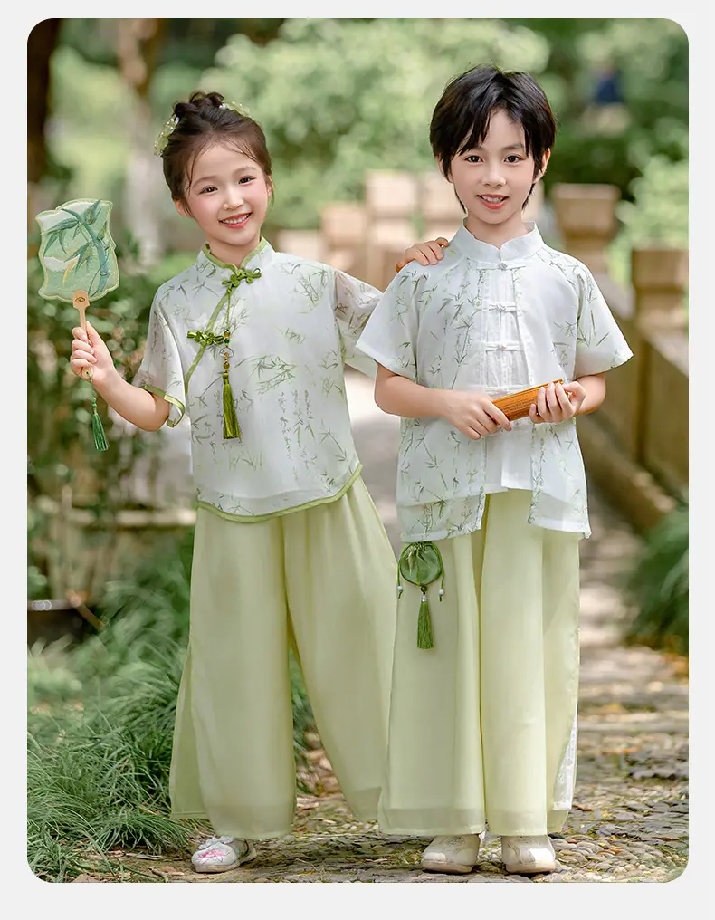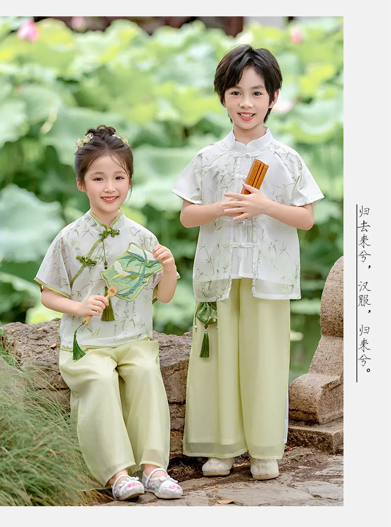 Traje Tang para Meninos e Meninas Novo Estilo Chinês Fantasia para Apresentação Festival do Meio Outono Hanfu Palco Fantasia Guoxue Fantasia para Apresentação de Coro de Estudantes do Ensino Fundamental