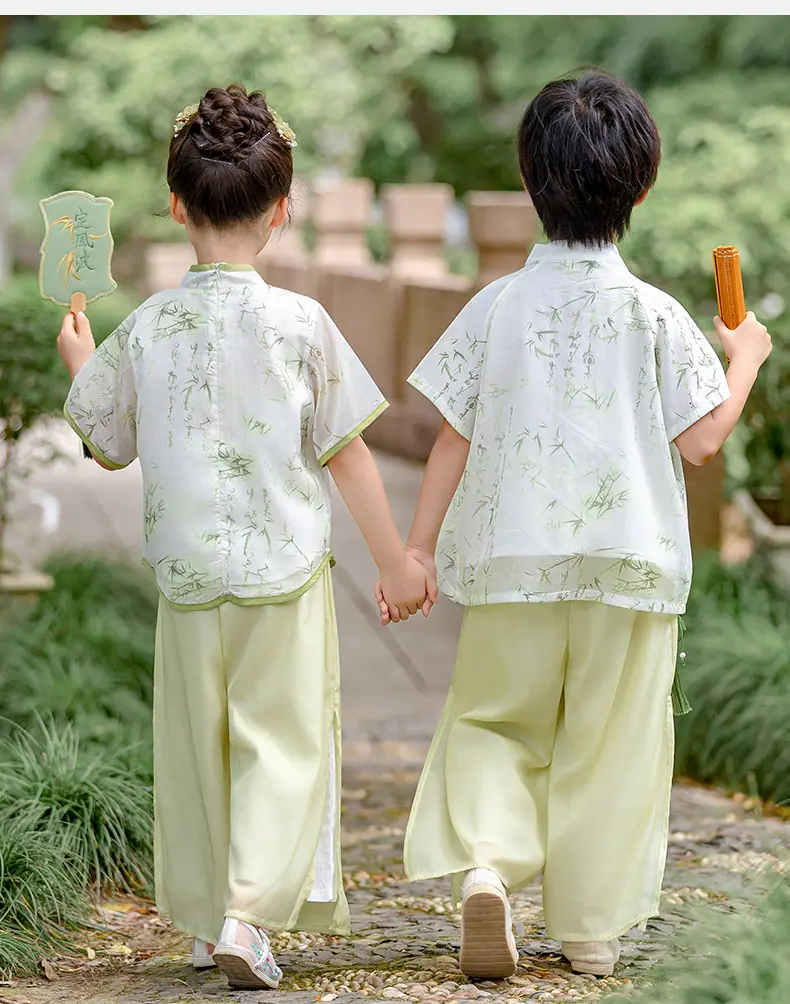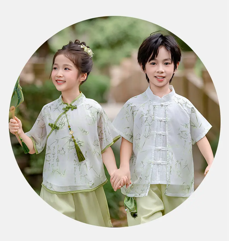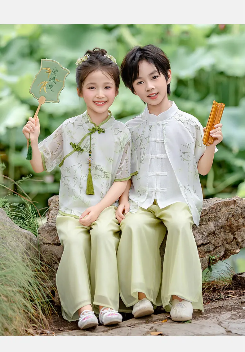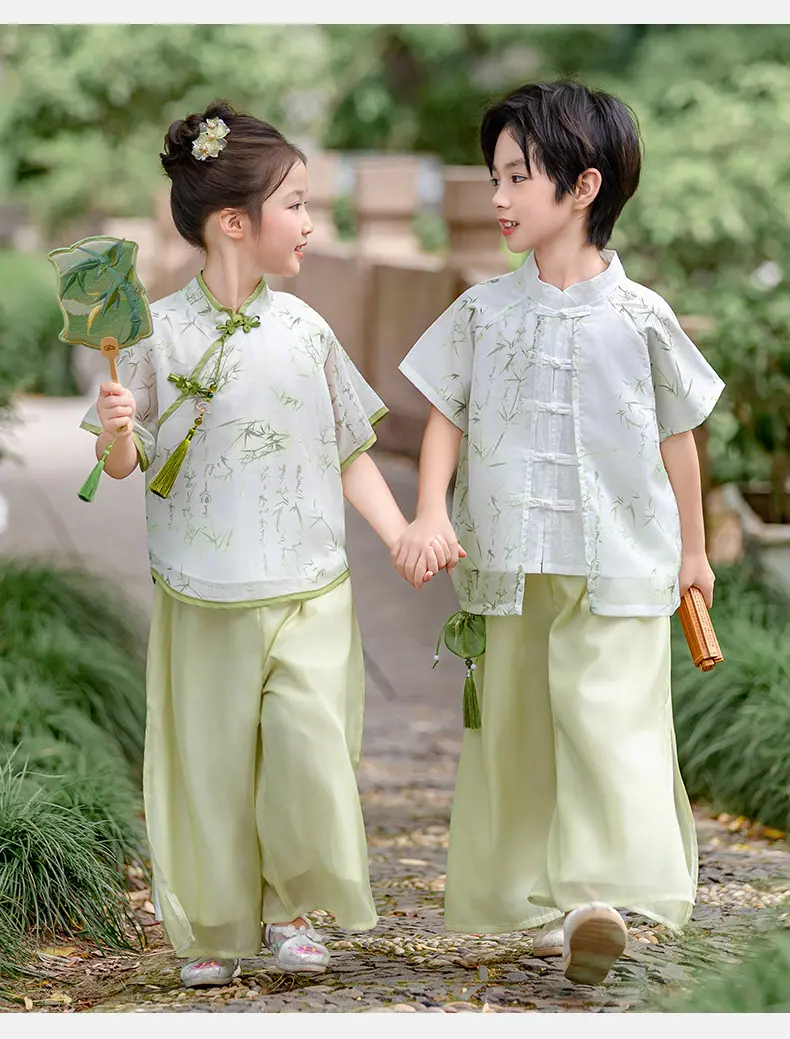 Traje Tang para Meninos e Meninas Novo Estilo Chinês Fantasia para Apresentação Festival do Meio Outono Hanfu Palco Fantasia Guoxue Fantasia para Apresentação de Coro de Estudantes do Ensino Fundamental