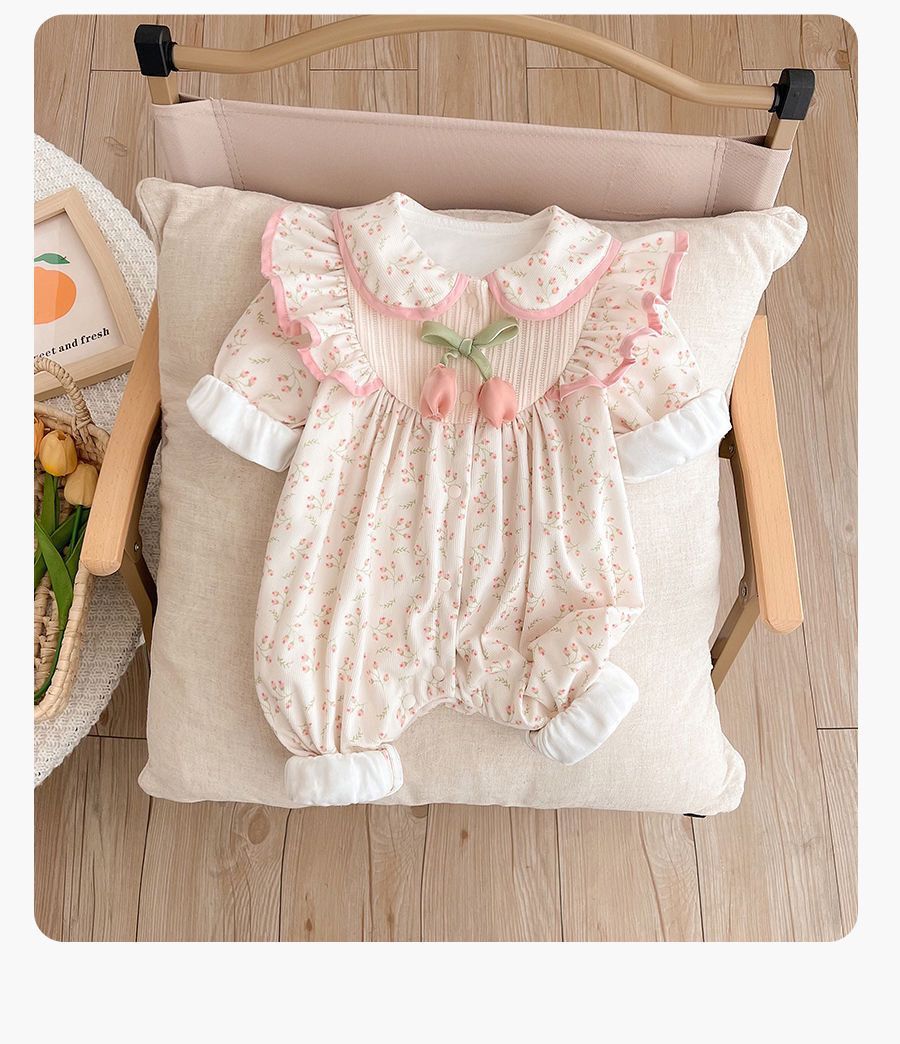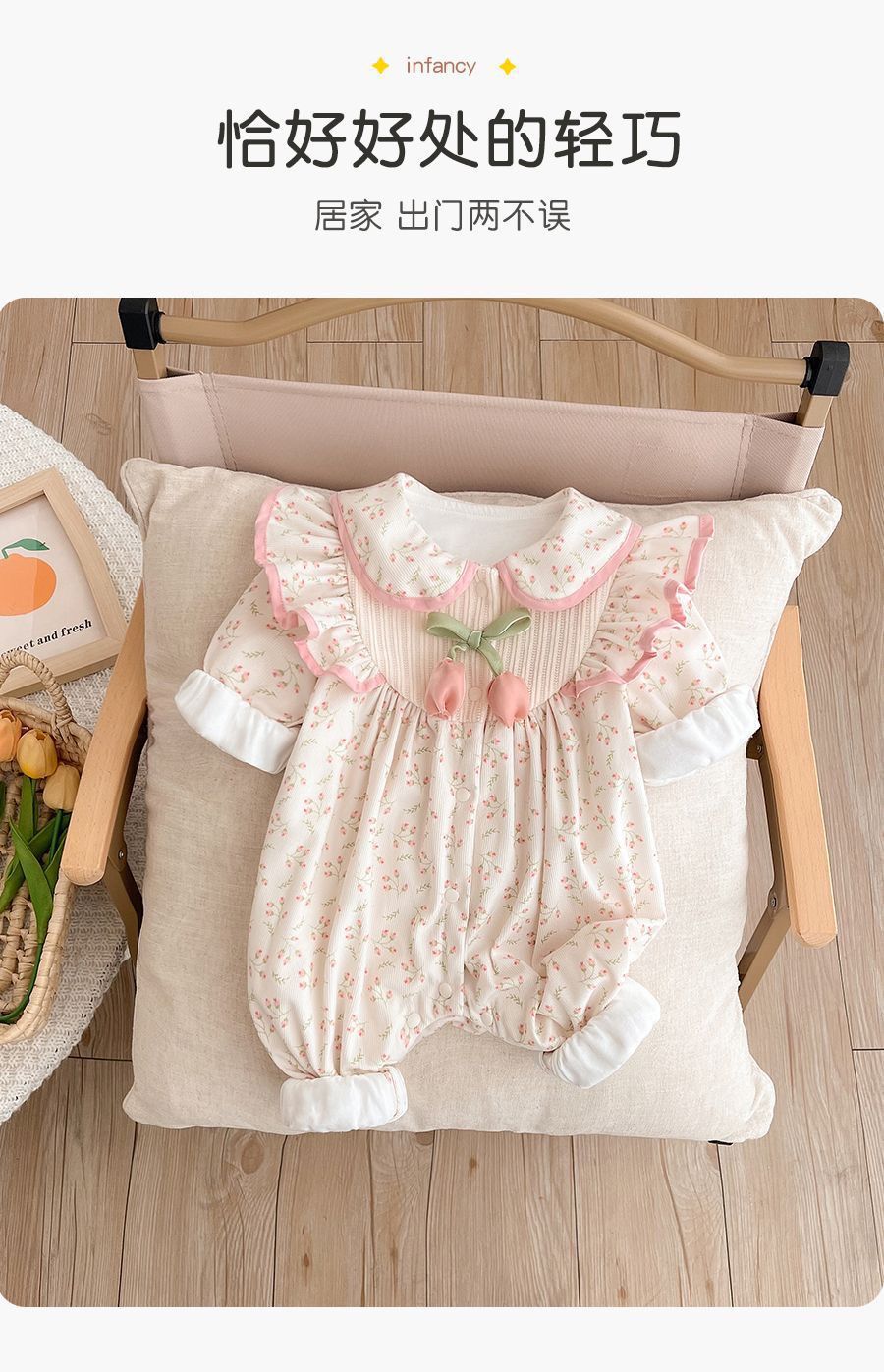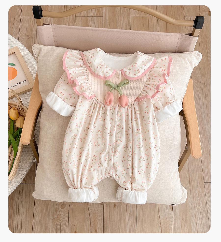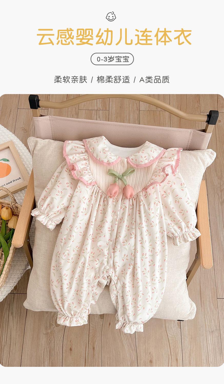 Macacão super fofo para bebê menina primavera e outono recém-nascido para exterior fashion princesa camada dupla