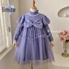 Vestido de Outono para Meninas 2025 Novo Vestido de Tule Estilo Preppy Infantil da Moda Roupas de Outono para Meninas Vestido Camisa de Manga Longa
