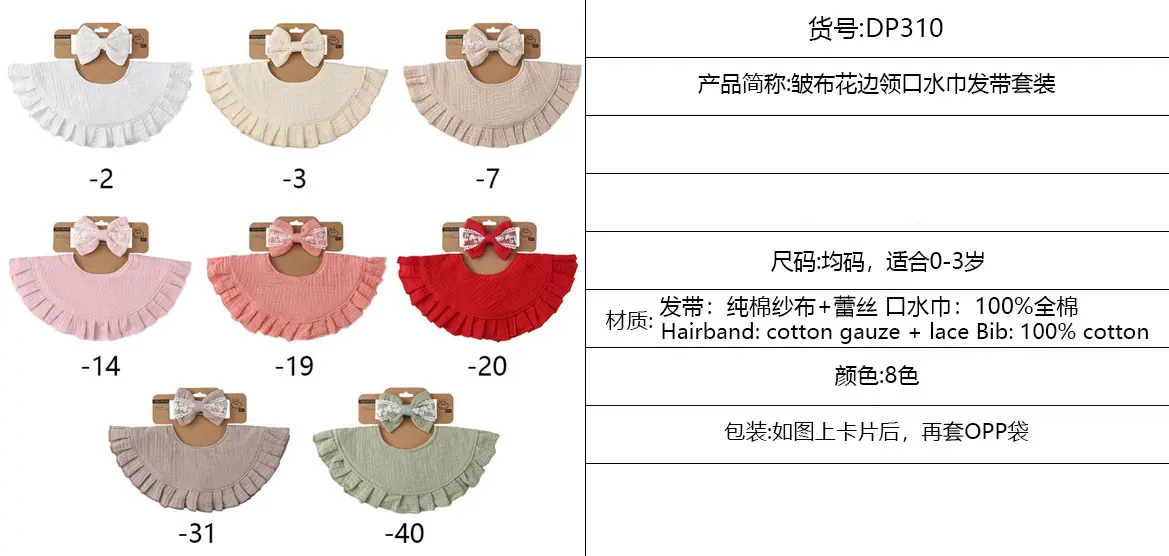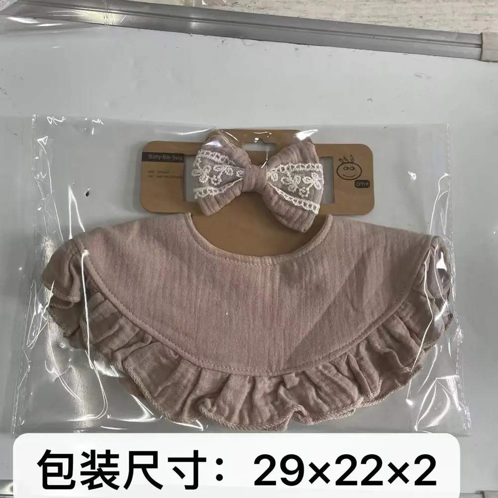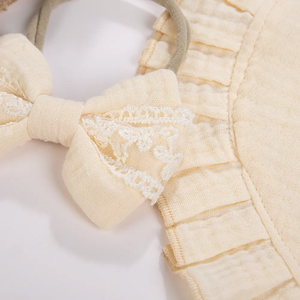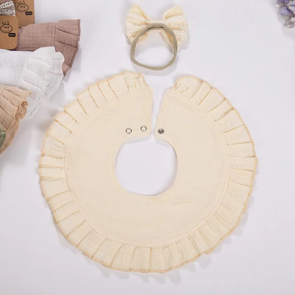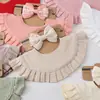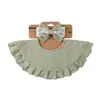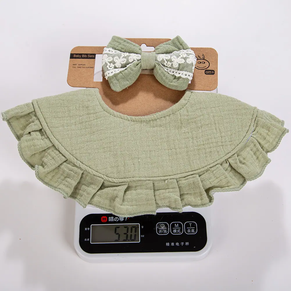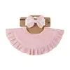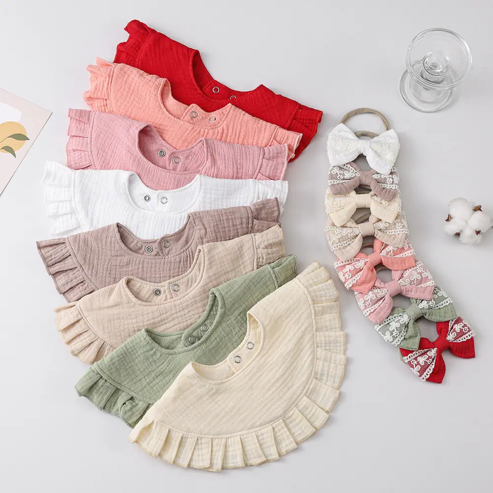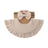 Conjunto babador bandana para bebê estilo europeu e americano, faixa de cabelo com laço amassadinho para recém-nascido, conjunto babador com babado