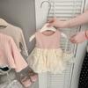 Vestido de Outono para Meninas Novo Vestido da Moda para Bebê de Um Ano de Idade Vestido de Princesa Infantil de Outono Conjunto Cardigan Saia