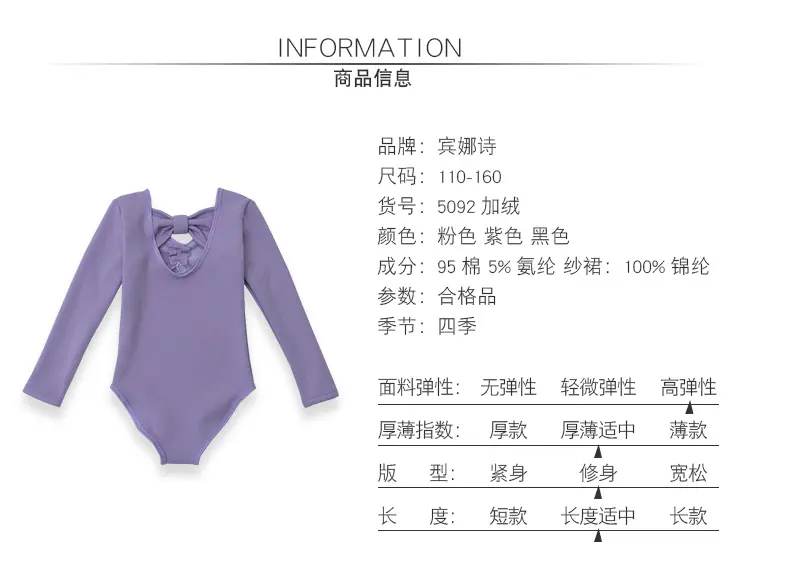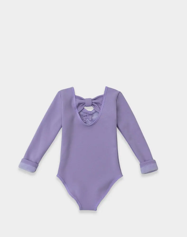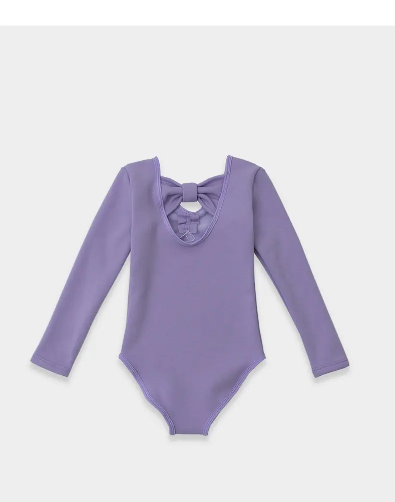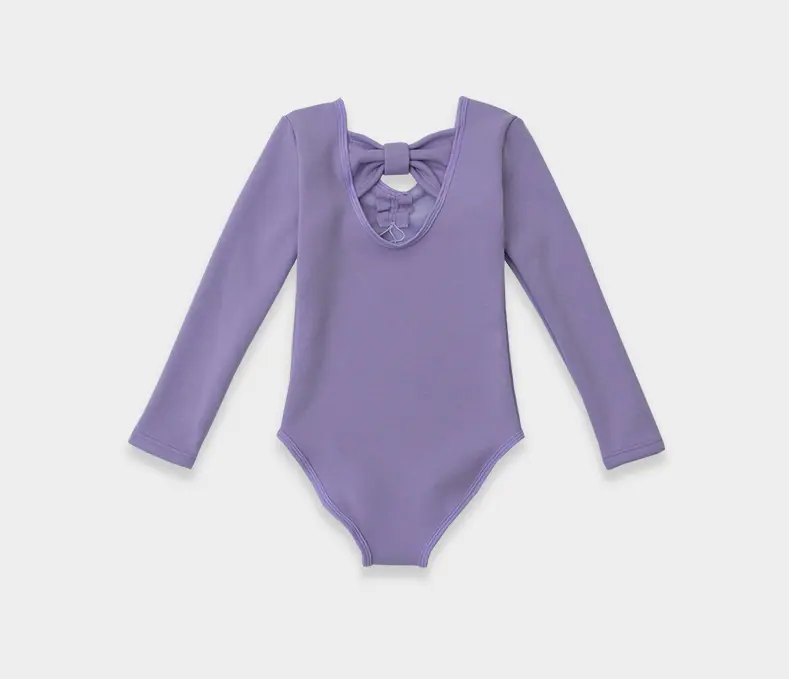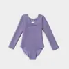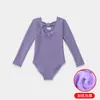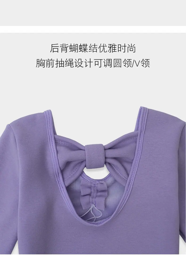 Roupa de dança infantil forrada com fleece e grossa para meninas, roupa de prática de algodão puro roxa para crianças pequenas, vestido de balé para dança chinesa, collant para exame