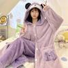 Pijama Feminino de Lã Coral de Inverno Outono Inverno Espessado Plus Veludo Gola Redonda Rosa Tamanho Plus Flanela Roupa de Casa Conjunto Feminino