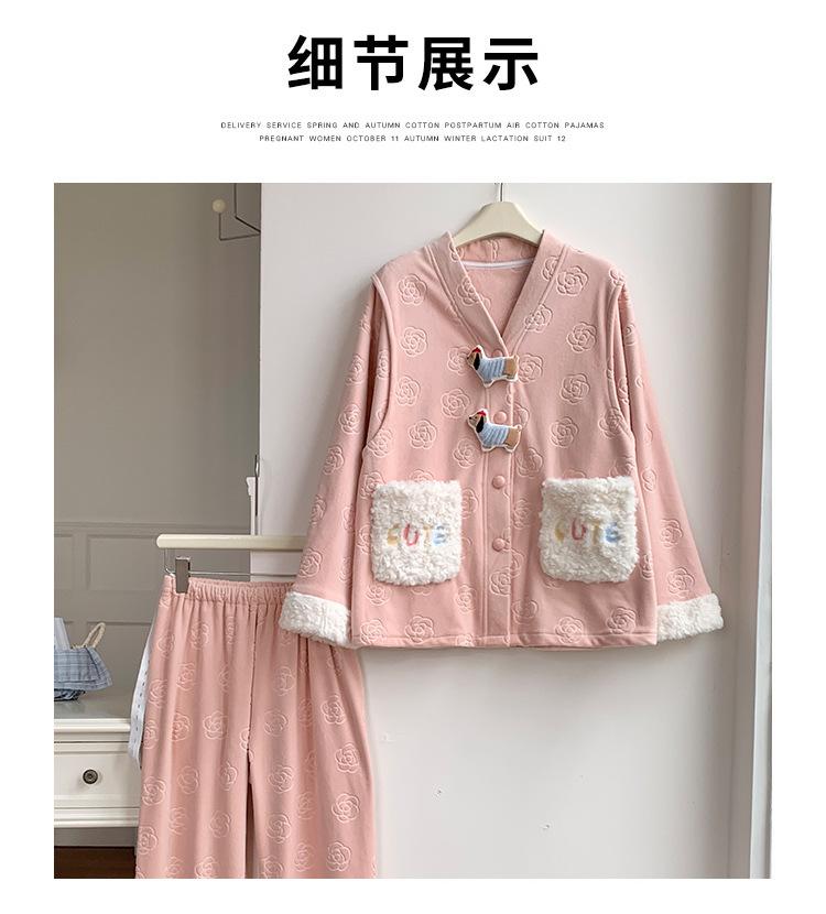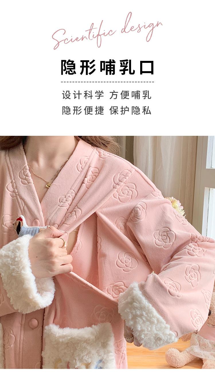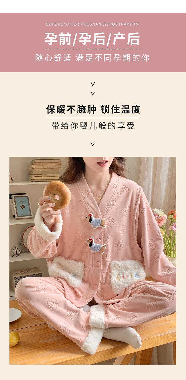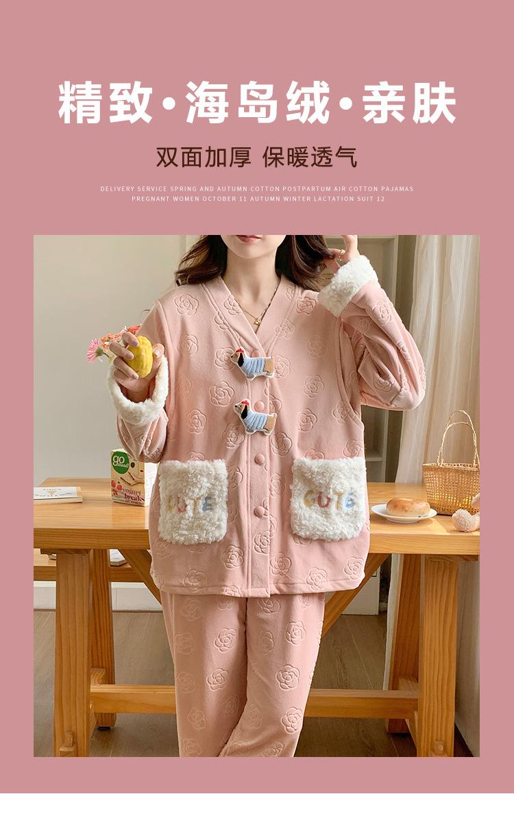 Feliz Lua 2025 Inverno Jacquard Ilha Fleece Amamentação Pós-parto Vestuário Mulheres Grávidas Amamentação Espessado Quente Amamentação Conjunto de Duas Peças