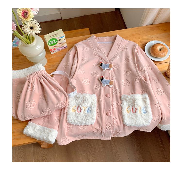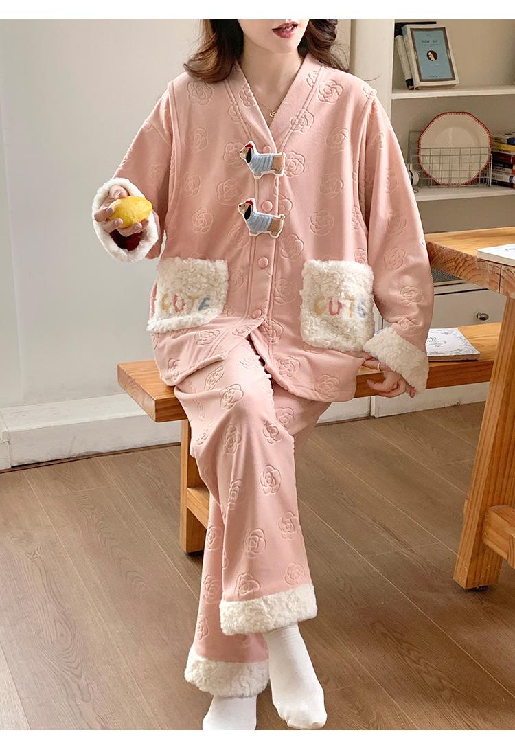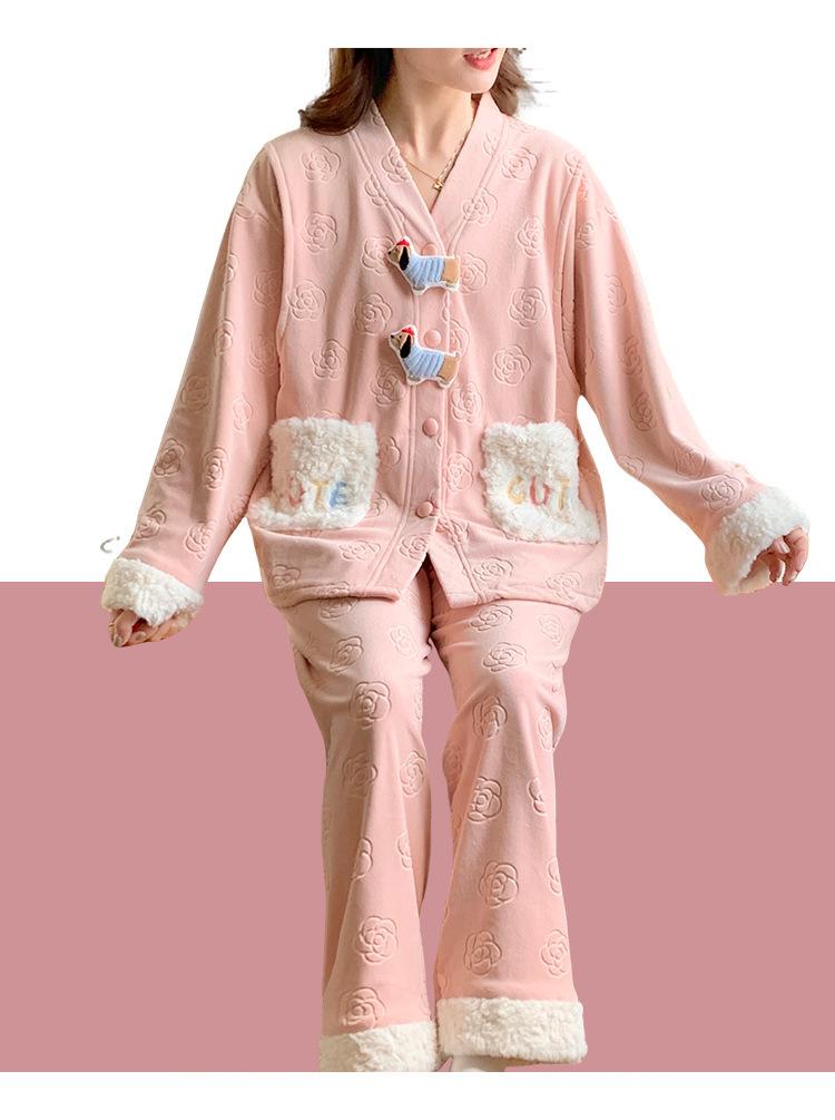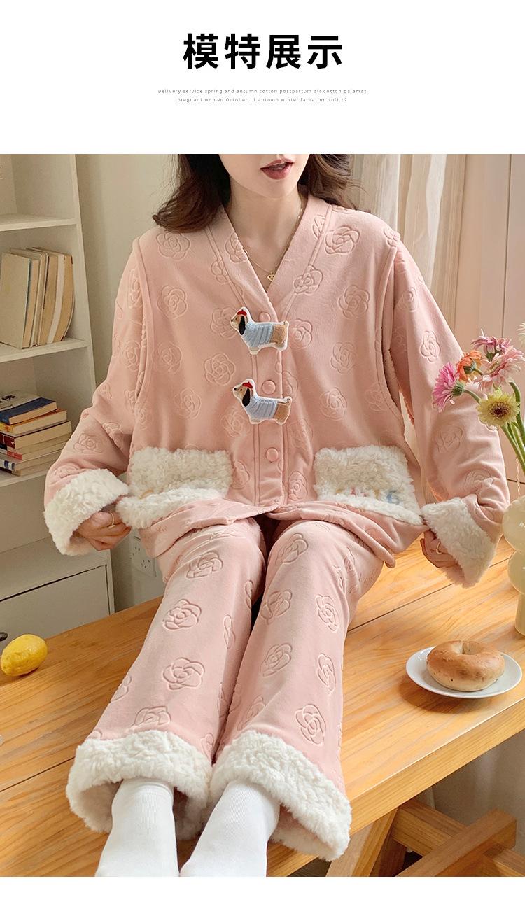 Feliz Lua 2025 Inverno Jacquard Ilha Fleece Amamentação Pós-parto Vestuário Mulheres Grávidas Amamentação Espessado Quente Amamentação Conjunto de Duas Peças