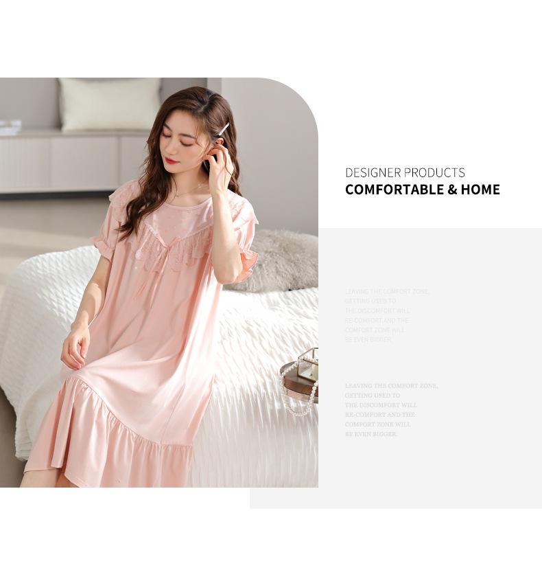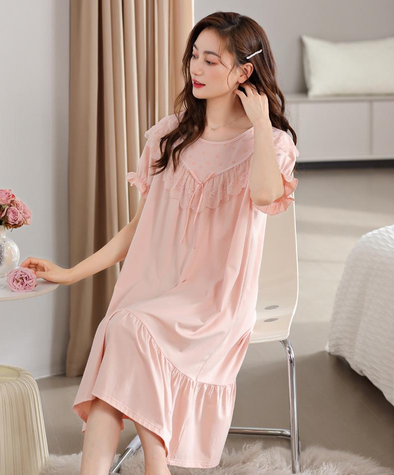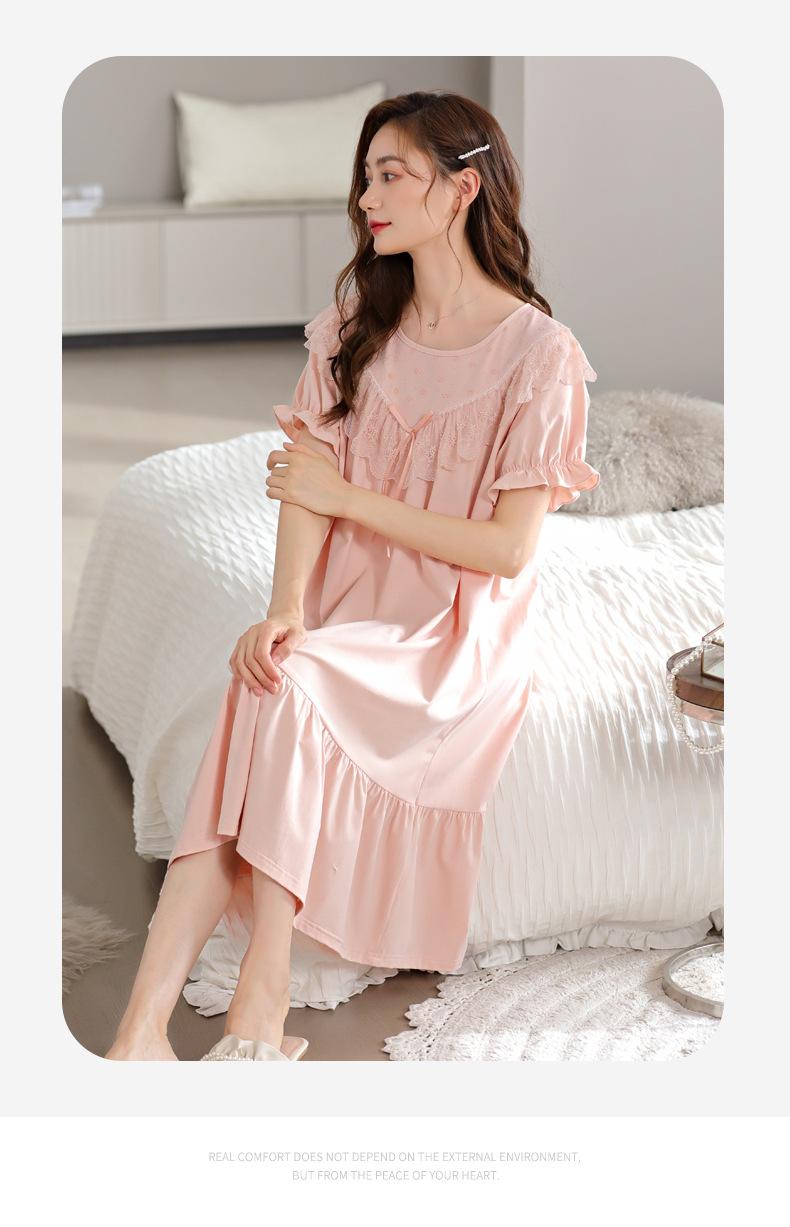 Compre Camisola Feminina, Verão Algodão Puro 2024 Novo Estilo, Vestido de Pijama Fresco de Manga Curta, Estilo Princesa, Roupa de Casa de Alta Qualidade no atacado no Joom.pro