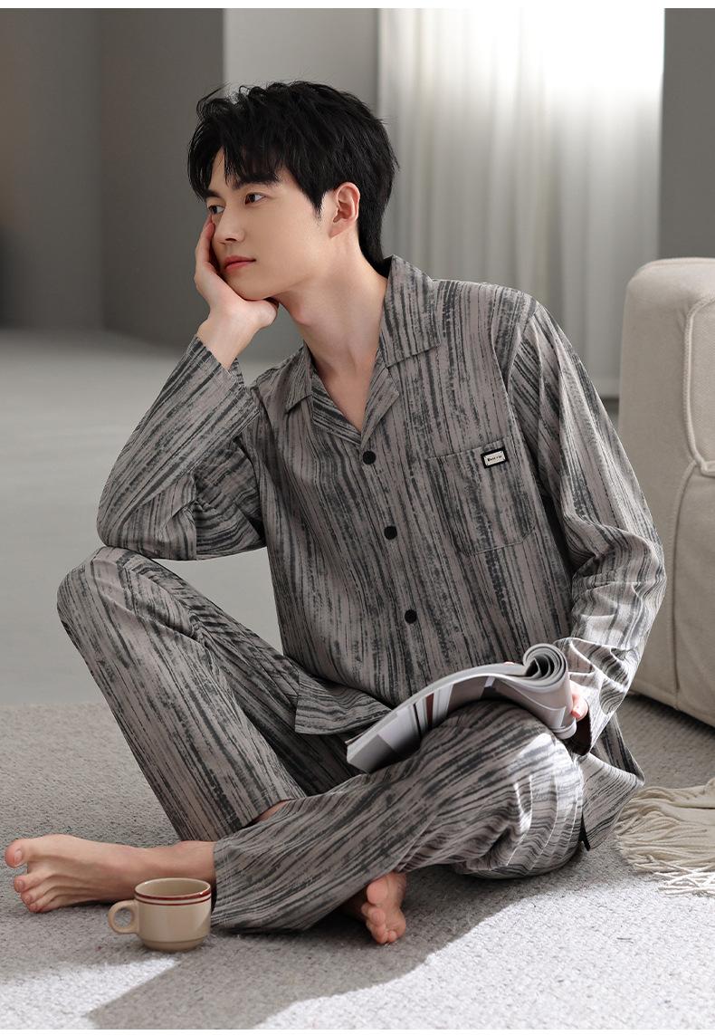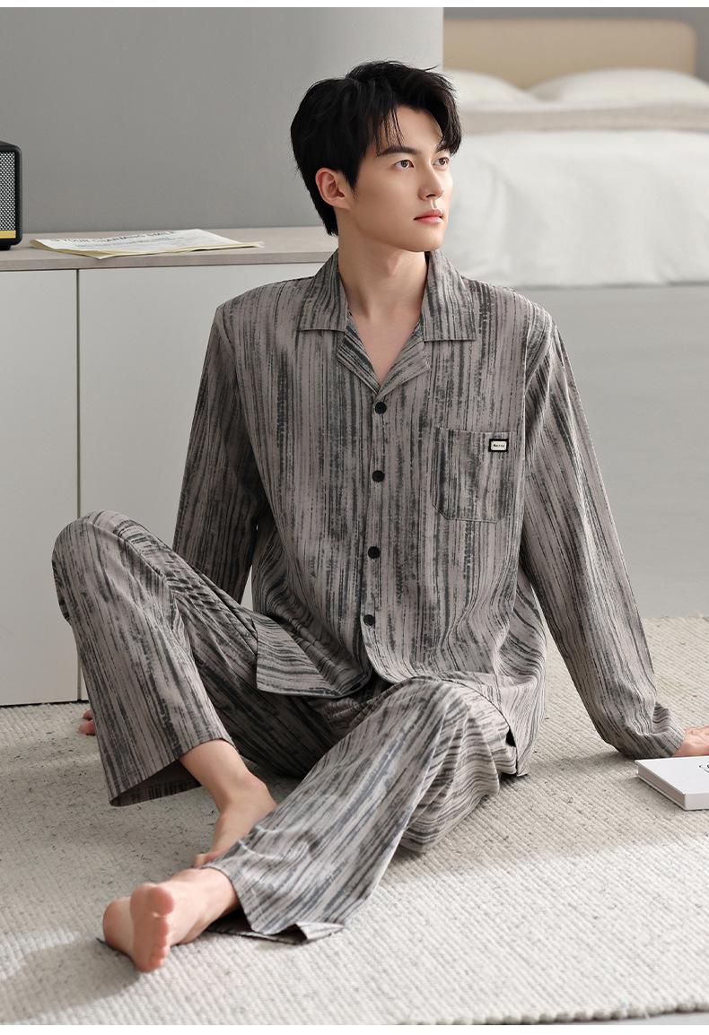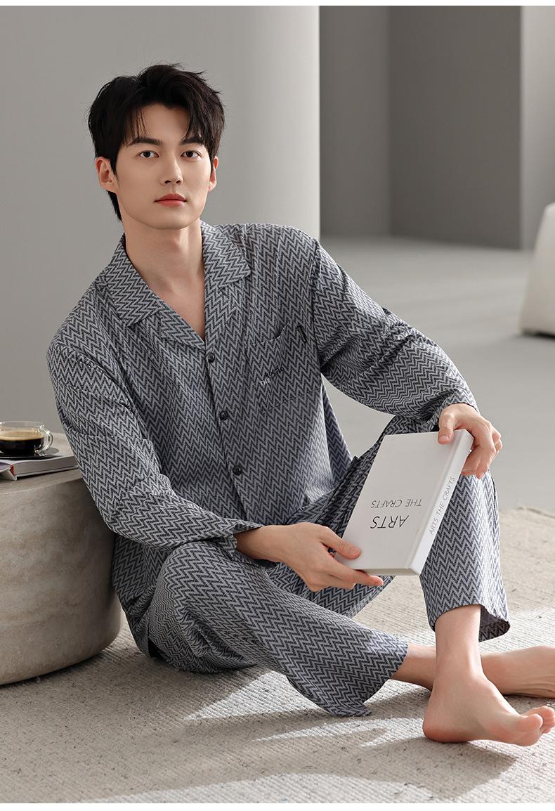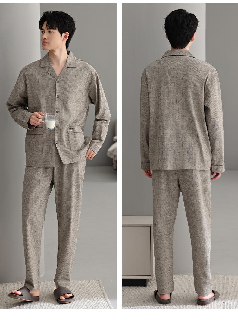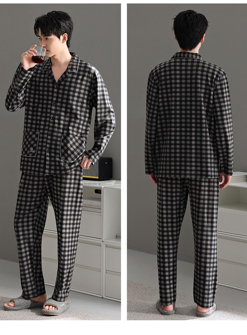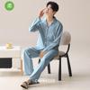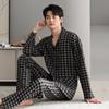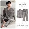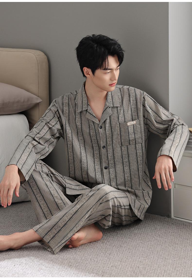 Pijamas de Algodão Puro Masculino Primavera e Outono Estilo Outono Manga Longa 2025 Novo Estilo Pai de Meia-Idade Estilo Fino Tamanho Plus Conjunto para Usar em Casa