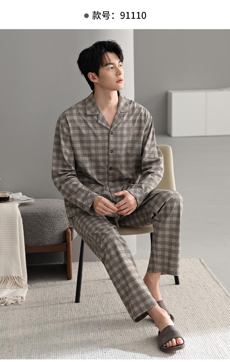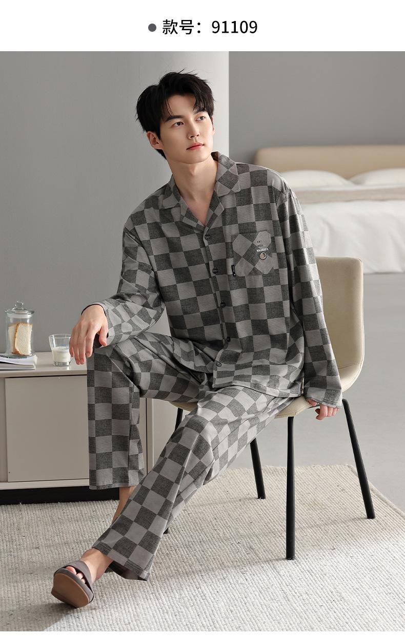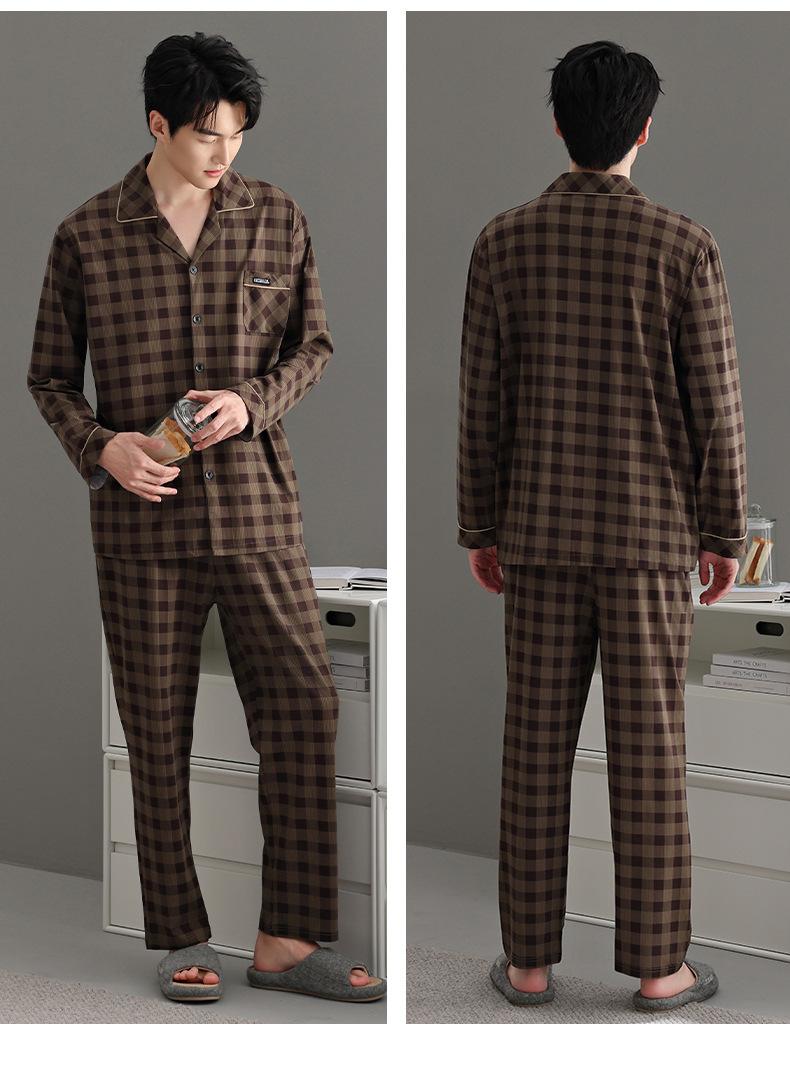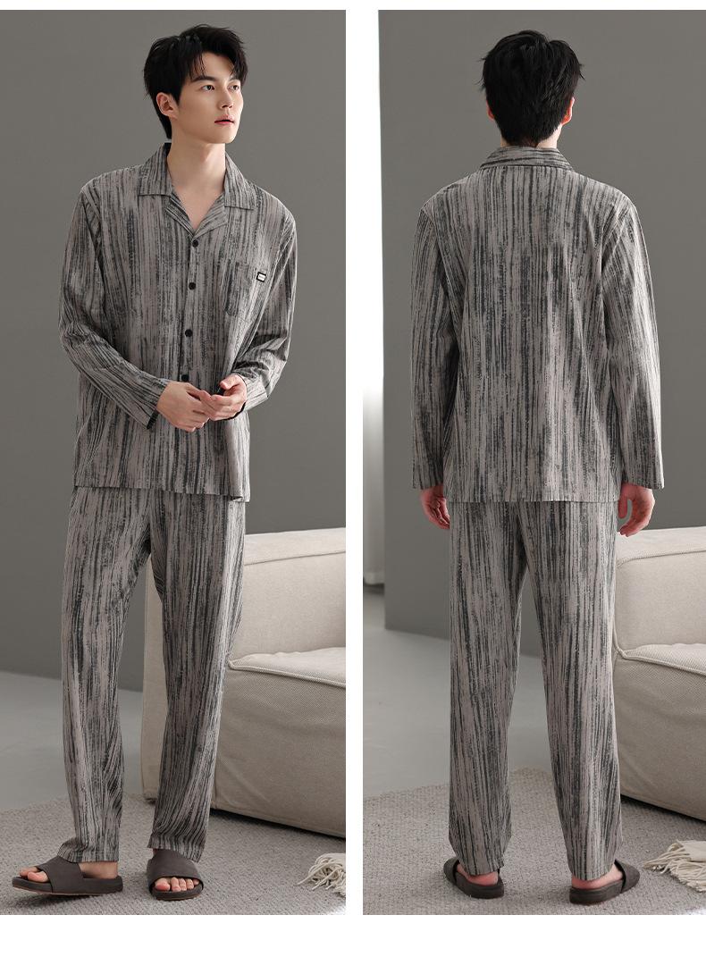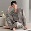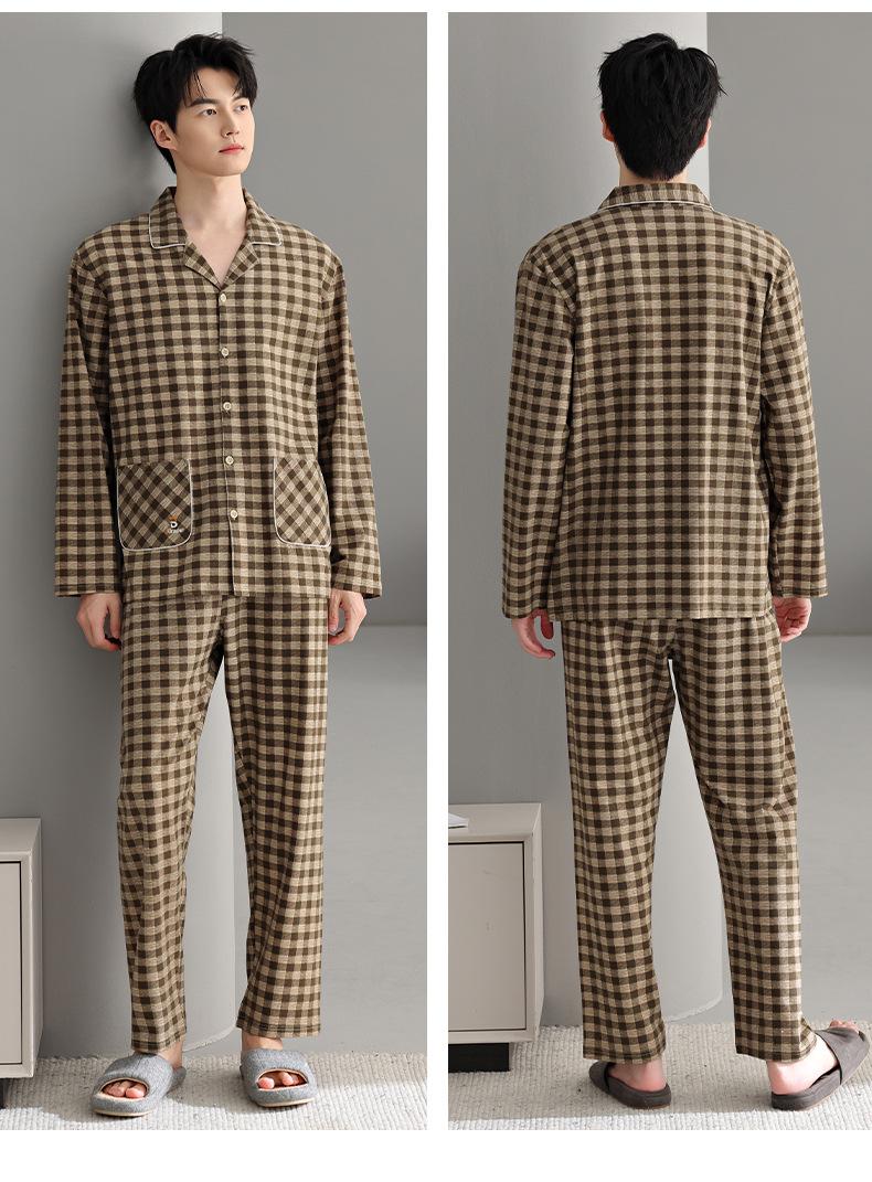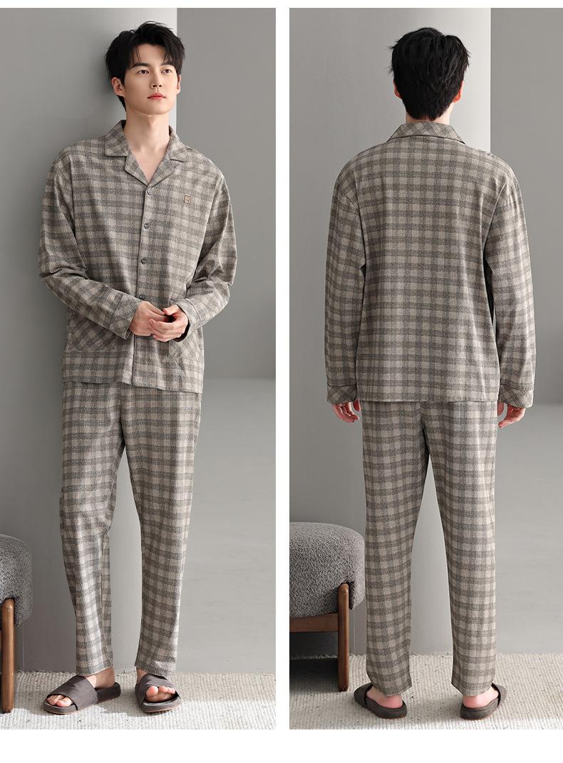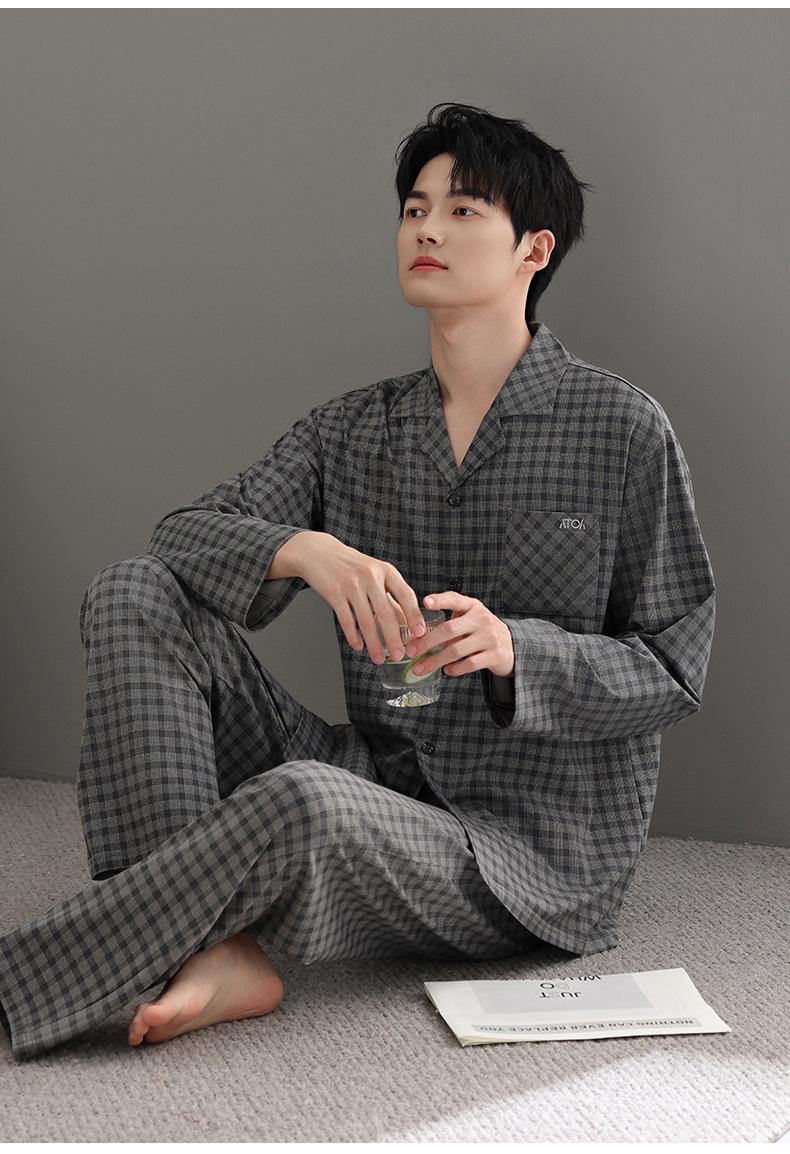 Pijamas de Algodão Puro Masculino Primavera e Outono Estilo Outono Manga Longa 2025 Novo Estilo Pai de Meia-Idade Estilo Fino Tamanho Plus Conjunto para Usar em Casa