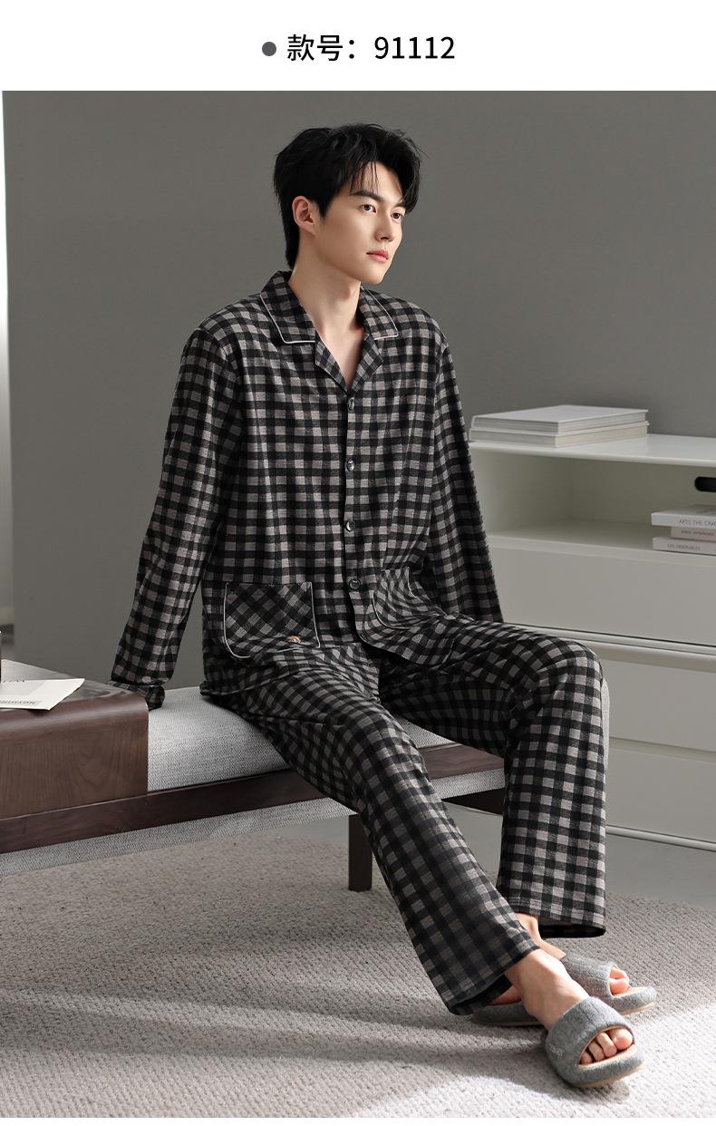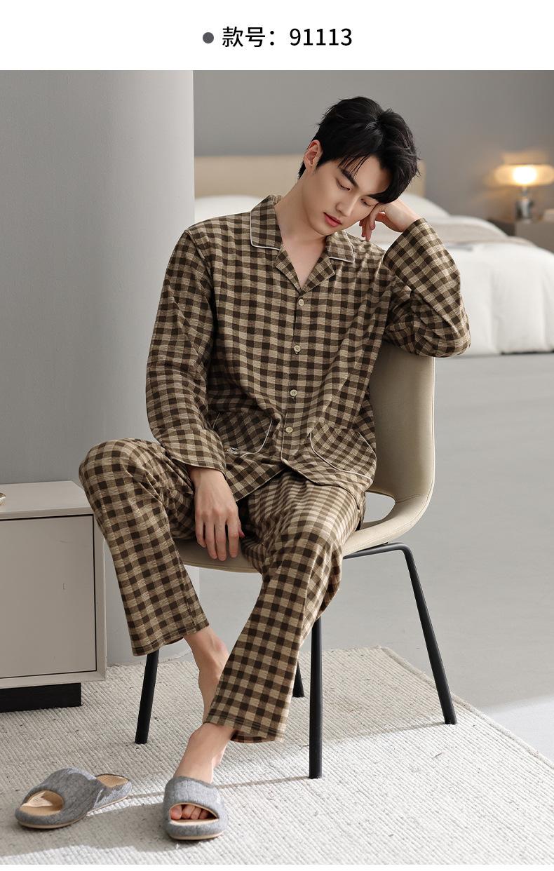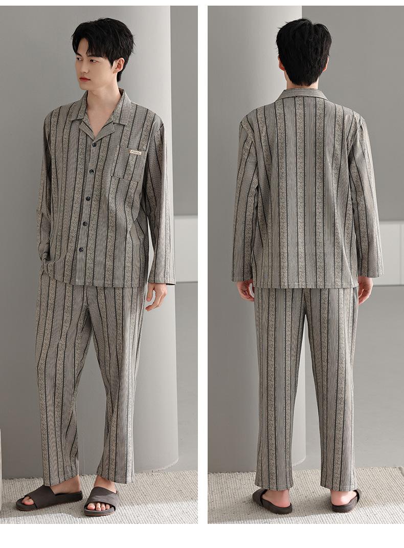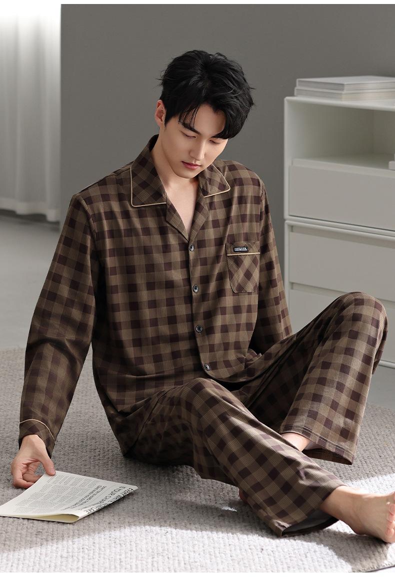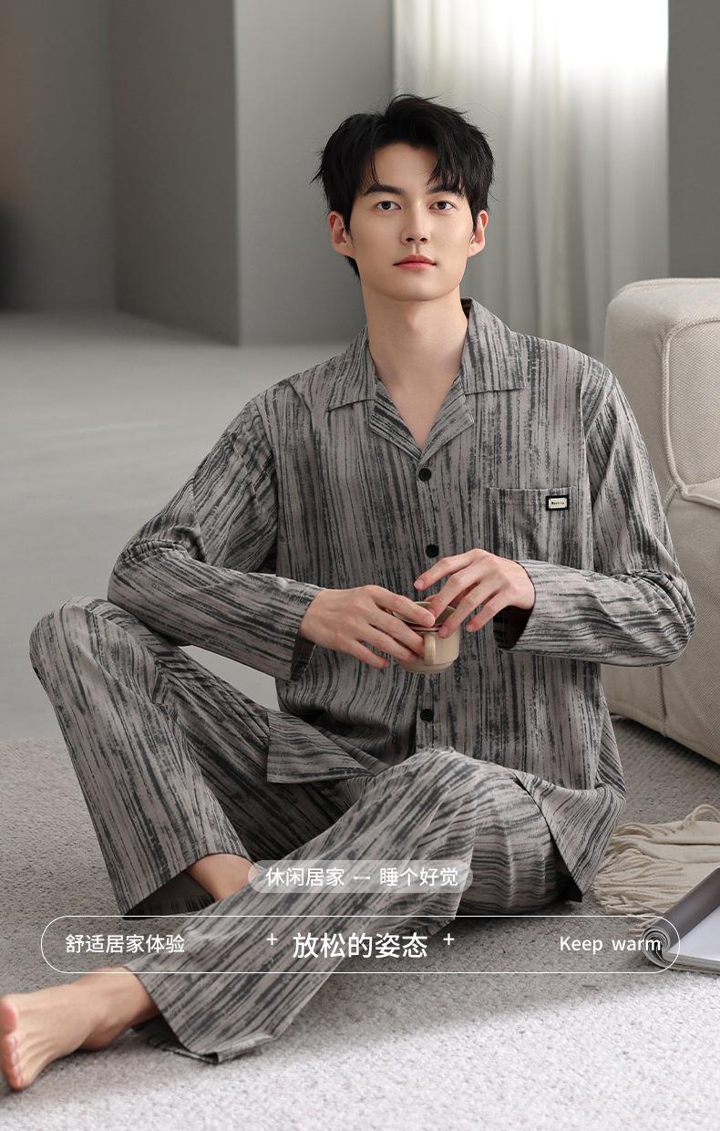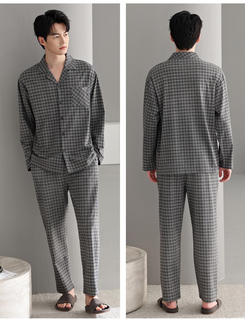 Pijamas de Algodão Puro Masculino Primavera e Outono Estilo Outono Manga Longa 2025 Novo Estilo Pai de Meia-Idade Estilo Fino Tamanho Plus Conjunto para Usar em Casa