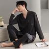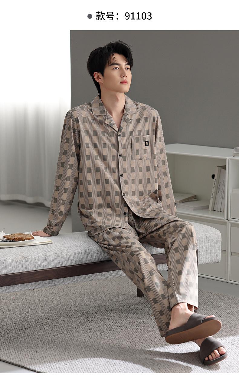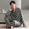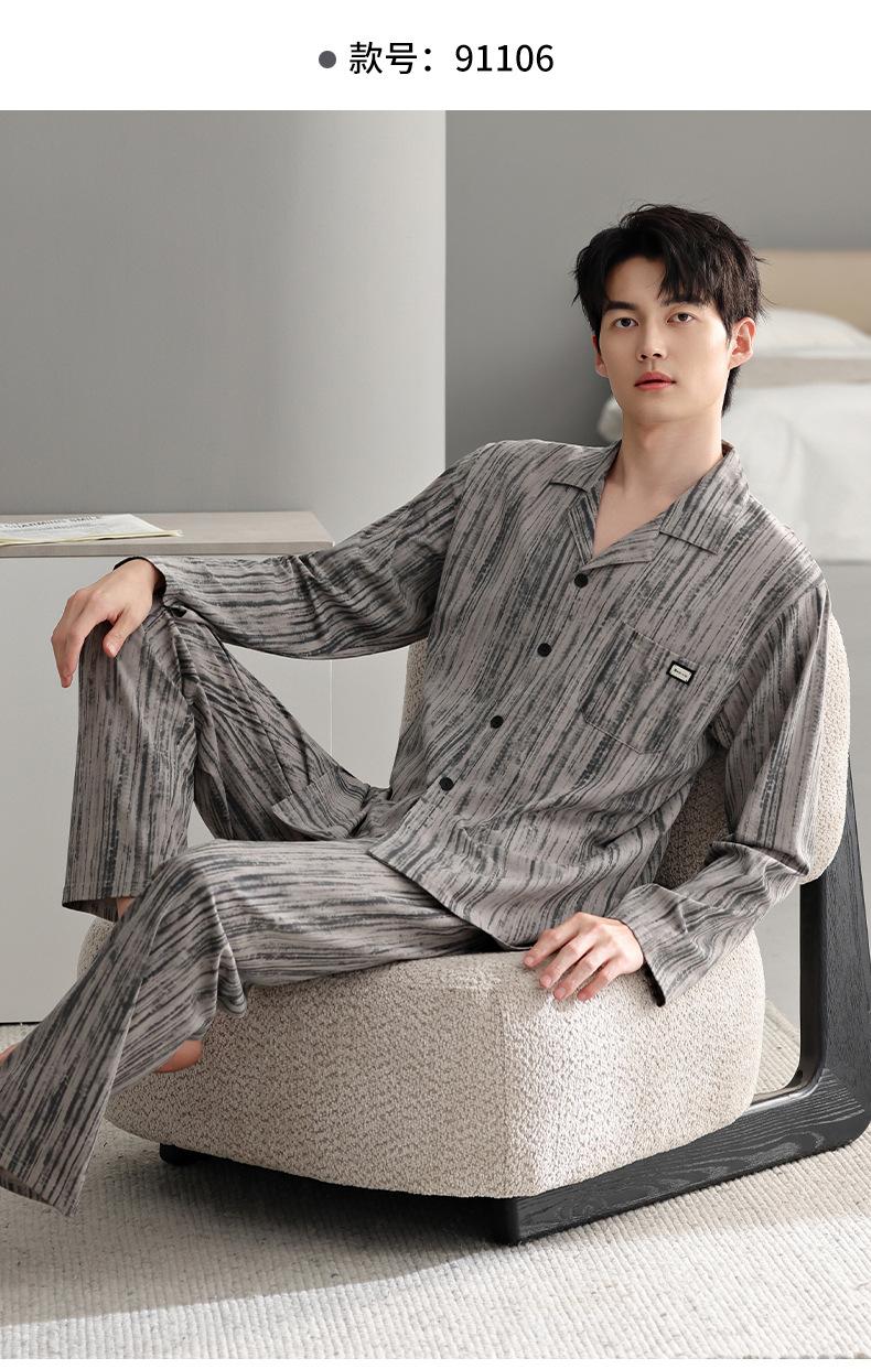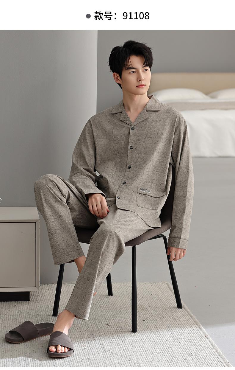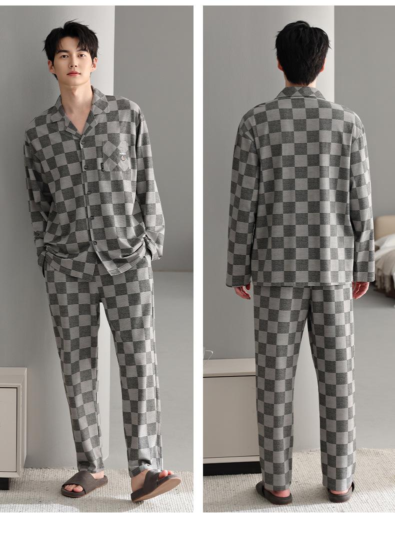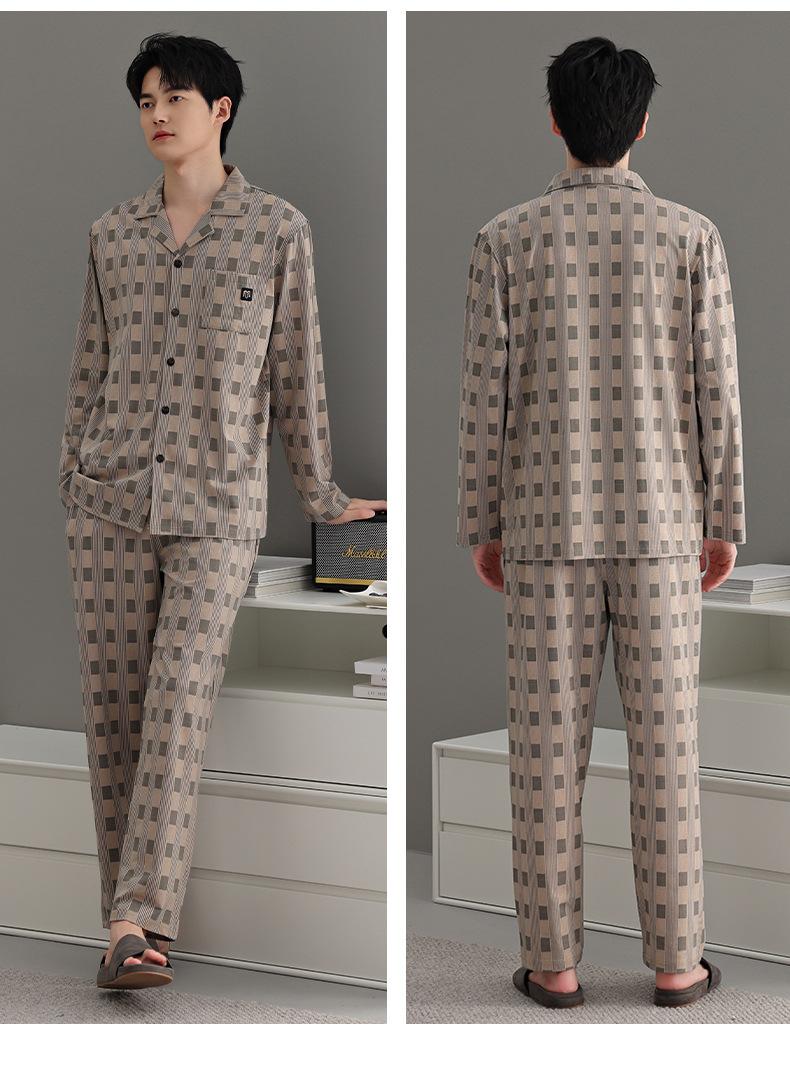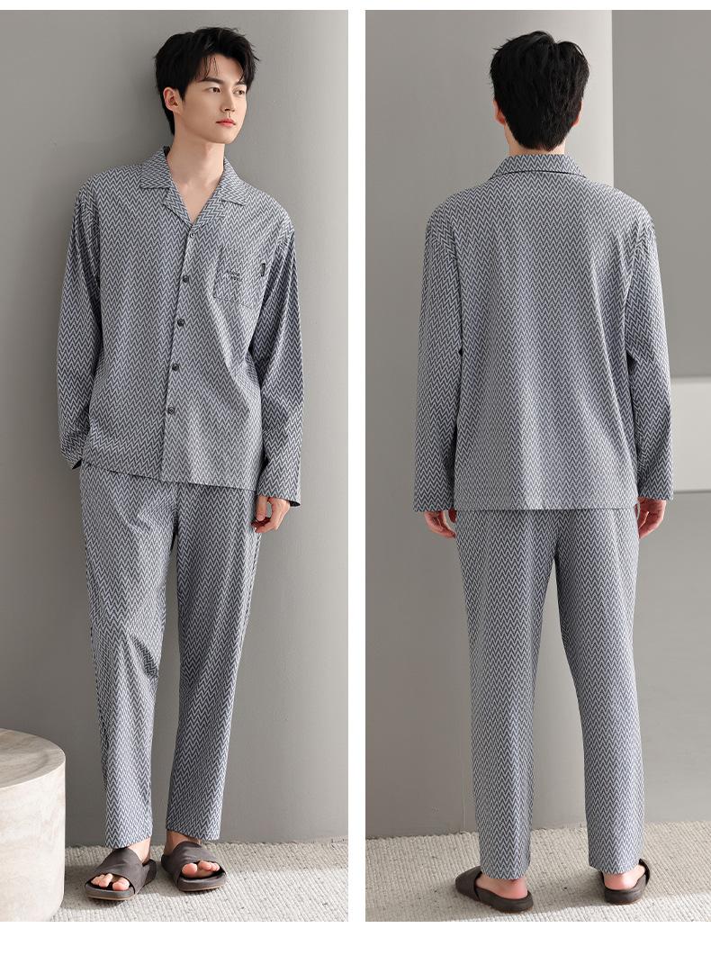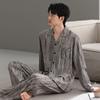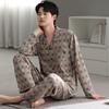 Pijamas de Algodão Puro Masculino Primavera e Outono Estilo Outono Manga Longa 2025 Novo Estilo Pai de Meia-Idade Estilo Fino Tamanho Plus Conjunto para Usar em Casa