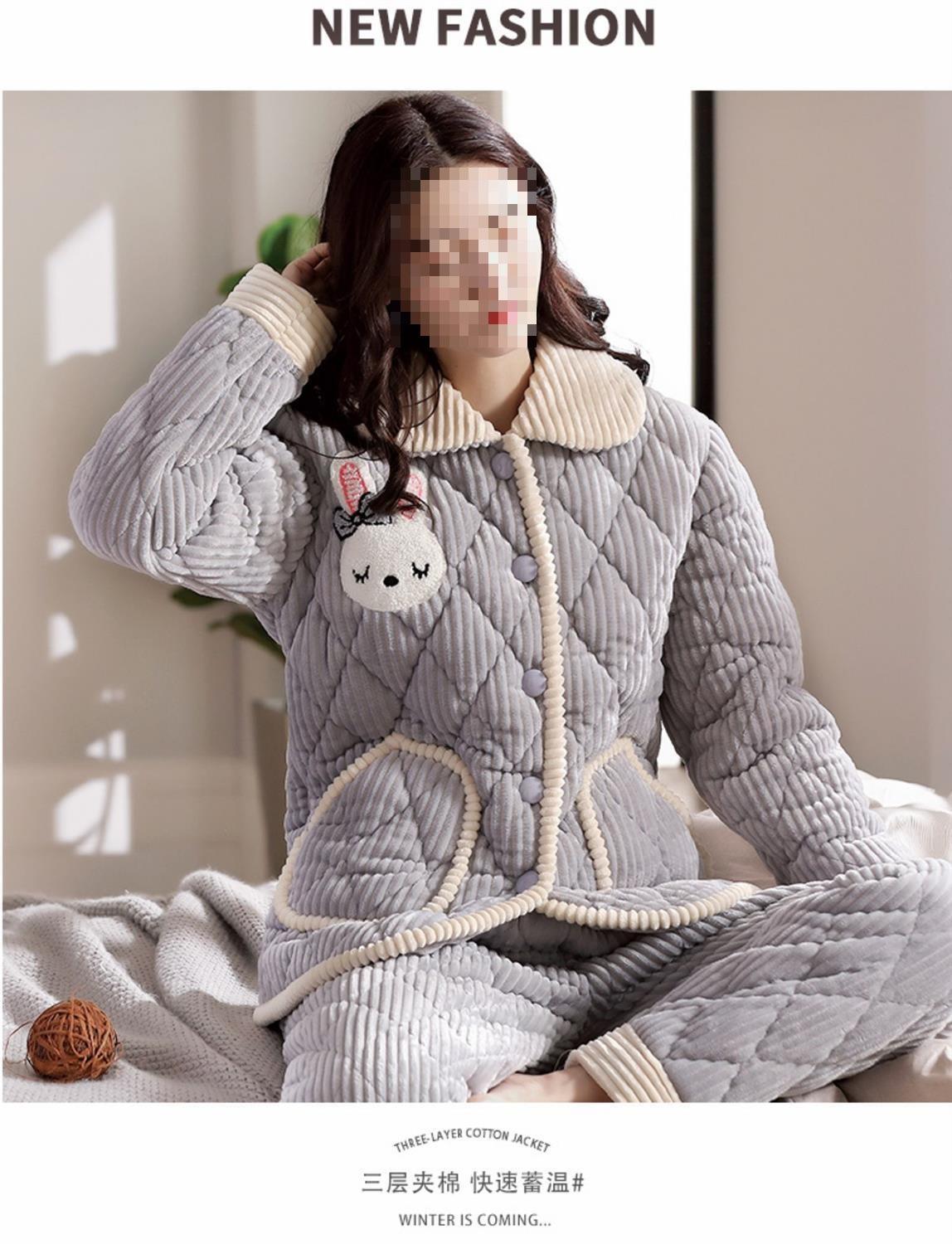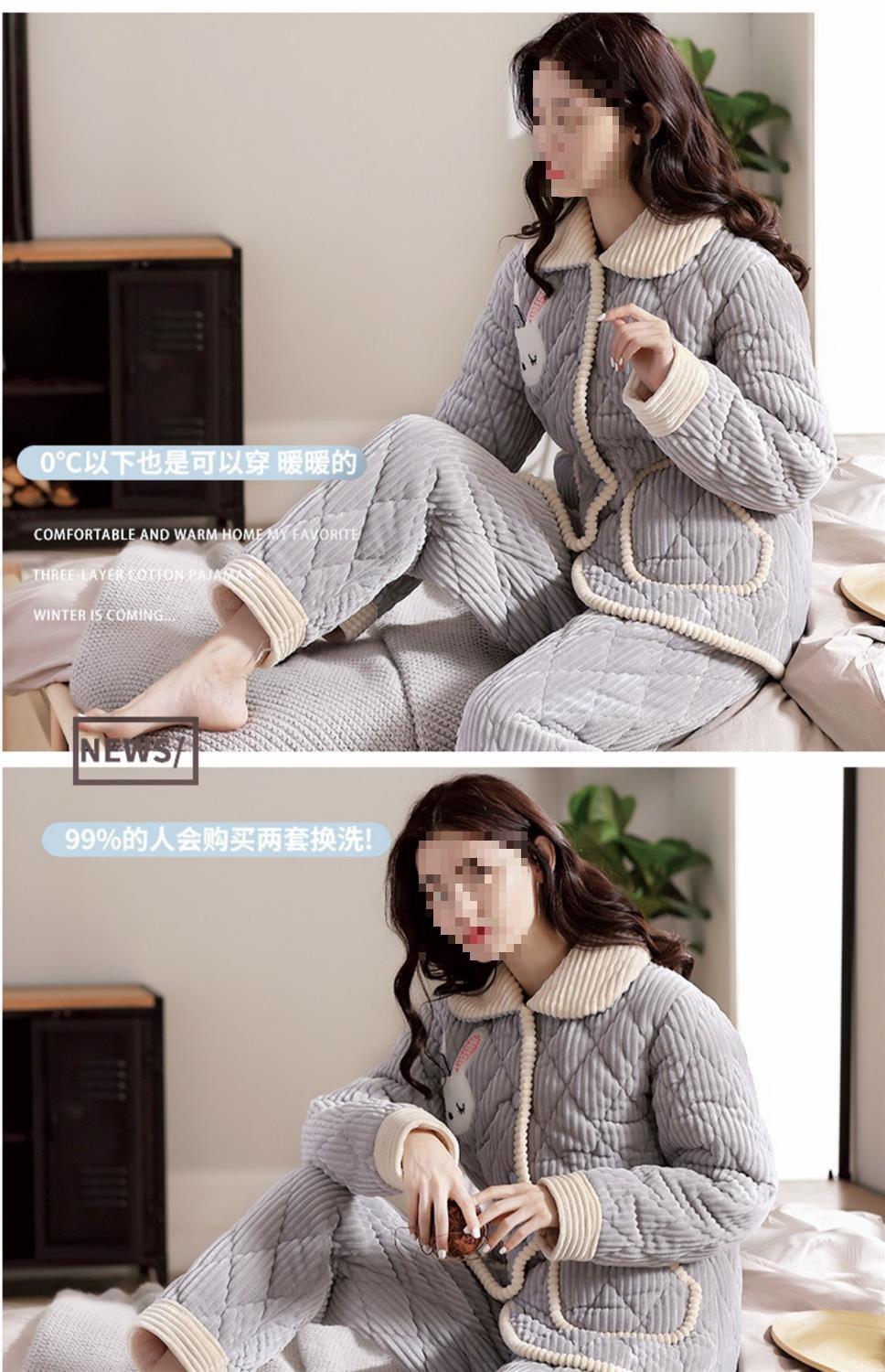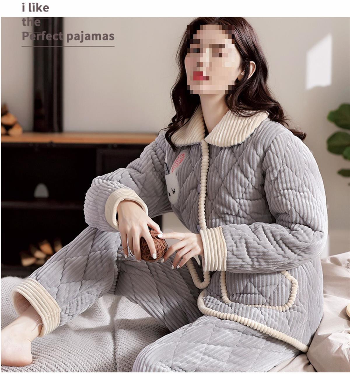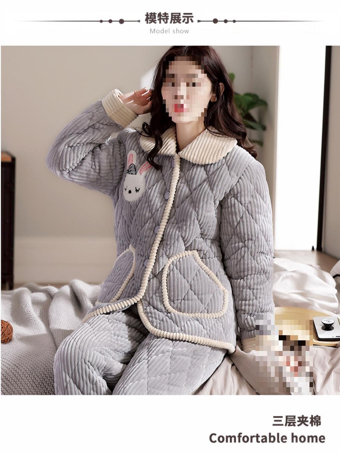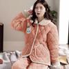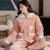 Pijama de inverno acolchoada de algodão outono pode ser usada fora conjunto de roupa de casa de flanela de três camadas espessada lã coral plus veludo clipe