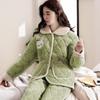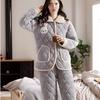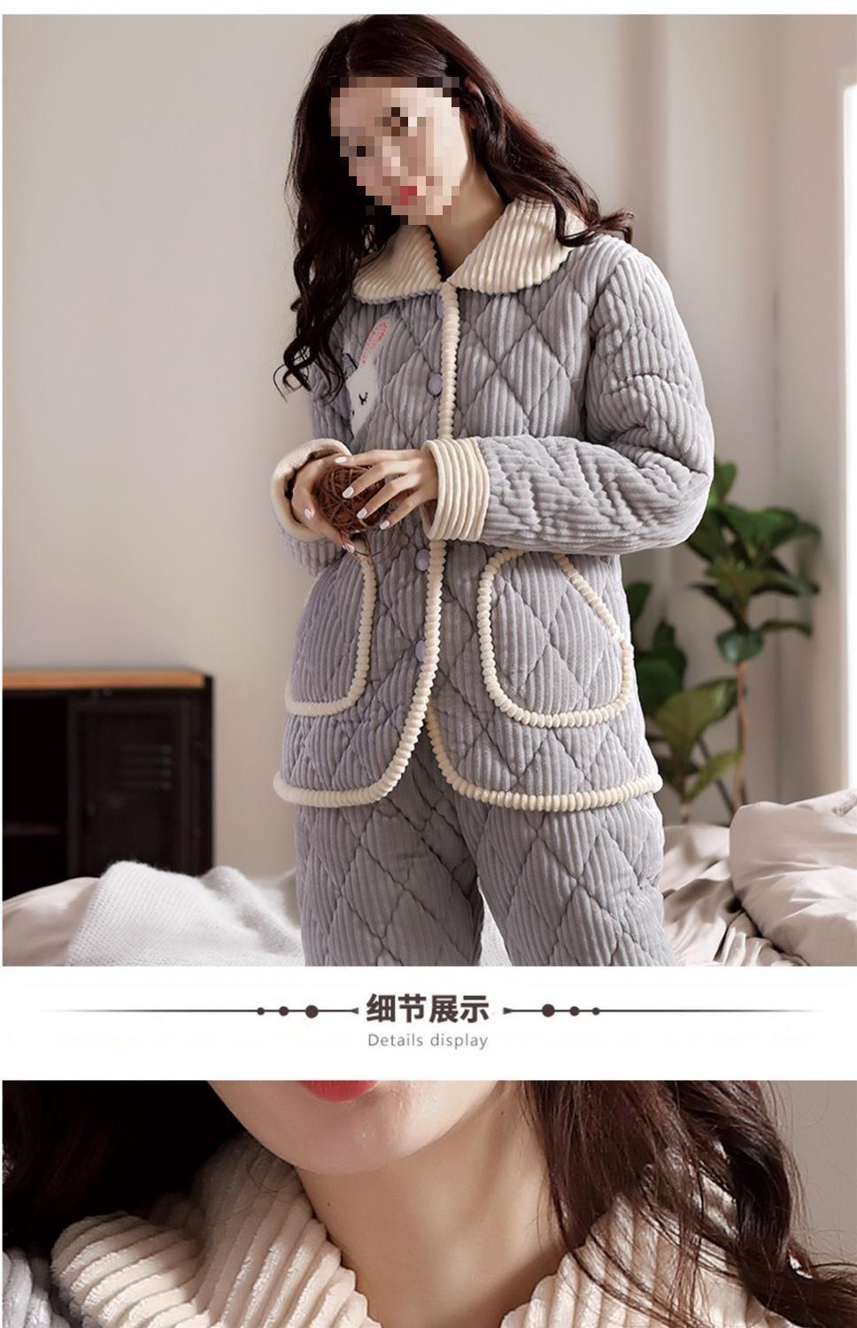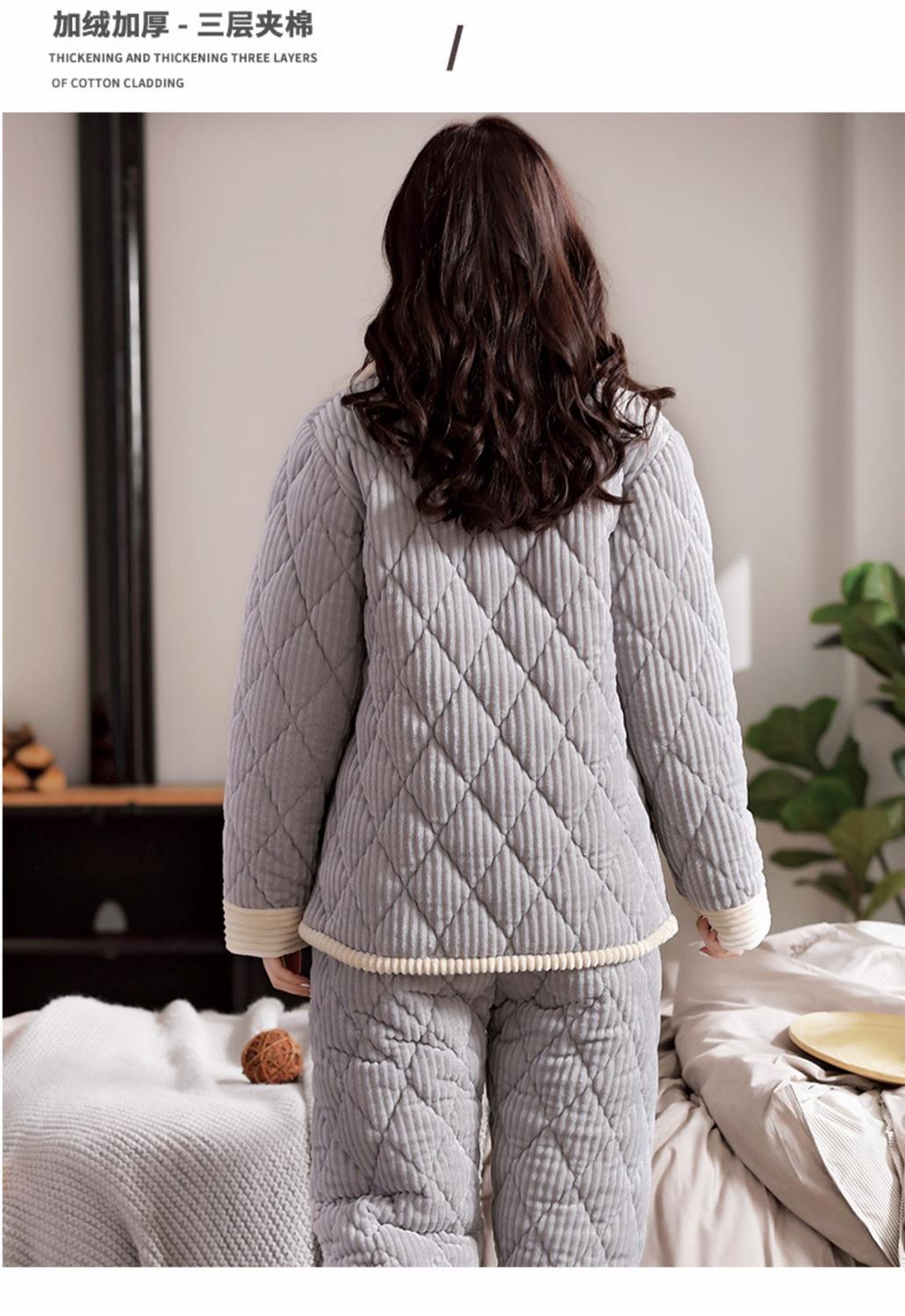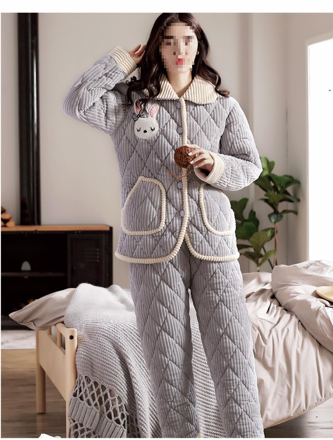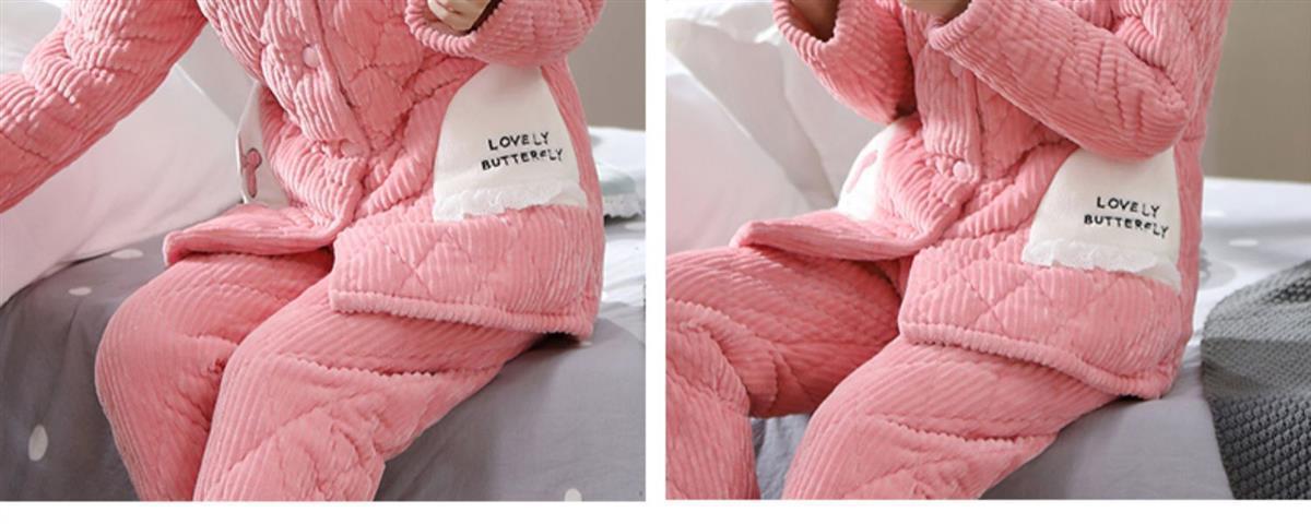 Pijama de inverno acolchoada de algodão outono pode ser usada fora conjunto de roupa de casa de flanela de três camadas espessada lã coral plus veludo clipe