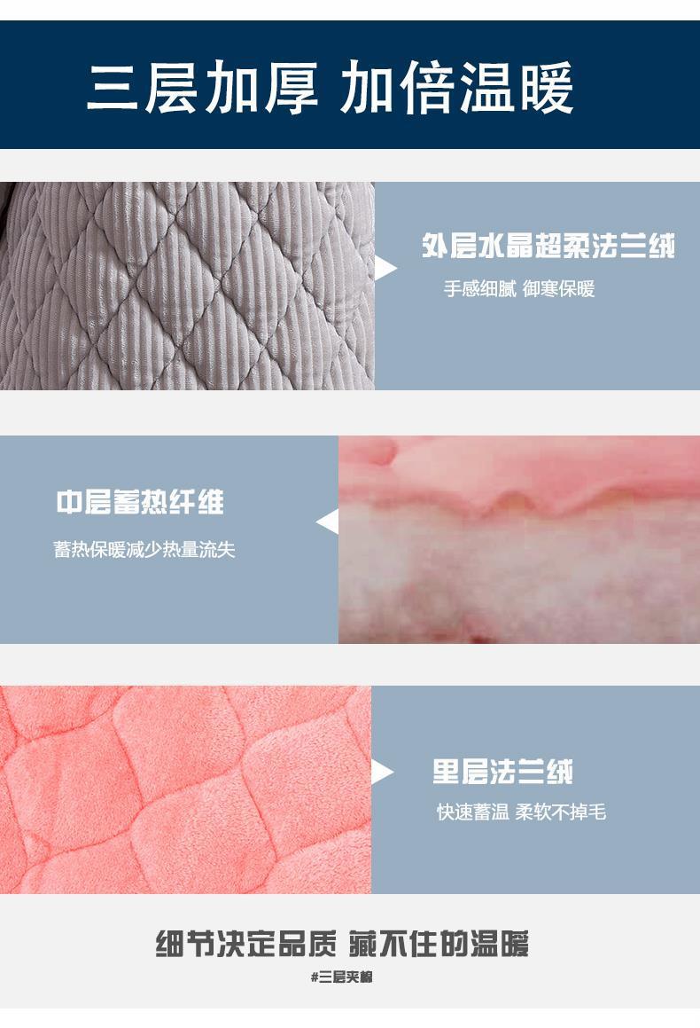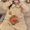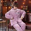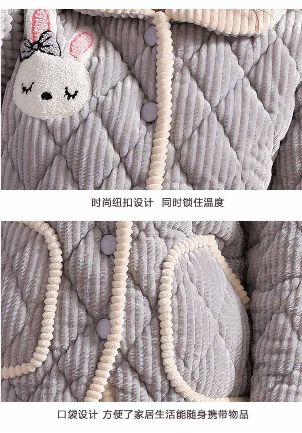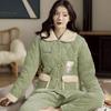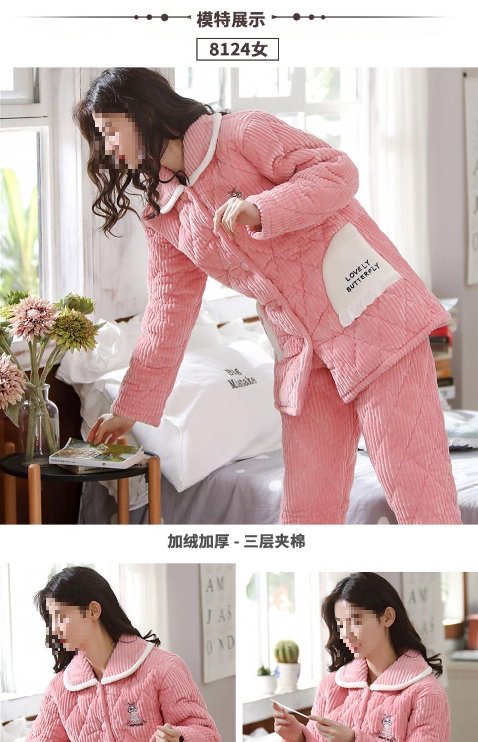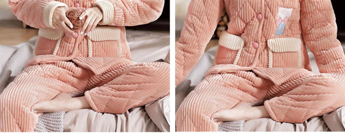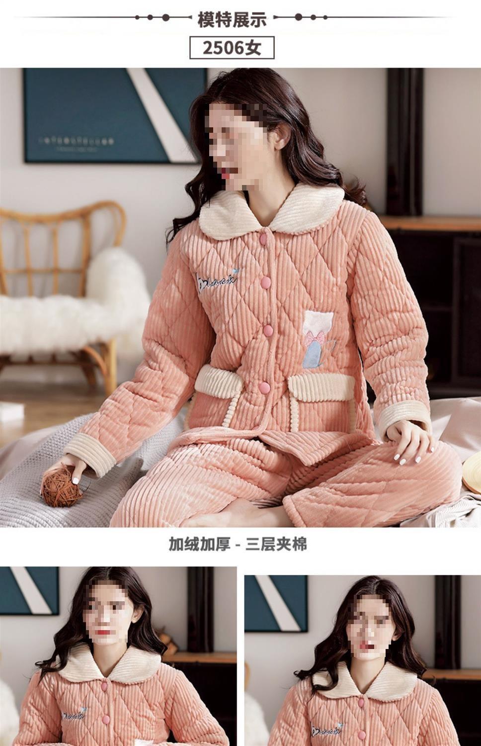 Pijama de inverno acolchoada de algodão outono pode ser usada fora conjunto de roupa de casa de flanela de três camadas espessada lã coral plus veludo clipe