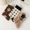Meias femininas algodão puro meias de cano médio outono e inverno rede vermelha ins bordado moderno coração laço desenho animado algodão puro meias folgadas