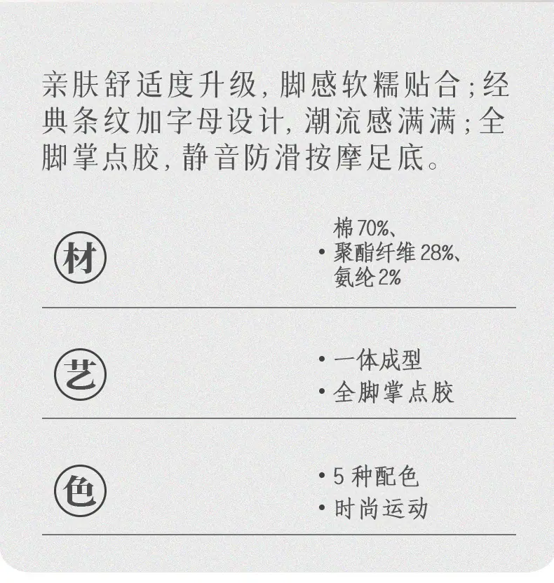 Anti-slip, Antibacterial, Sweat absorption, Odor prevention, Anti-friction