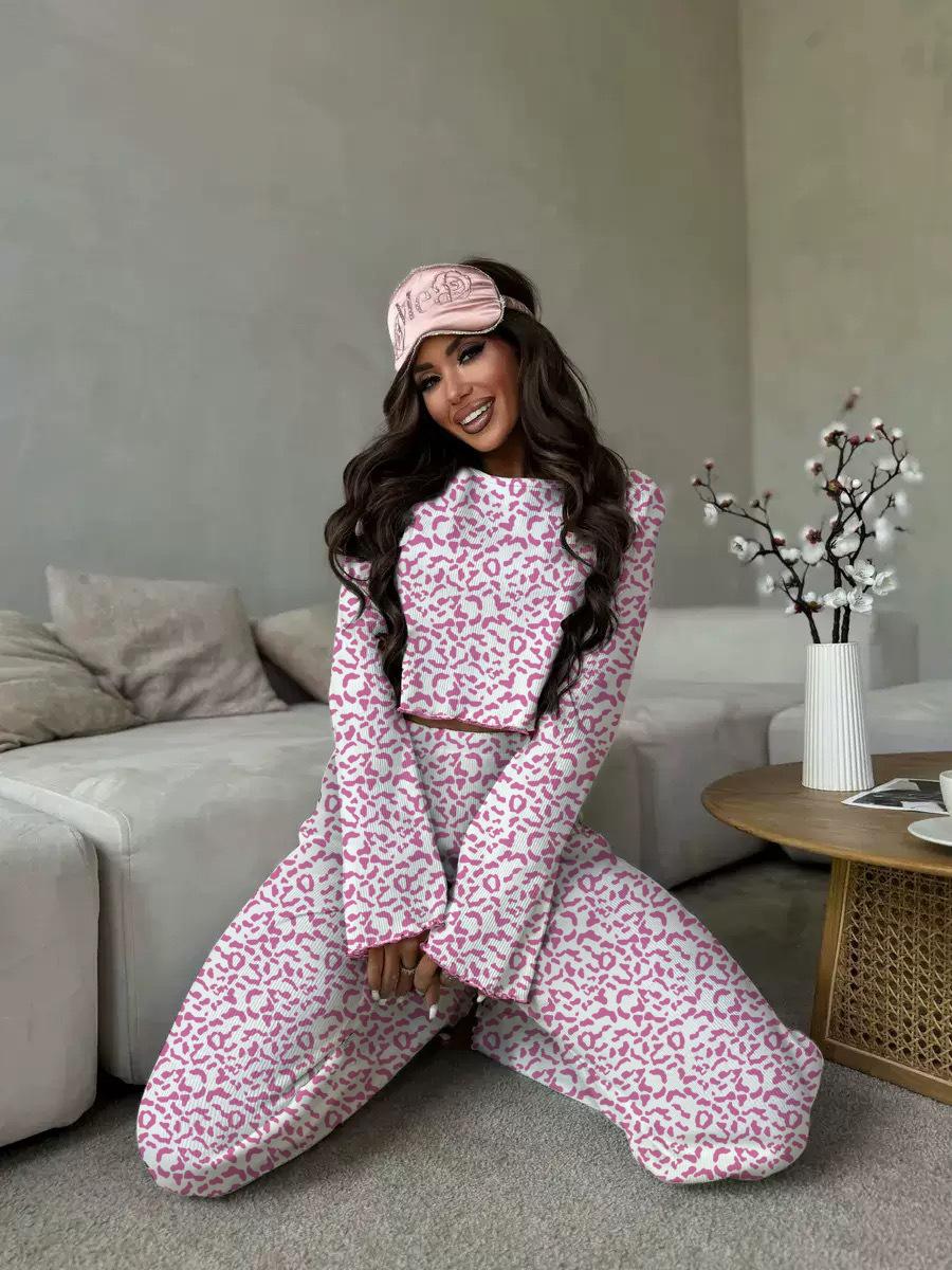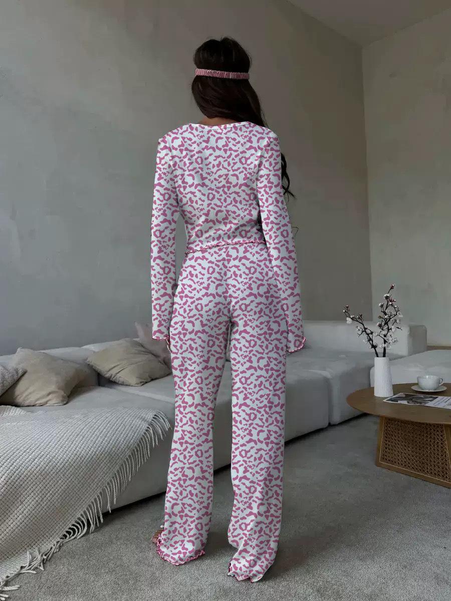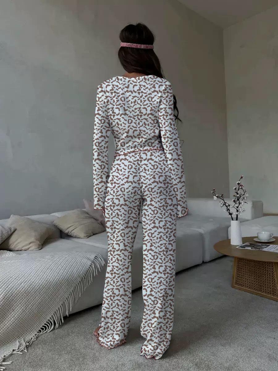 Compre Pijama Europeia e Americana Nova Estampa de Leopardo Amiga da Pele Íntimos Femininos Calça Camisa 2 Peças Roupa de Casa Amazon no atacado no Joom.pro