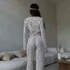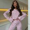 Pijama Europeia e Americana Nova Estampa de Leopardo Amiga da Pele Íntimos Femininos Calça Camisa 2 Peças Roupa de Casa Amazon