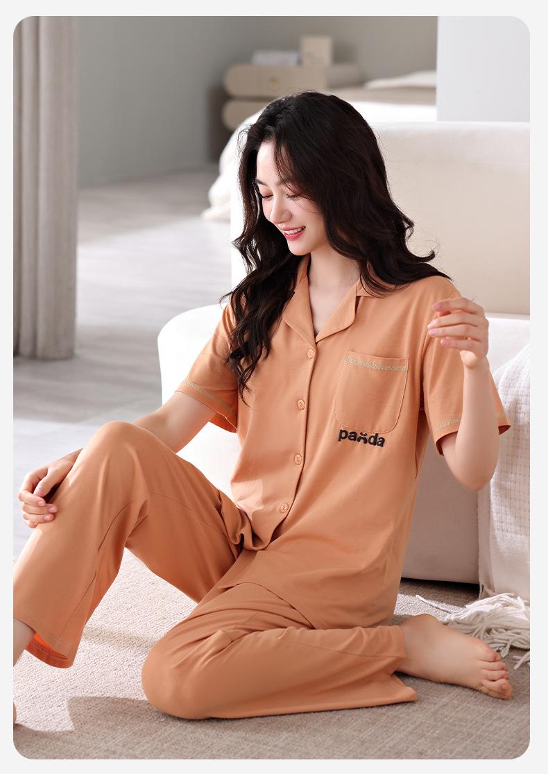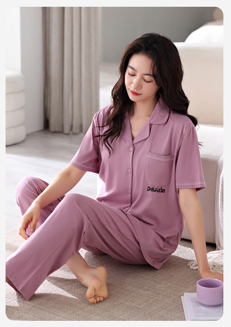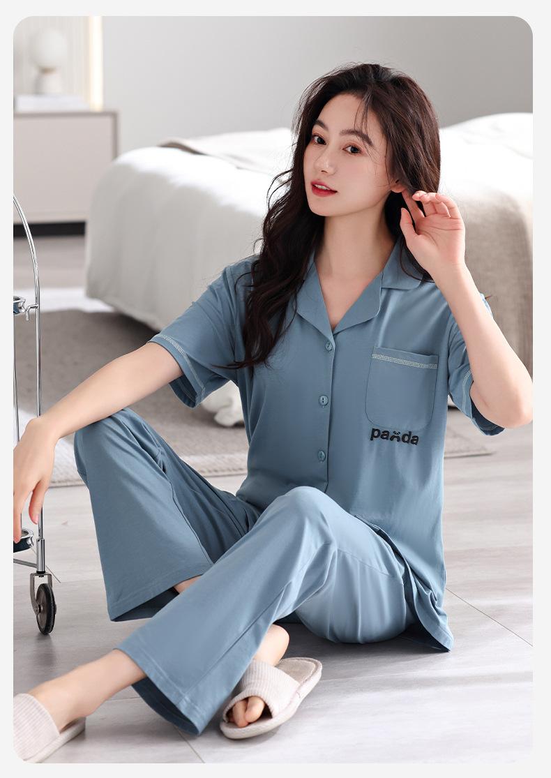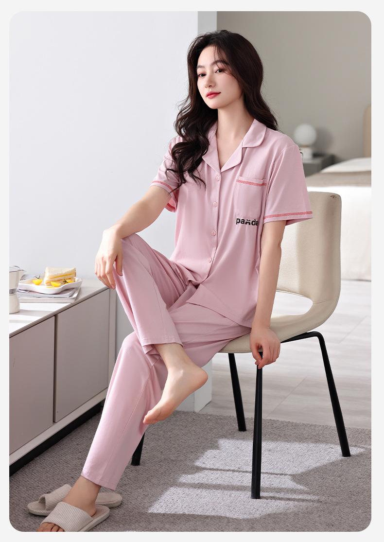 Compre Pijama com Bojo Feminina Verão Modal Manga Curta Calças Finas Verão Feminina Manga Curta Roupa de Casa Conjunto no atacado no Joom.pro