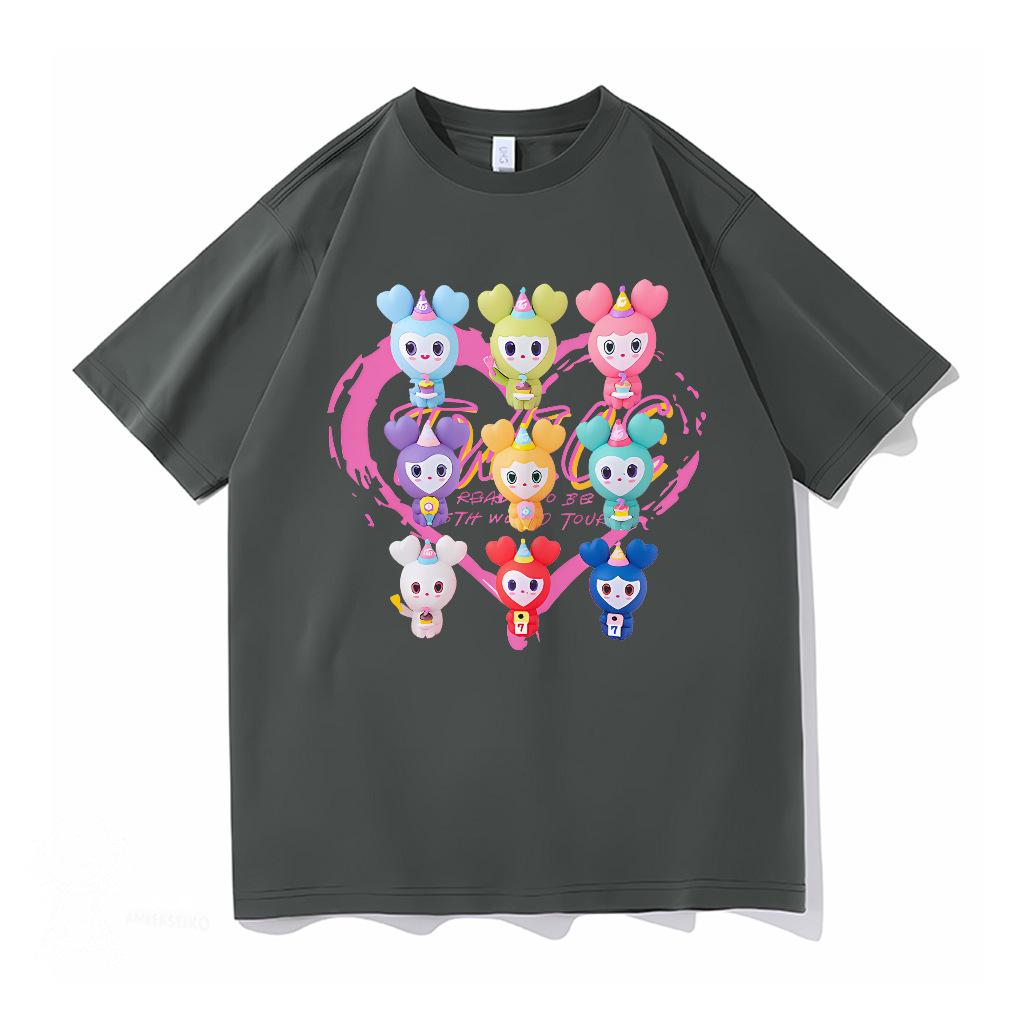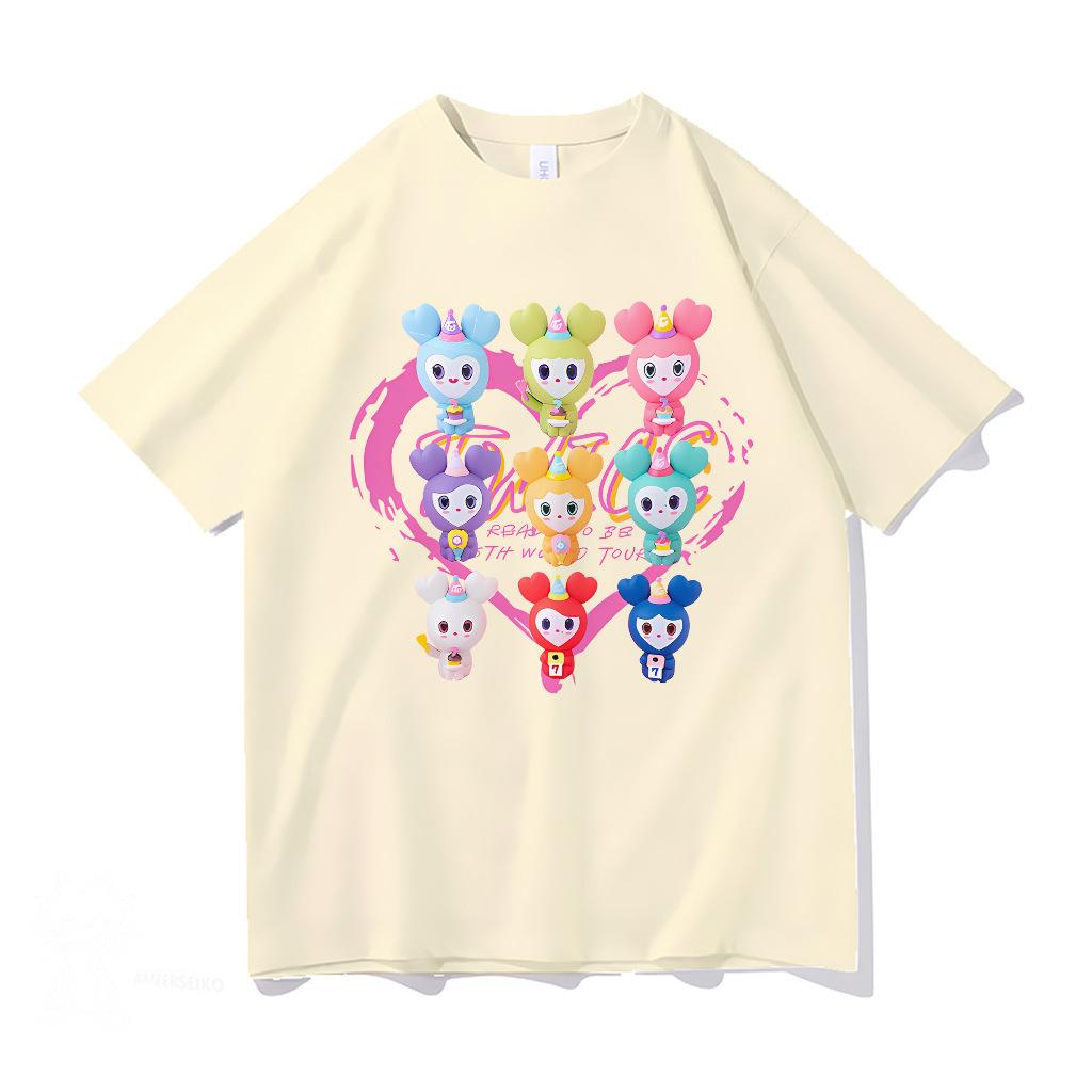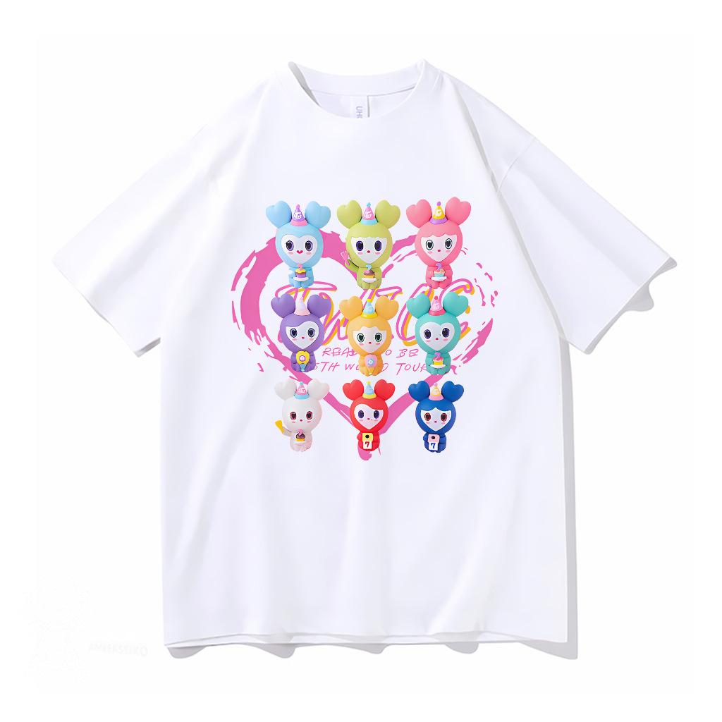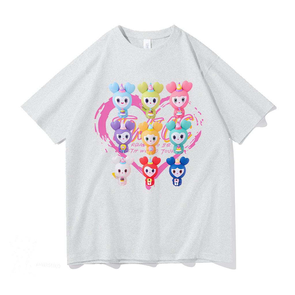 Verão Dopamina Fofa Gola Redonda Algodão Puro High Street Camiseta de Manga Curta Estampa Nicho Verão Feminina