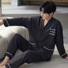 Conjunto de Roupa de Casa Outono e Inverno Tamanho Solto Cardigã Manga Longa Pijama Primavera e Outono Plus Algodão Masculino Puxar Simples