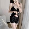 Shorts de Alça Finos de Seda Gelada de Verão para Mulheres Conjunto de Pijama Sexy para Primavera e Outono Roupas de Casa Soltas de Seda Imitação com Bojos