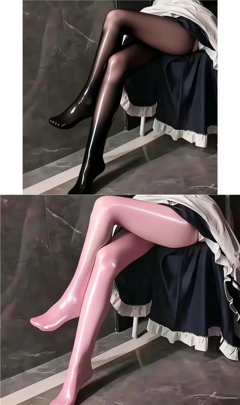 Meias Brilhantes de Óleo de Cavalo Até a Coxa Delicadas Ultrafinas Aquosas Verão Meias Pretas Oleosas de Seda Pernas Bonitas Meias Brancas de Seda Acima do Joelho Cinza