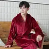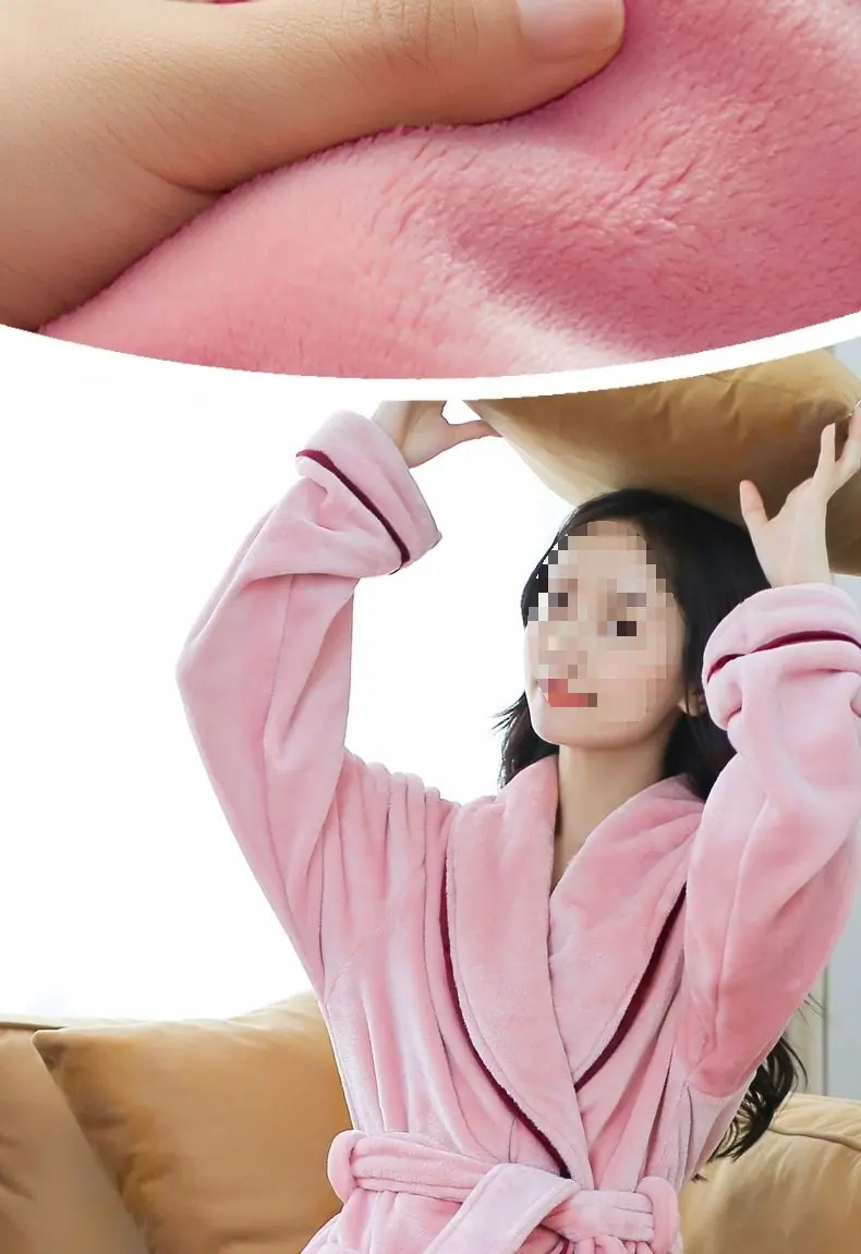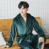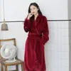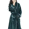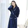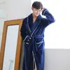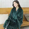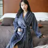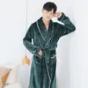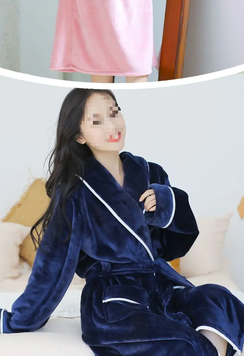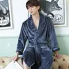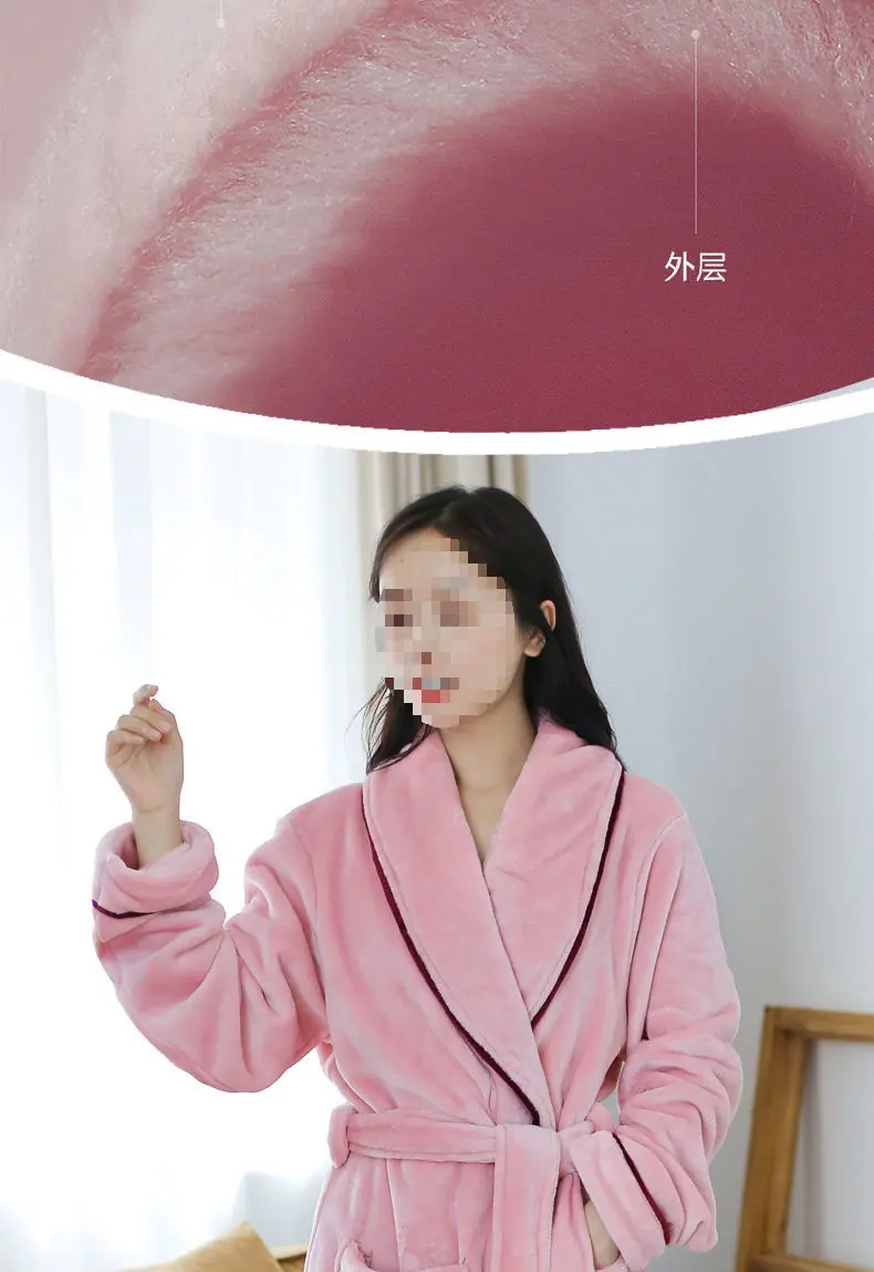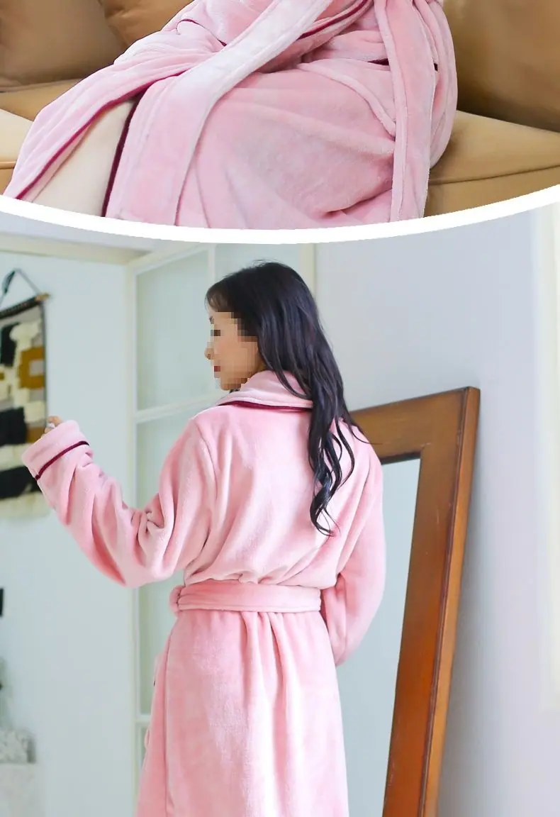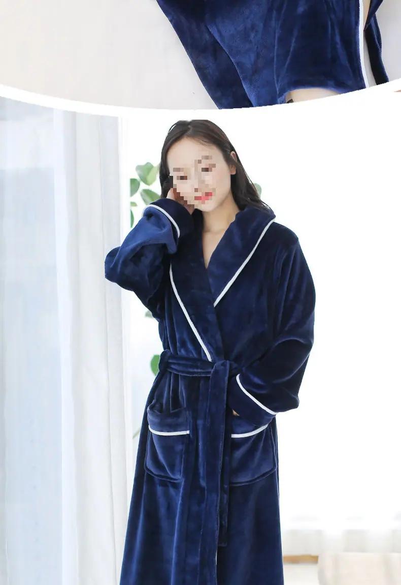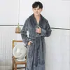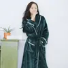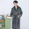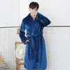 Roupão de Banho Feminino de Inverno em Fleece Coral Roupão de Casal Espessado Extra Longo Roupão Matinal Pijama de Flanela Estilo Outono e Inverno Masculino