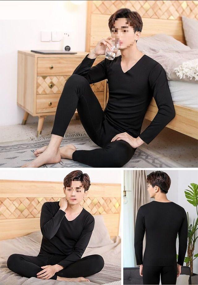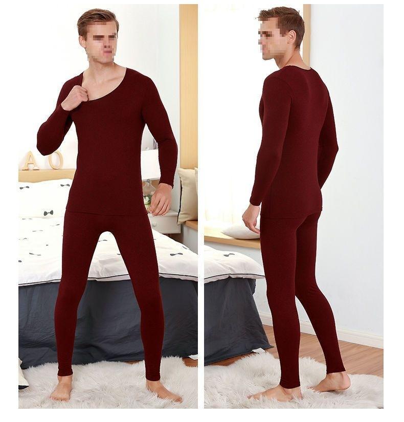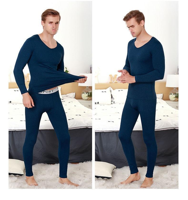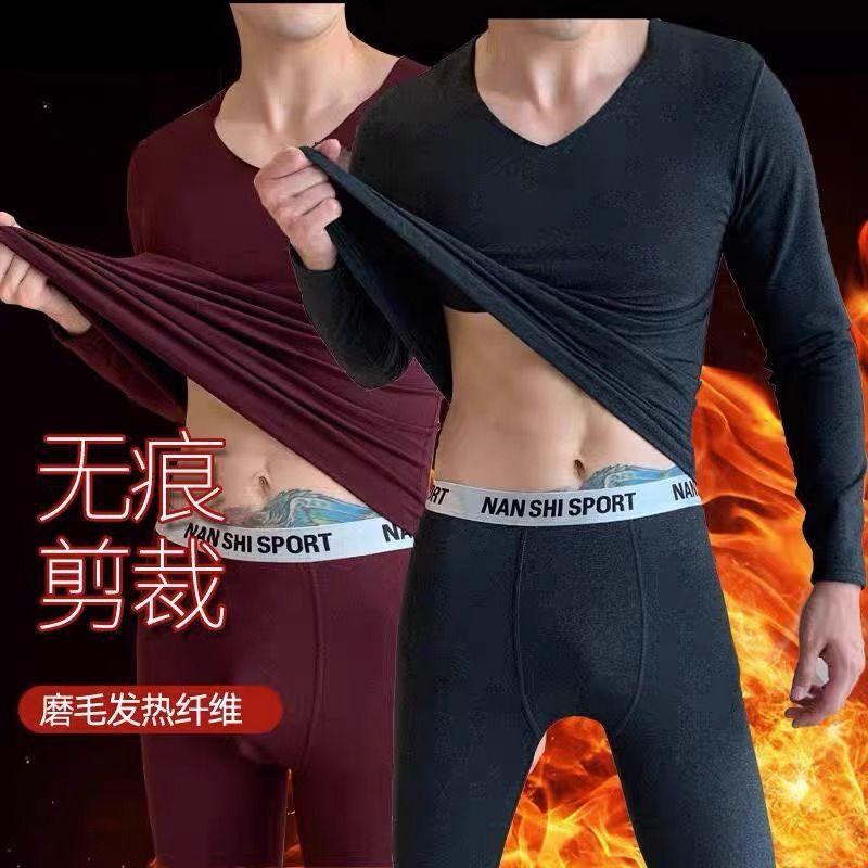 Conjunto de Roupa Íntima Quente Espessura Lã de Fibra Elástico Veludo Alemão Roupas de Outono Calças Gerador de Calor Tamanho Plus Juventude Sem Costura Masculino