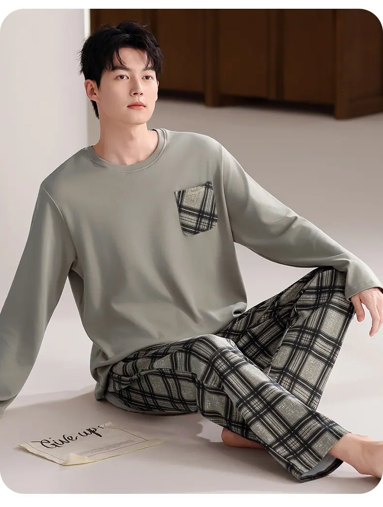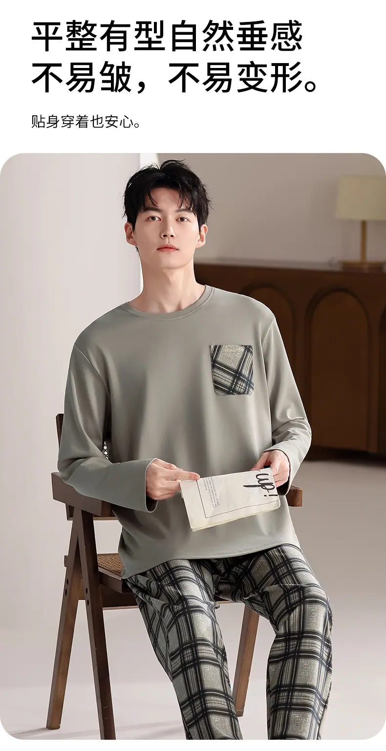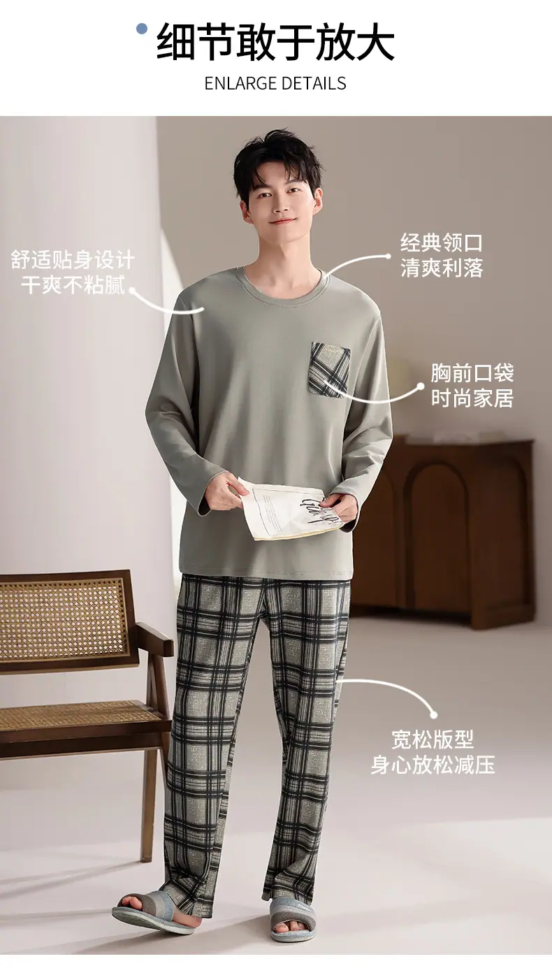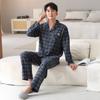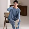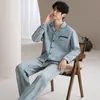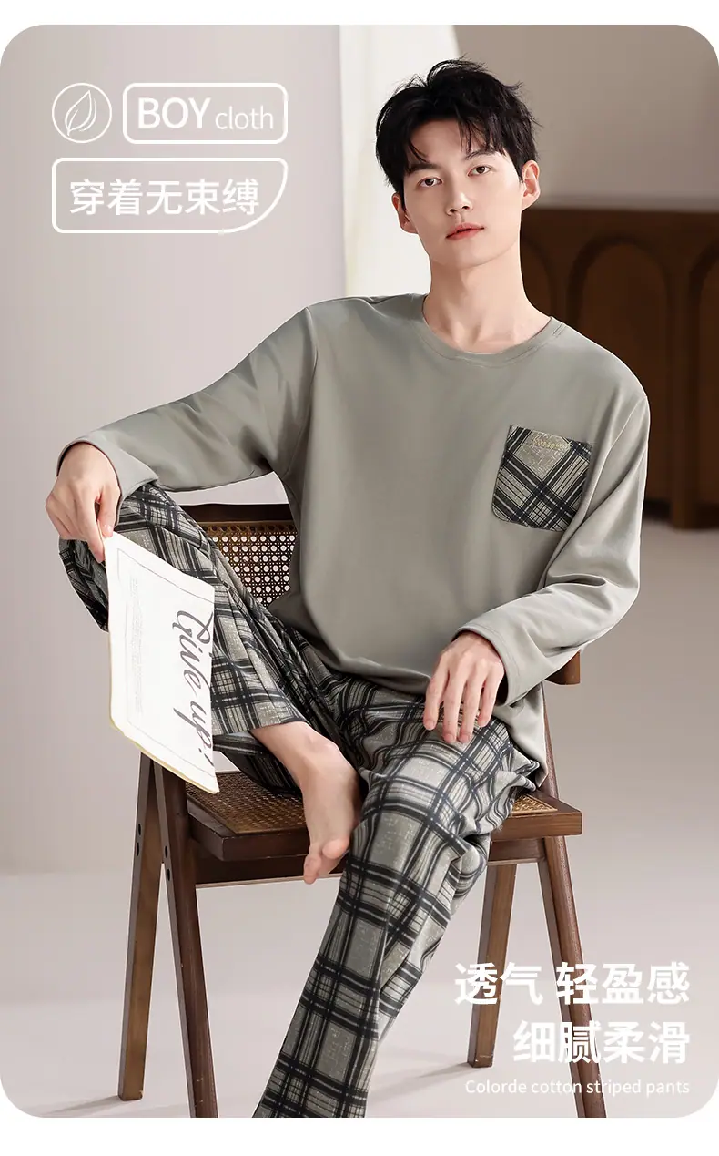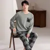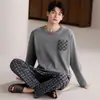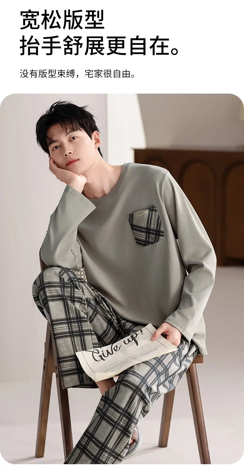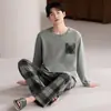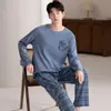 Pijama Masculina Manga Longa Outono 2025 Amigável à Pele Respirável Algodão Puro Confortável Casual Roupa de Casa 100% Algodão Conjunto Primavera/Outono