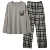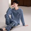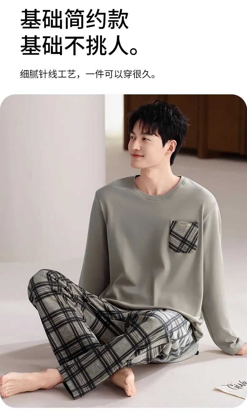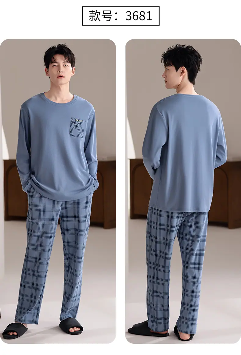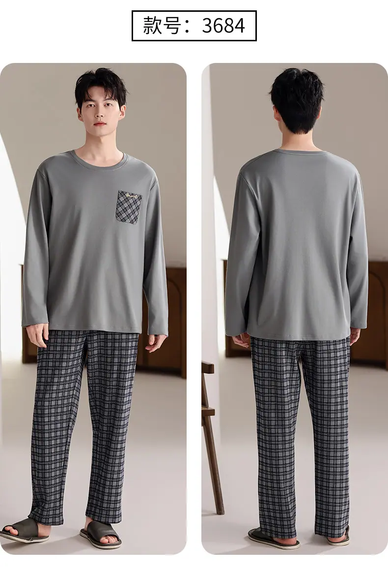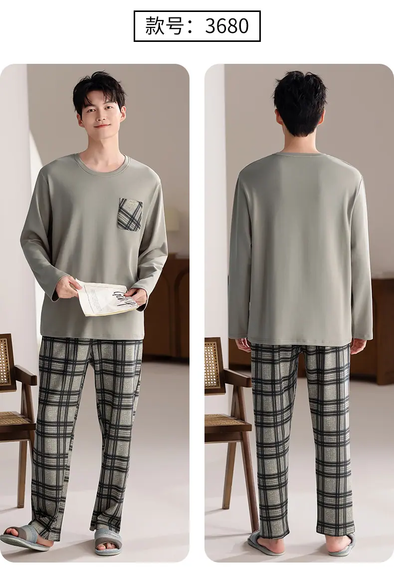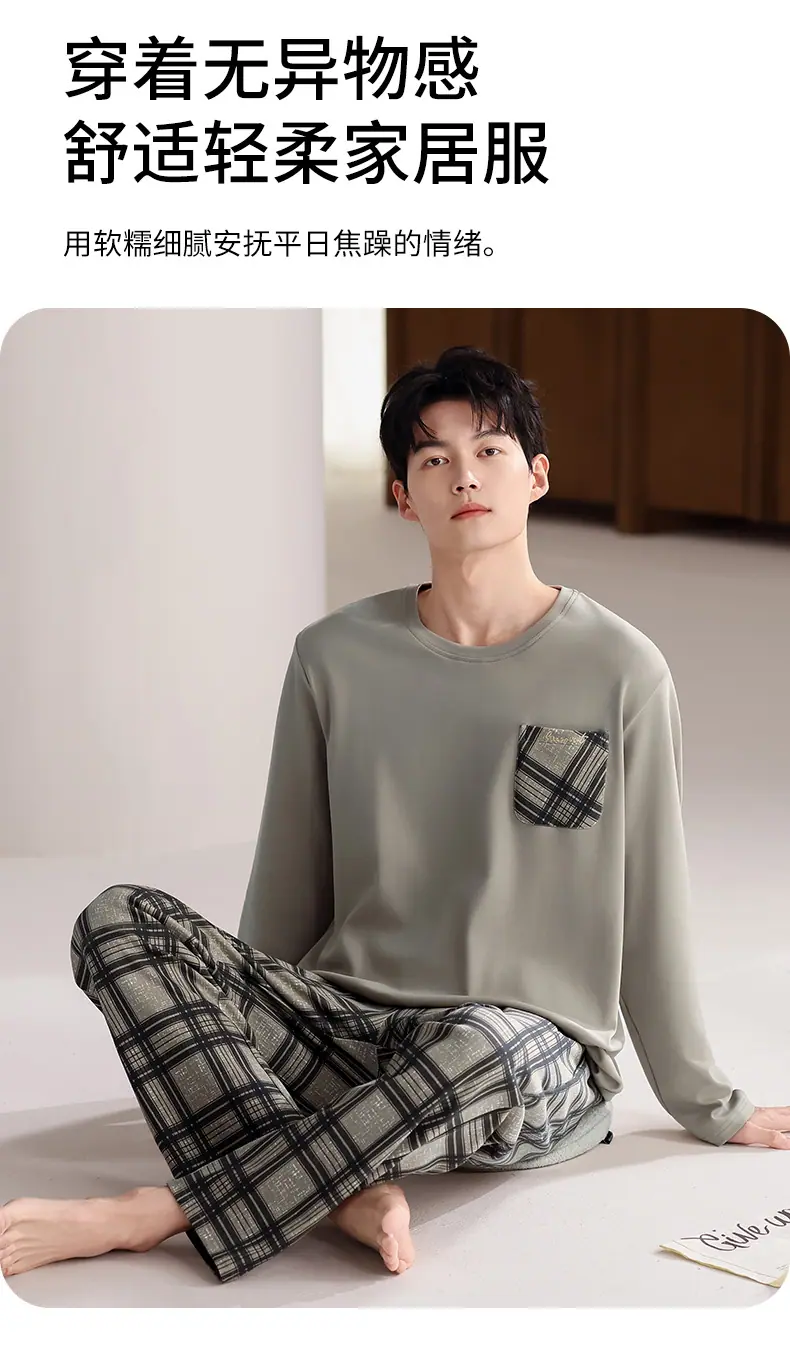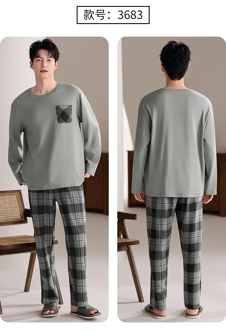 Pijama Masculina Manga Longa Outono 2025 Amigável à Pele Respirável Algodão Puro Confortável Casual Roupa de Casa 100% Algodão Conjunto Primavera/Outono