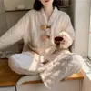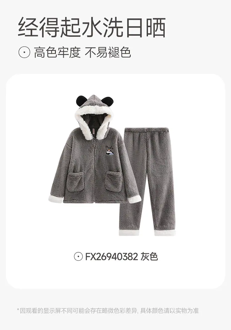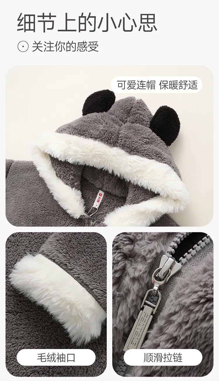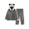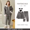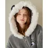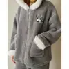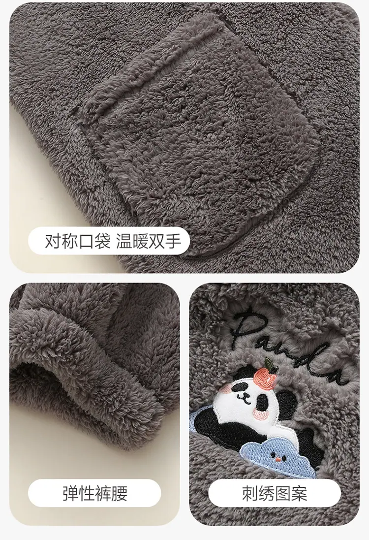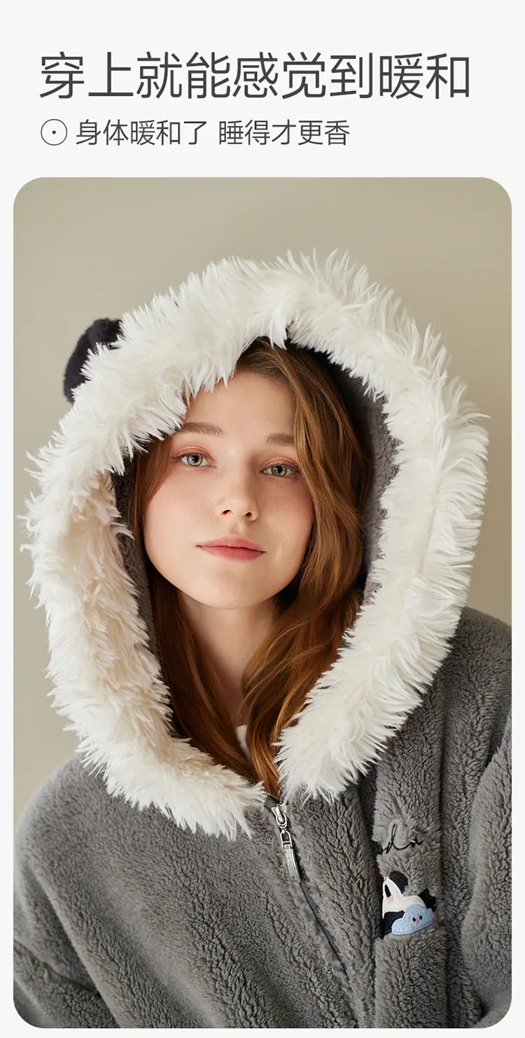 Fenteng [Cabeça de Panda com Capuz] Pijama Feminino Lã Coral Outono e Inverno Conjunto Espessado Plus Veludo Feminino Pode Usar na Rua Fofo