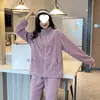 Pijama de coral fleece para mulheres outono e inverno novo estilo mais veludo e espessamento pode ser usado ao ar livre para manter aquecido flanela inverno roupa de casa terno