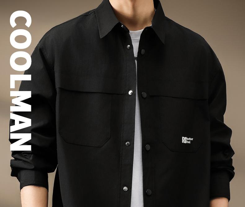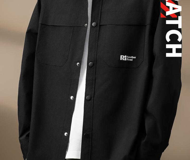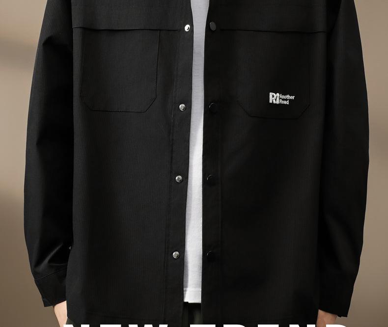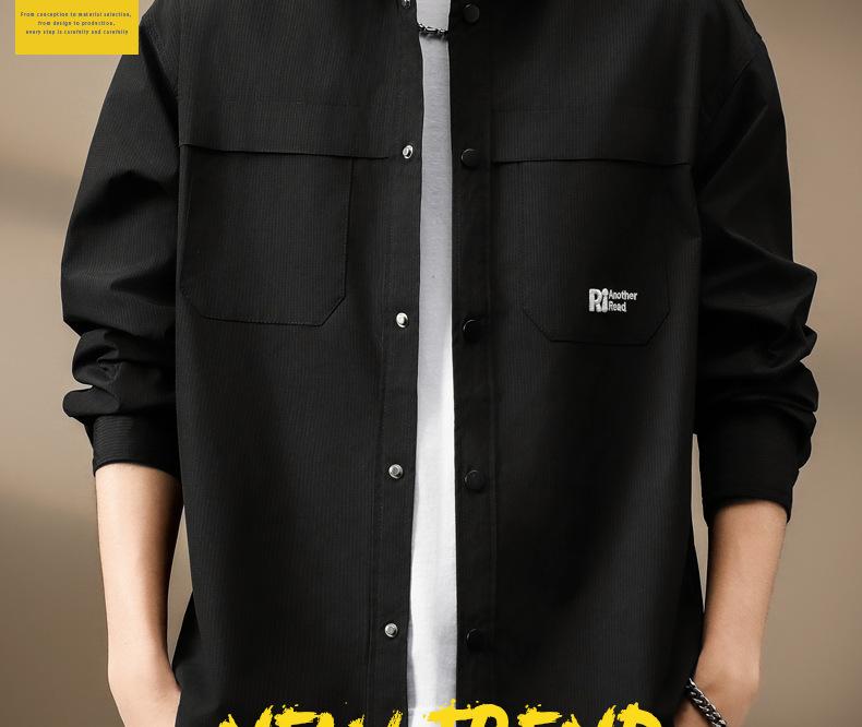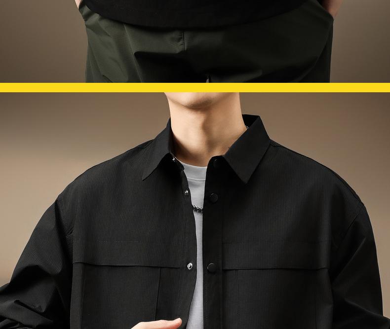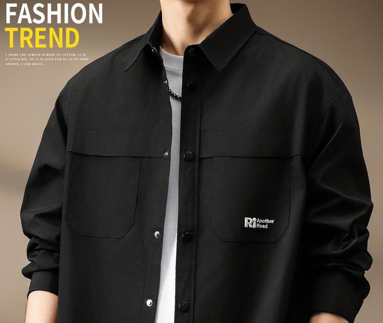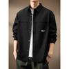 Camisa Casual Retrô Americana de Manga Comprida para Homens, Outono Solta Moderna Preta Funcional para Trabalho Jaqueta Camisa para Homens