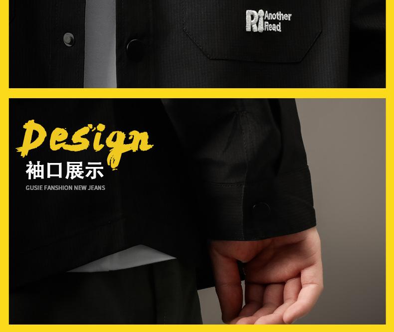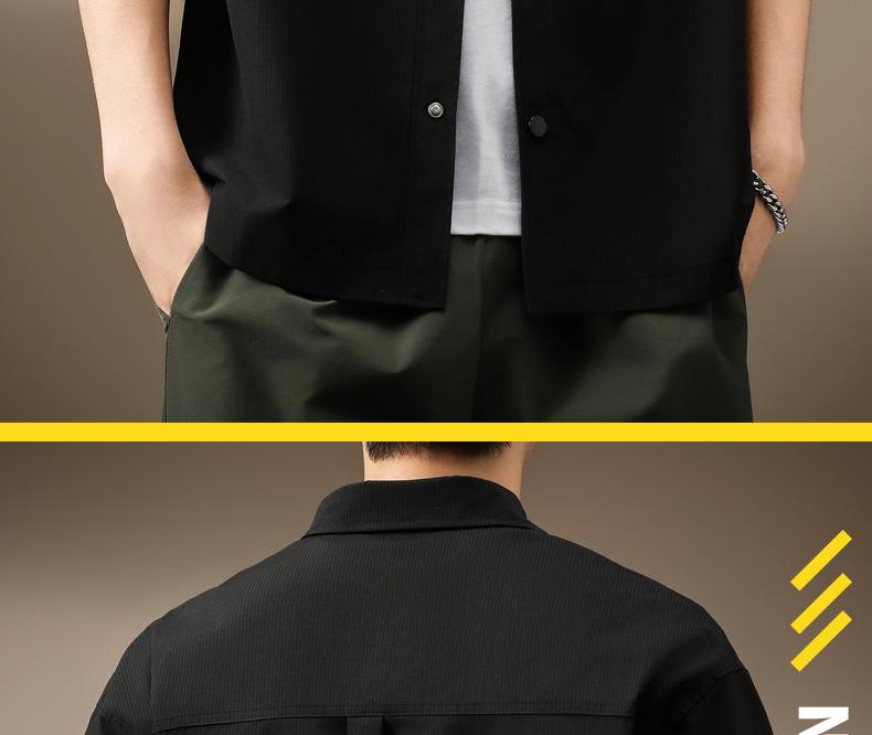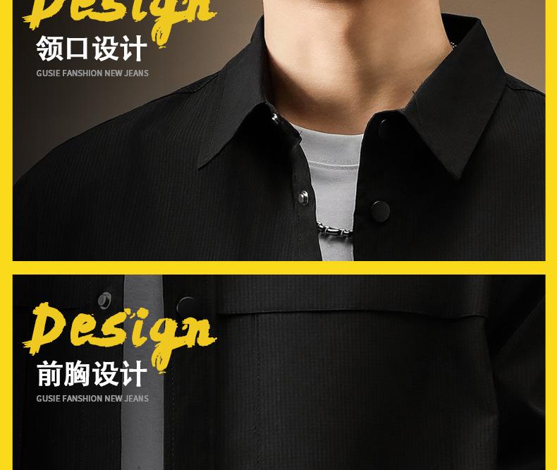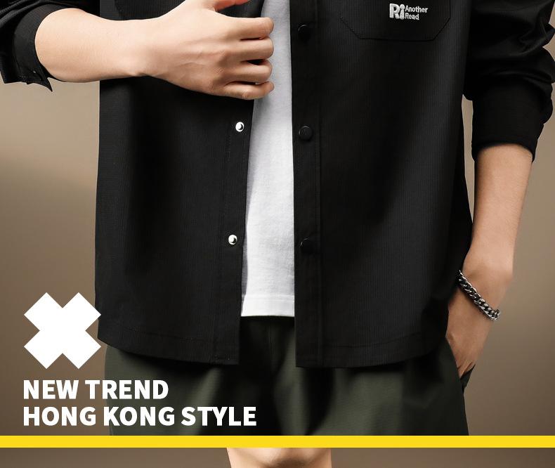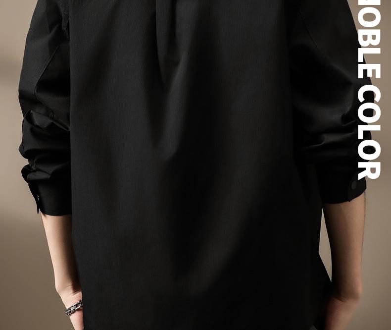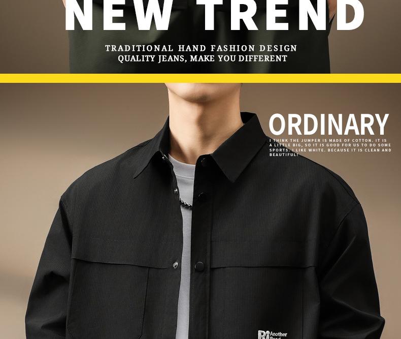 Camisa Casual Retrô Americana de Manga Comprida para Homens, Outono Solta Moderna Preta Funcional para Trabalho Jaqueta Camisa para Homens