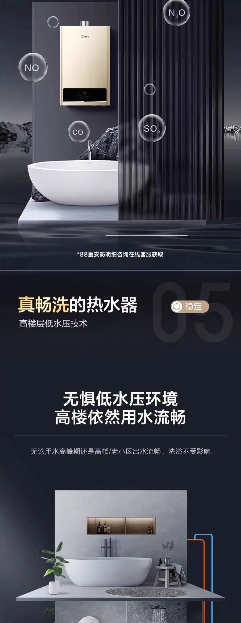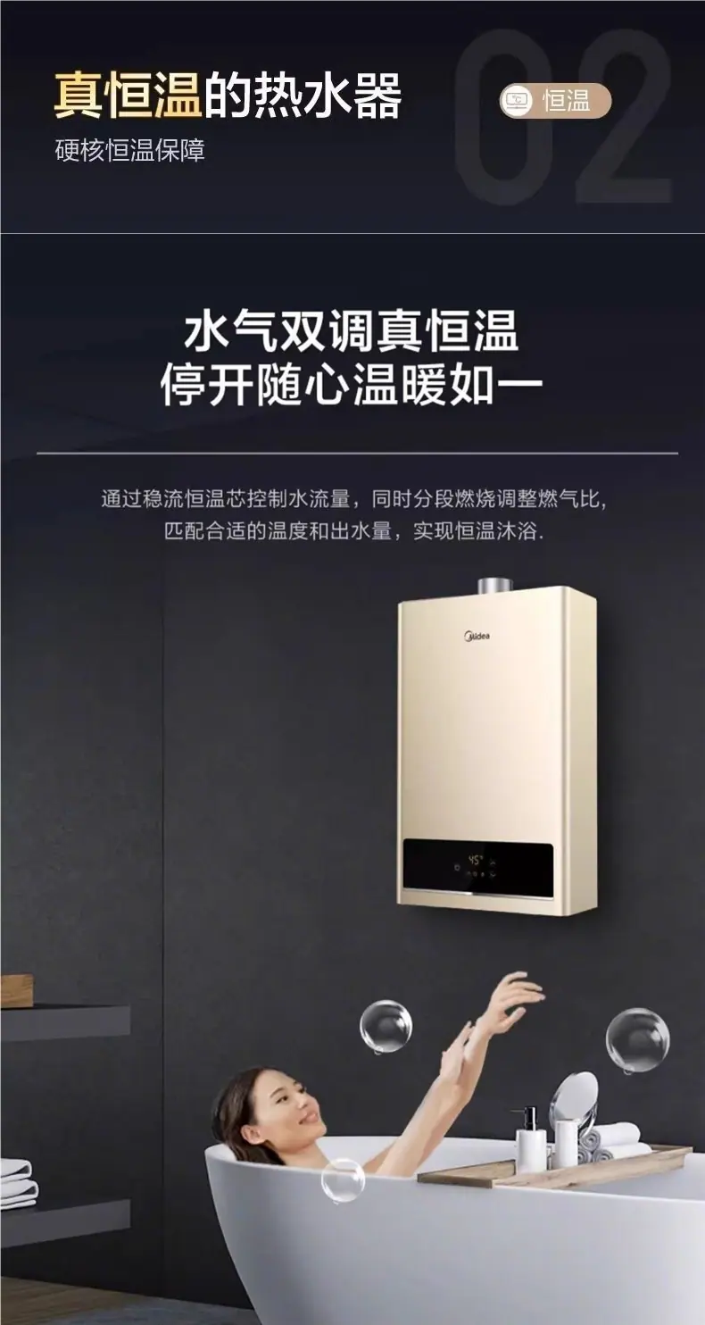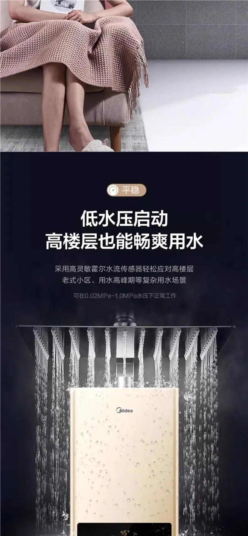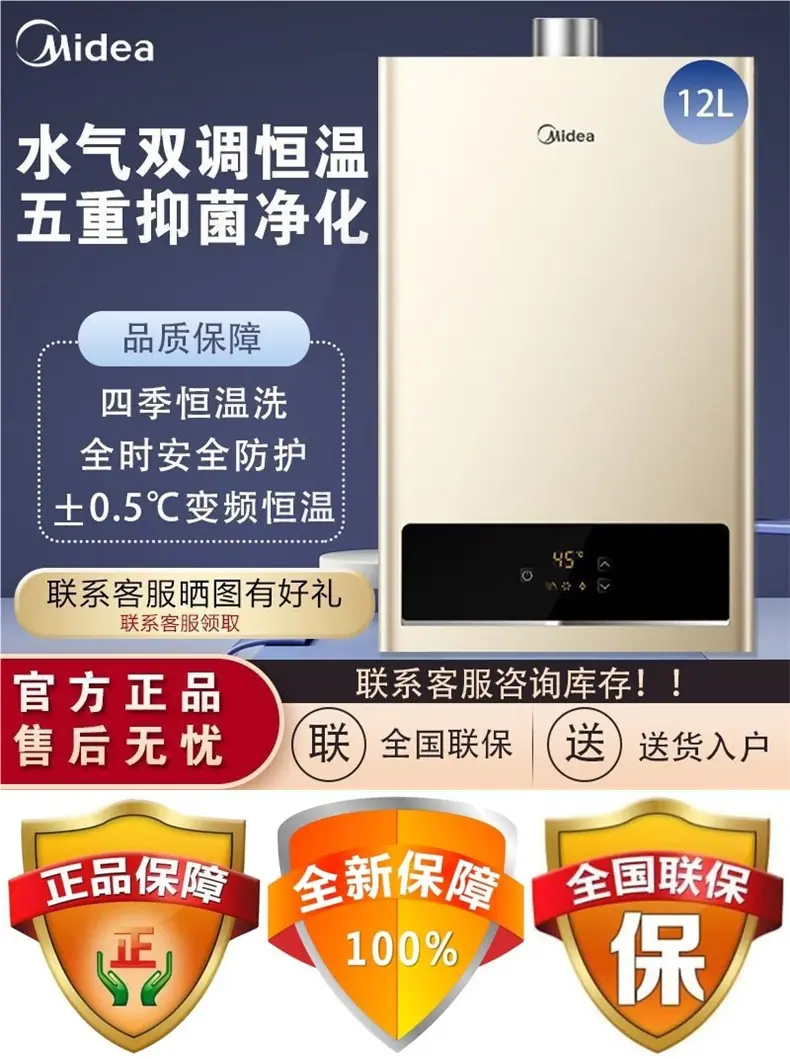 Aquecedor de Água a Gás Doméstico Midea JSQ22-HWA Temperatura Constante Inteligente Exaustão Forçada 12L 14L 16L