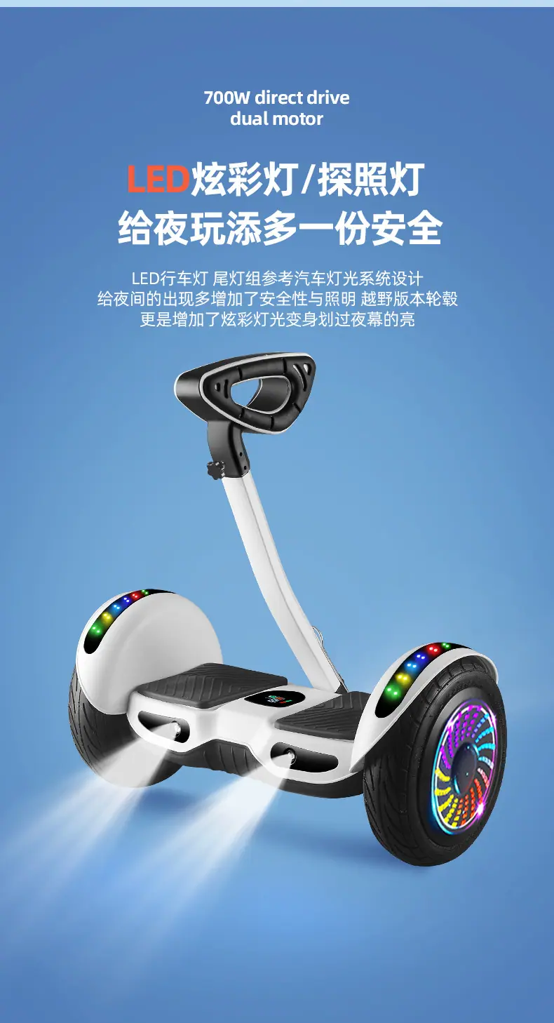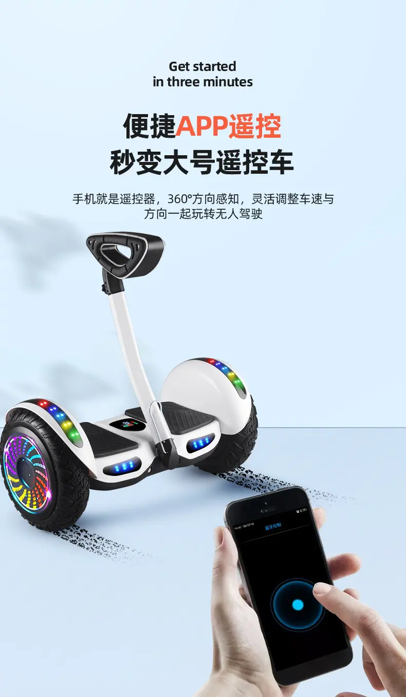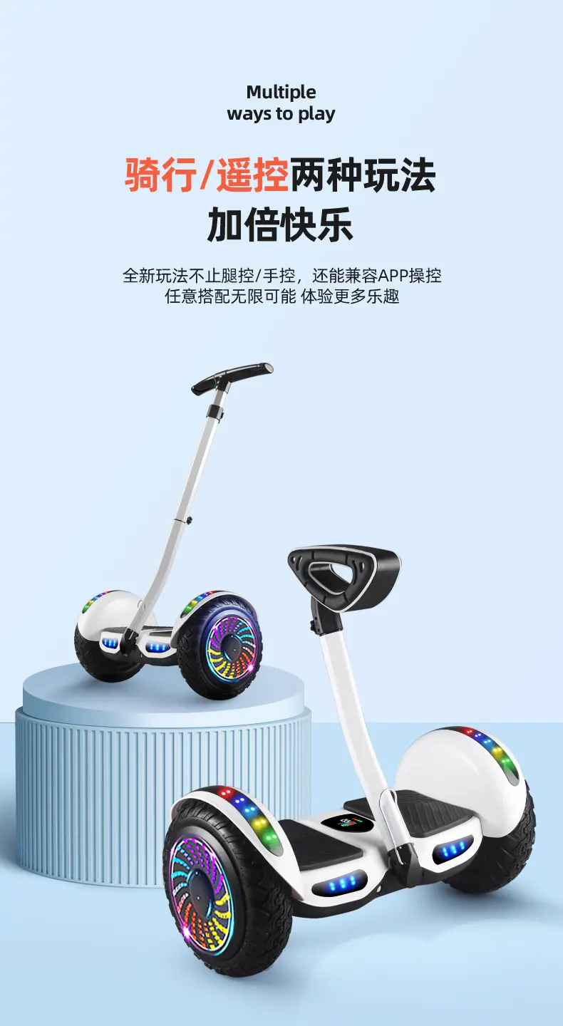 Carro de equilíbrio de guidão com controle de perna transfronteiriço para crianças e adultos, carro somatossensorial inteligente de duas rodas, carro de equilíbrio elétrico de 10 polegadas