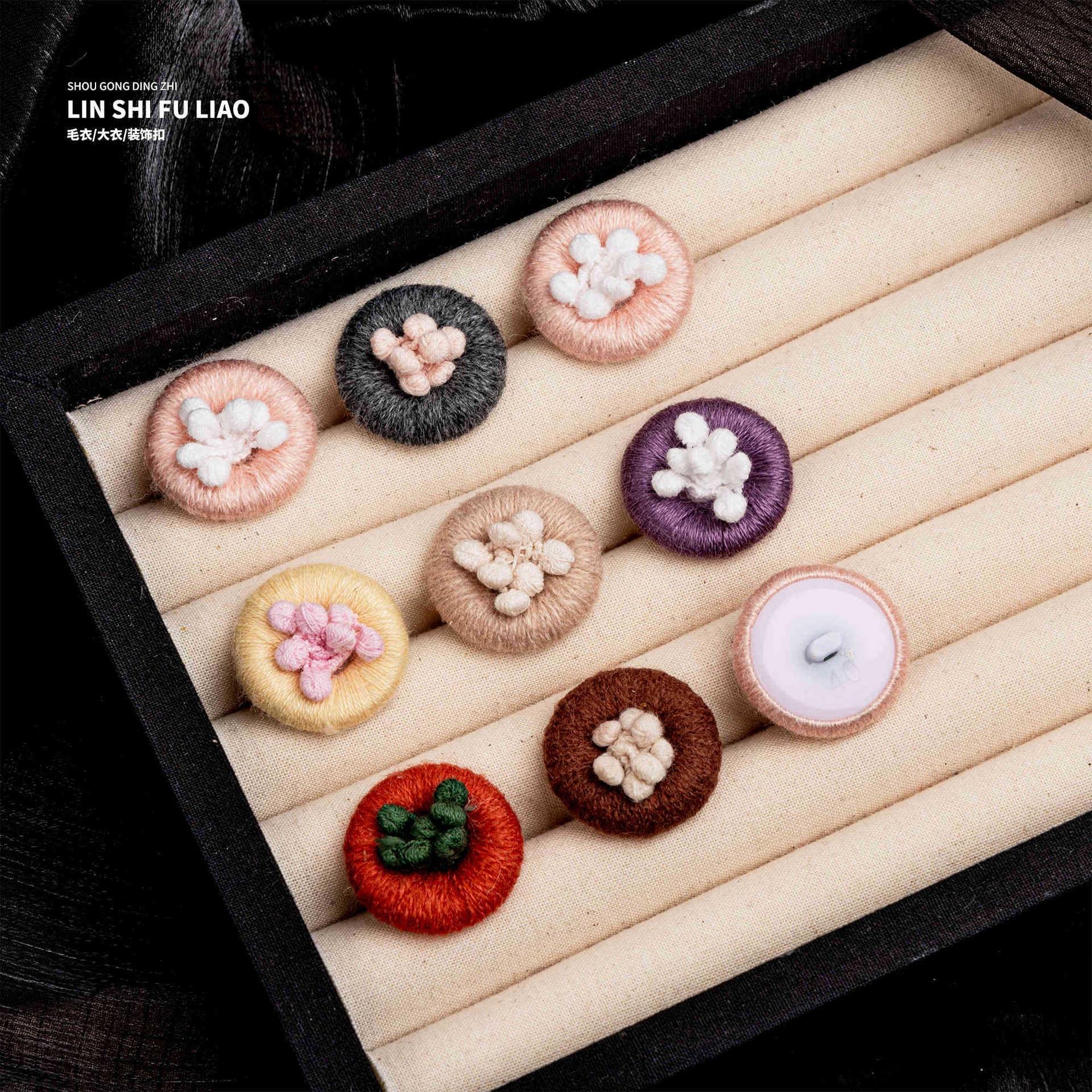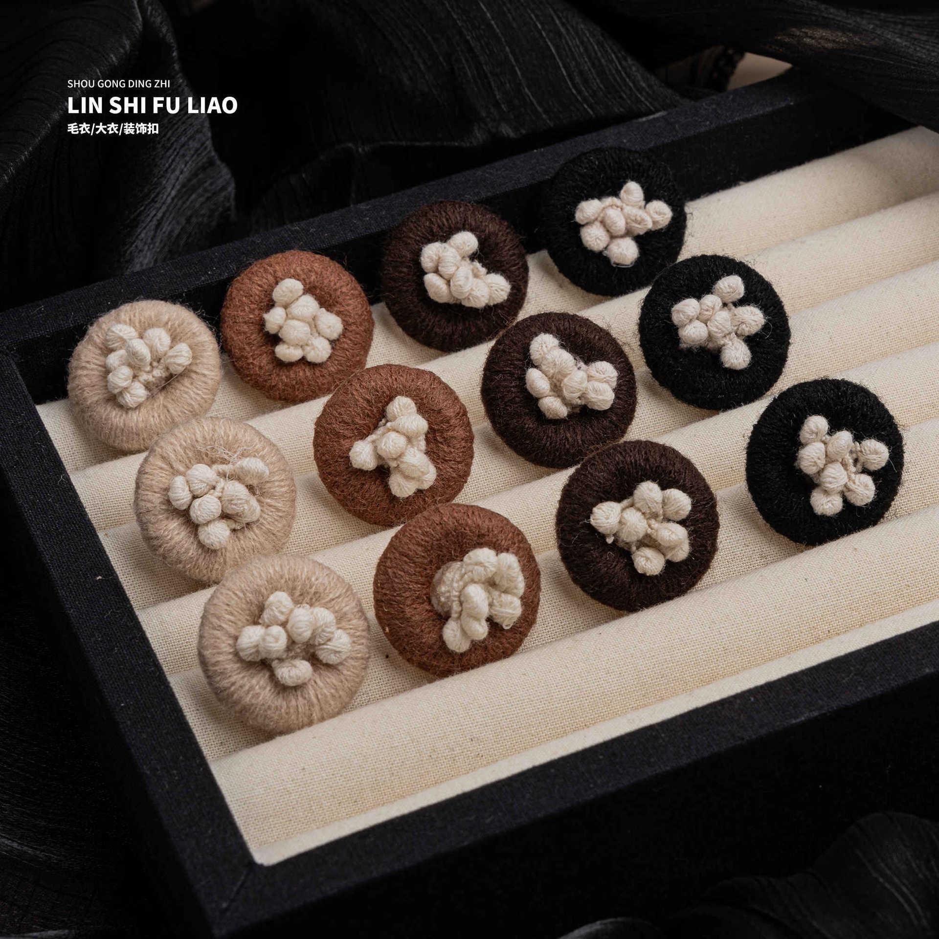 Lã Feito à Mão Linha Fivela Bicolor Suéter Casaco Botão Botão de Moda Botão de Lã Crochê Botão Exterior Botão Decorativo Acessórios