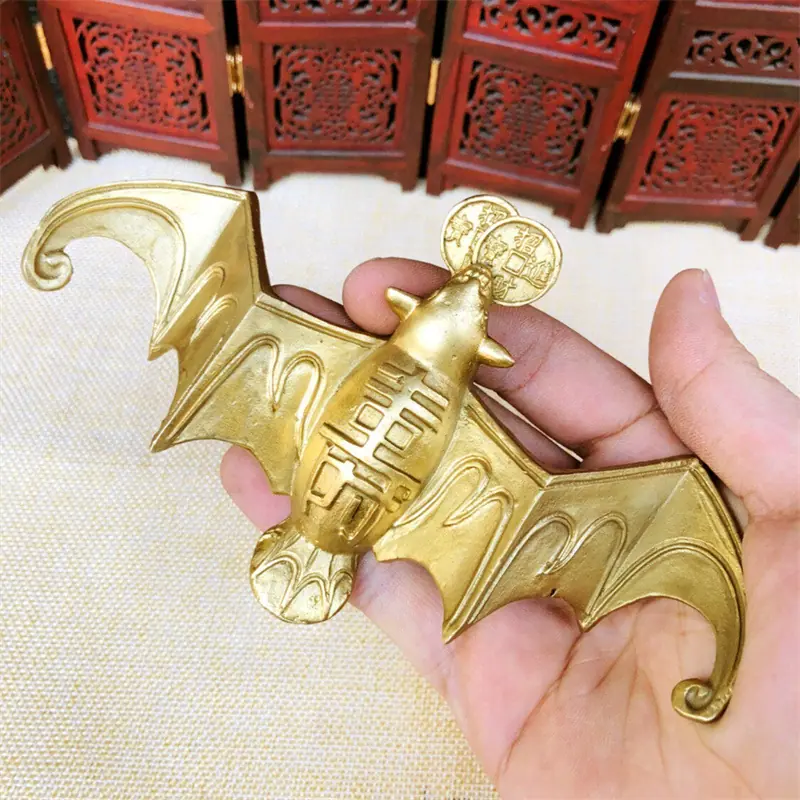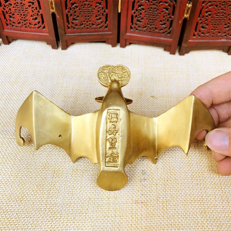 Artesanato de cobre latão por atacado bênção e longevidade enfeites de morcego duplo enfeites presentes suprimentos para casa