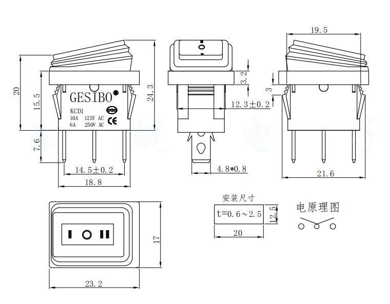 Kcd1 Preto Três Pinos Três Velocidades Conjunto À Prova D'água Interruptor em Formato de Barco 15*21mm 3 Pinos 3 Velocidades Vermelho Interruptor Basculante À Prova D'água